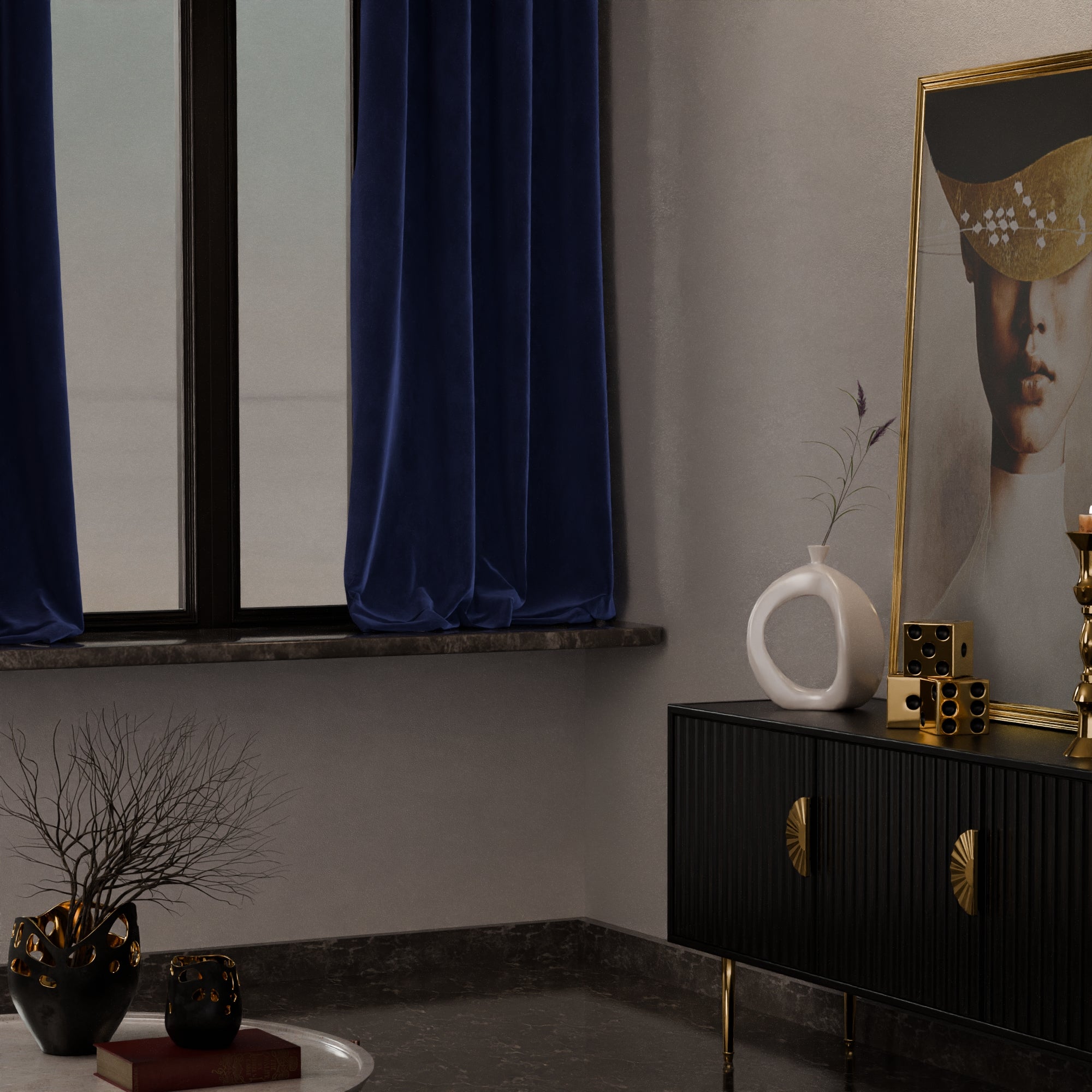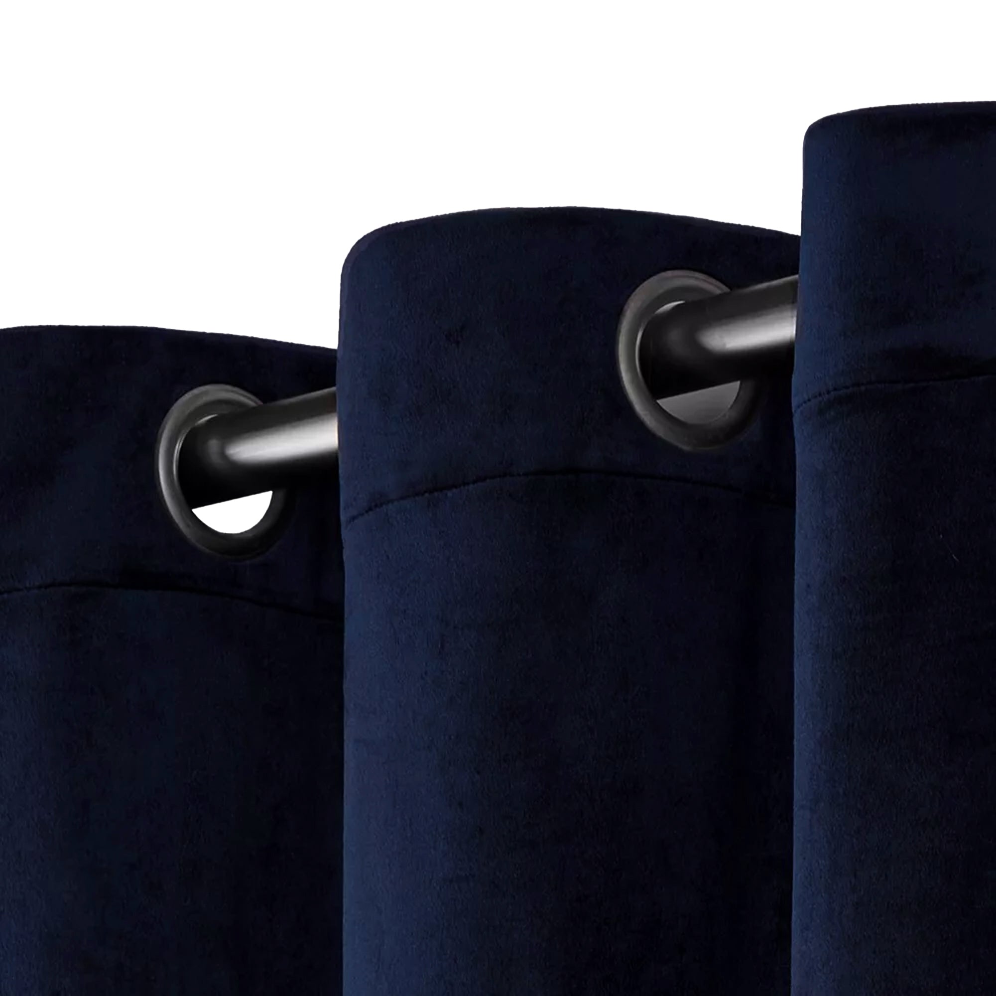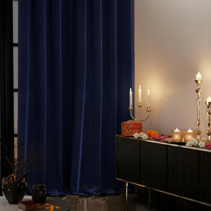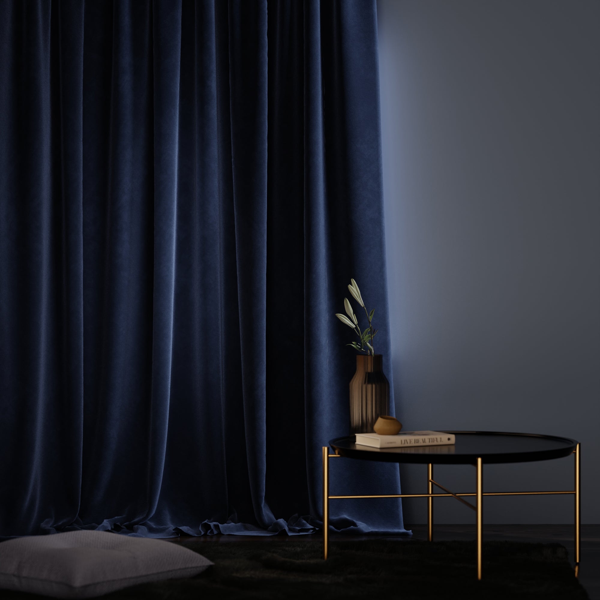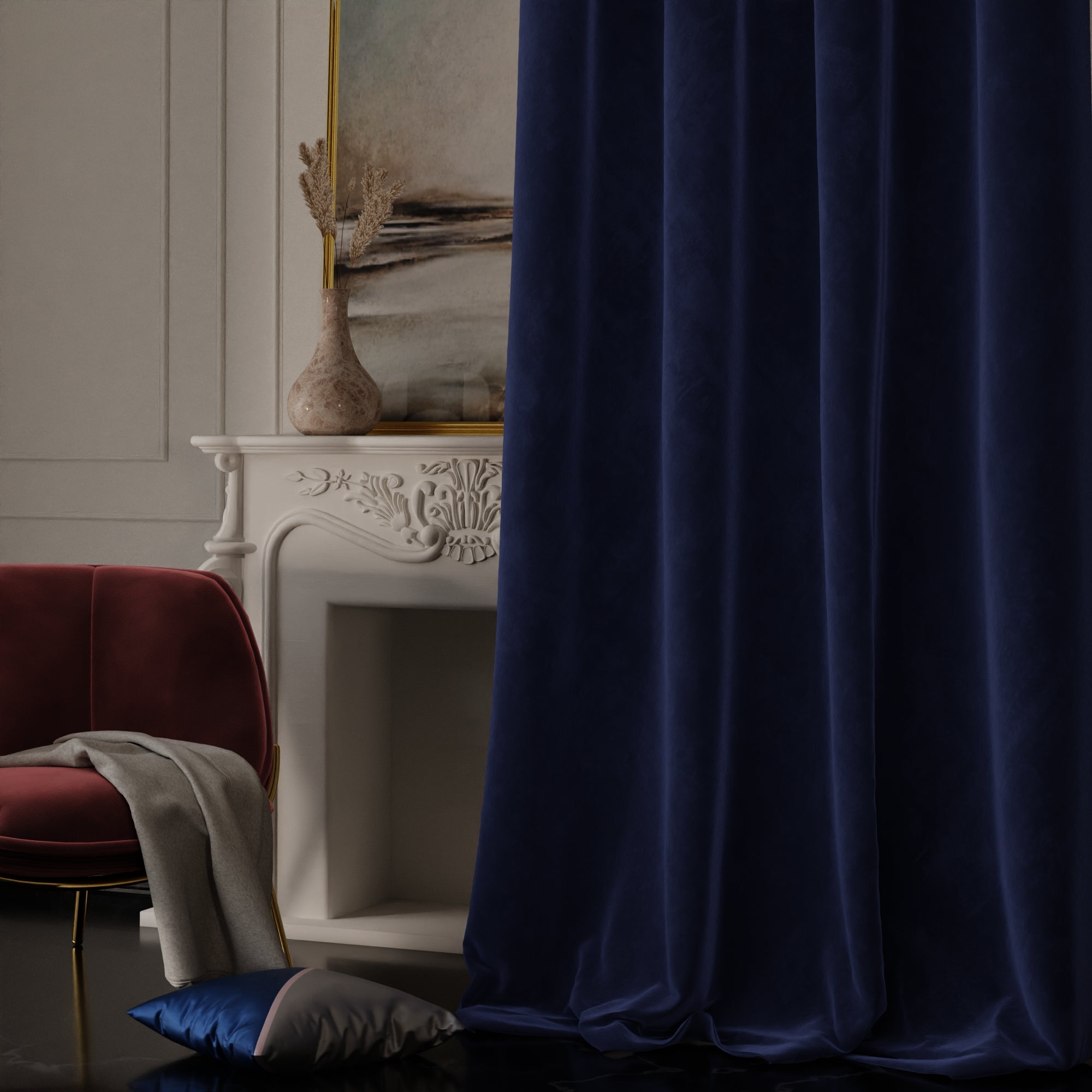 The Blue Enigma room darkening curtain speaks of a twilight cruise on the Seine, their mystique blue velvet as compelling as the Paris skyline silhouetted against the gathering night.