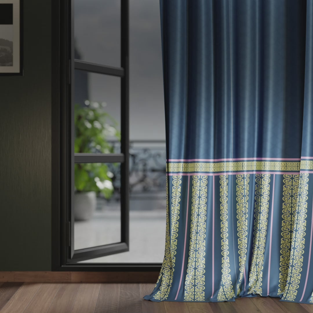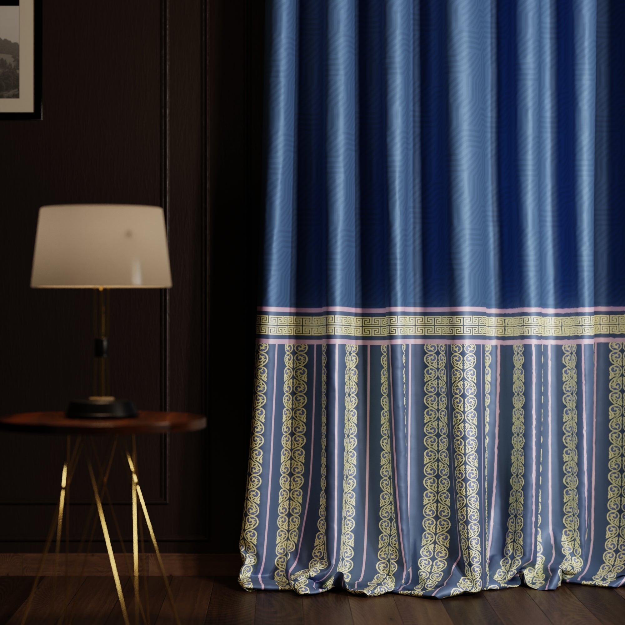 The Blue Monarch dim-out satin curtain redefines luxury with a modern twist, marrying deep royal blues with fresh design elements that speak to a new era of Versailles-inspired décor.