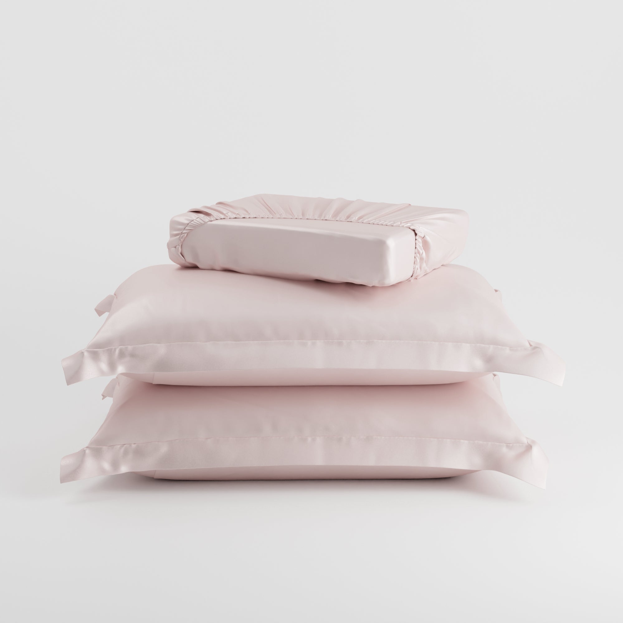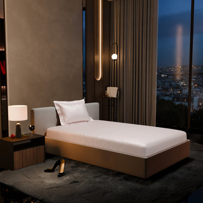 Sink into the rosy and elegant hues of Blushing Pink. These silk-like satin linen bed sets are designed to add a touch of opulence and romance to your intimate moments.