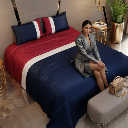 Boulevard Blue is a tribute to the contemporary art scene of Paris, captured in the luxurious weave of our exclusive Vogue satin collection. Its deep blue shades and minimalist design echo the elegance of a modern Parisian gallery, offering a serene yet striking statement in your personal retreat.