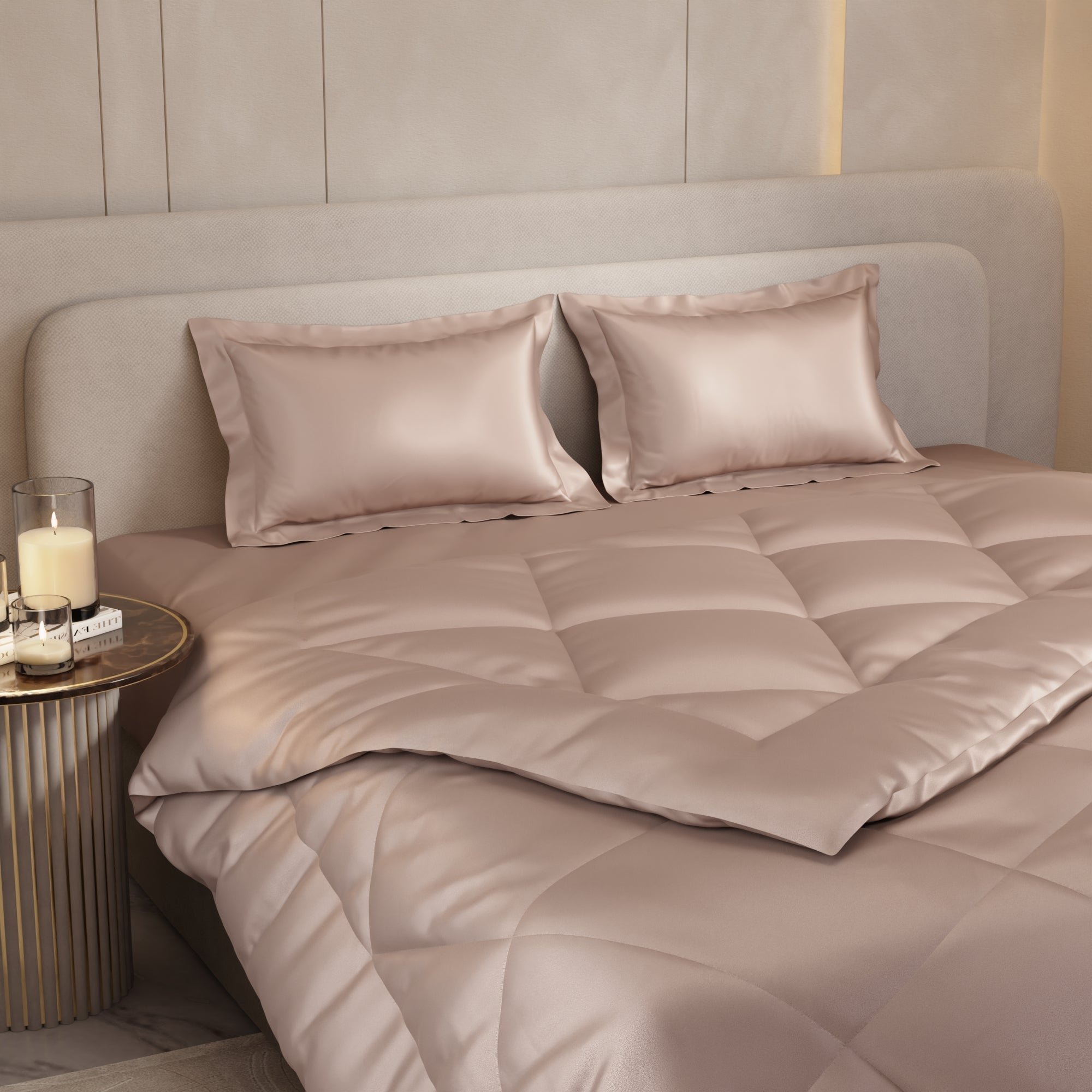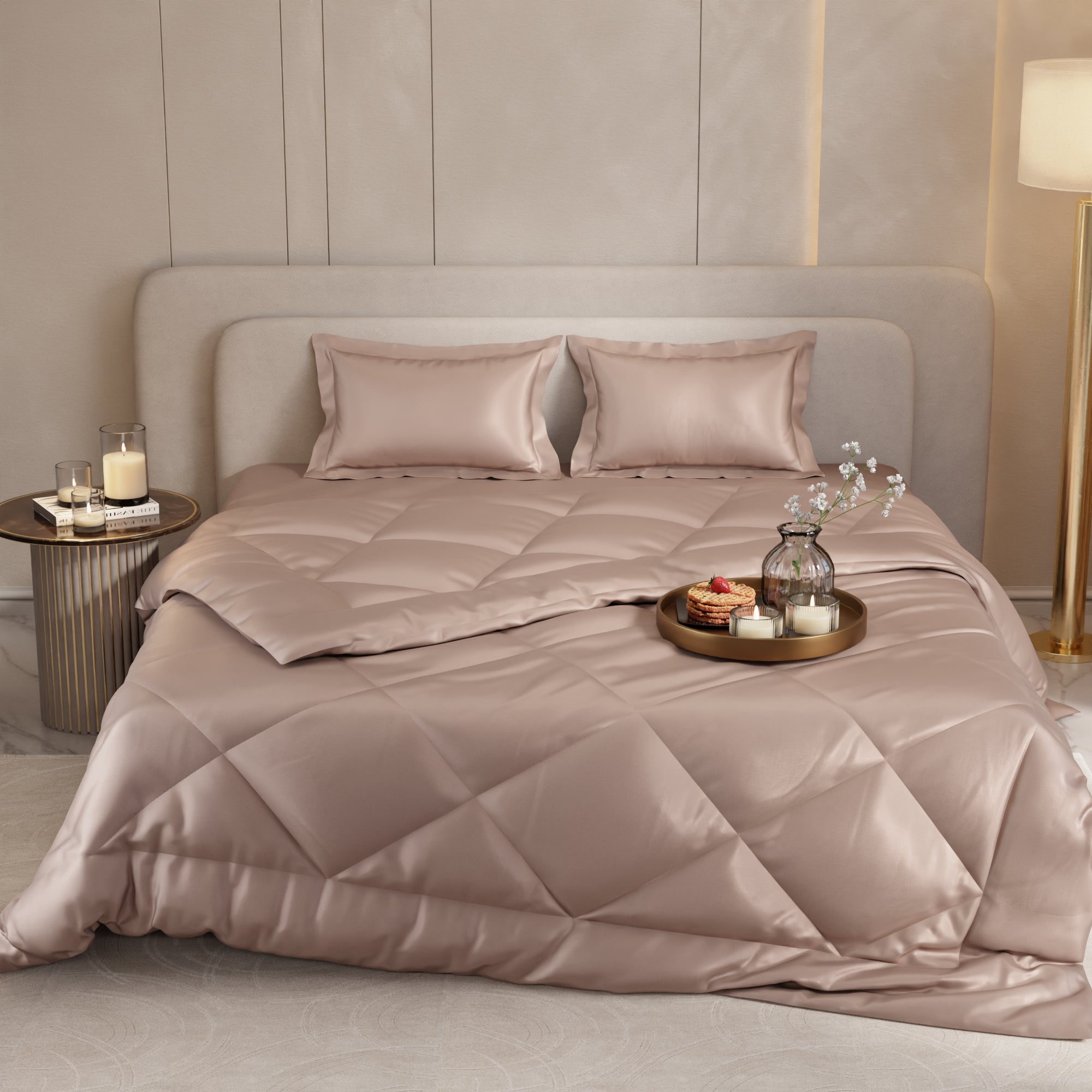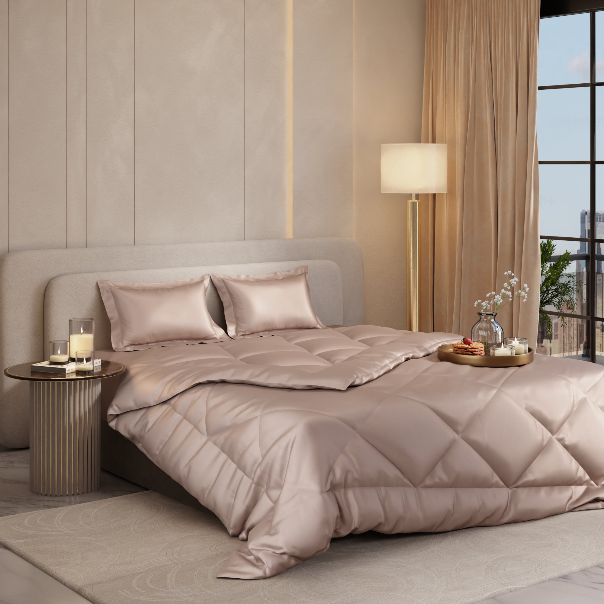 This 100% polyester UltraSatin Comforter can be machine-washed, tumbled dry, or ironed at low temperatures. Do not bleach. Do not dry in direct sunlight. Learn More
