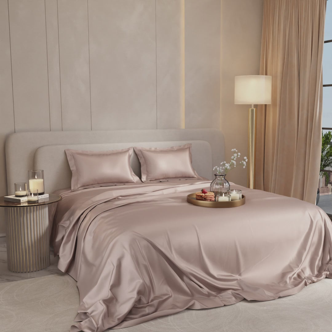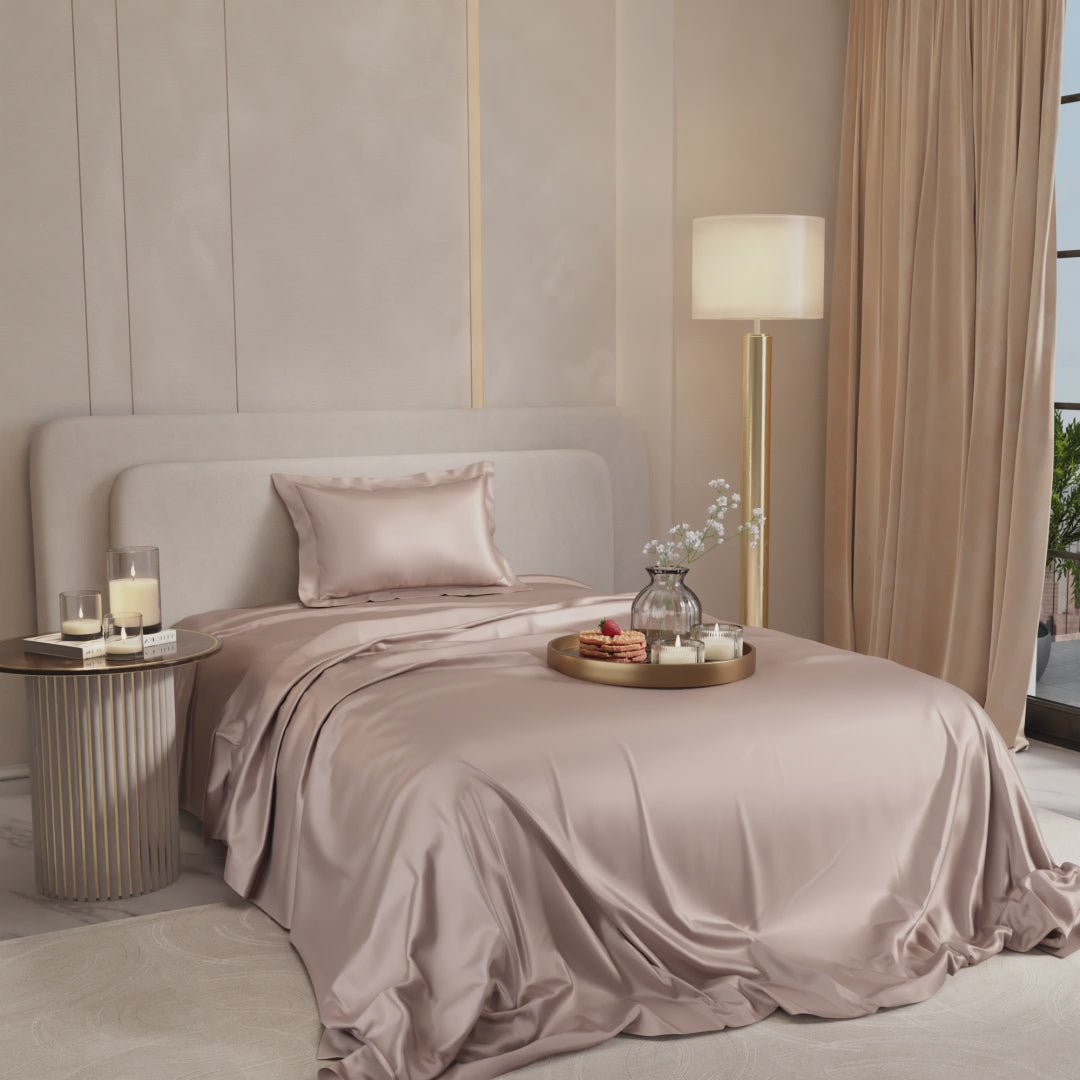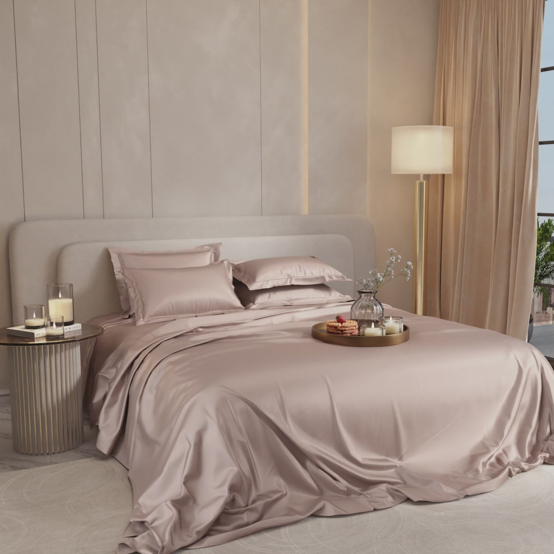 Toast to romance with the bubbly hues of Champagne. These silky smooth satin linen bed sets are designed to add a touch of opulence and romance to your intimate moments.