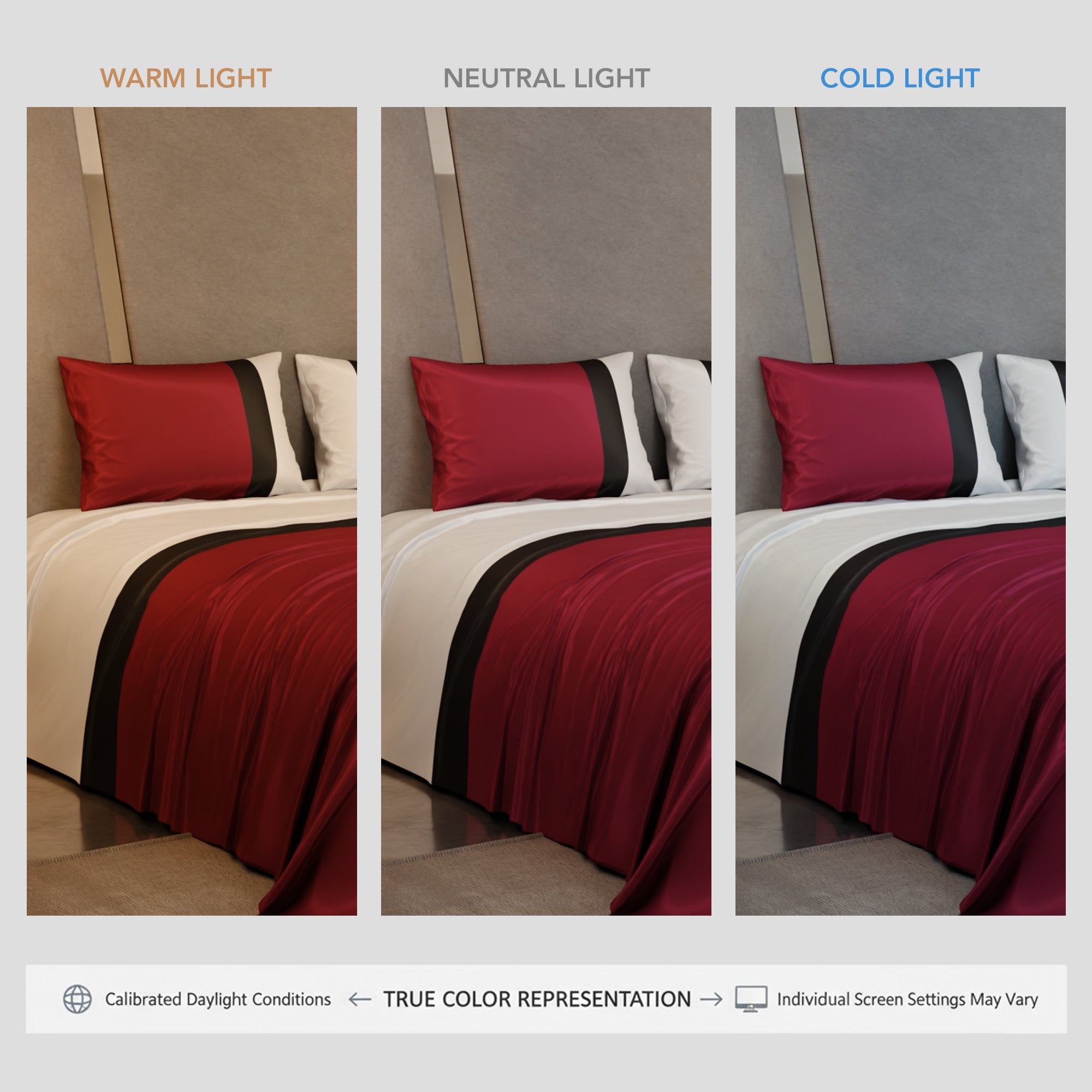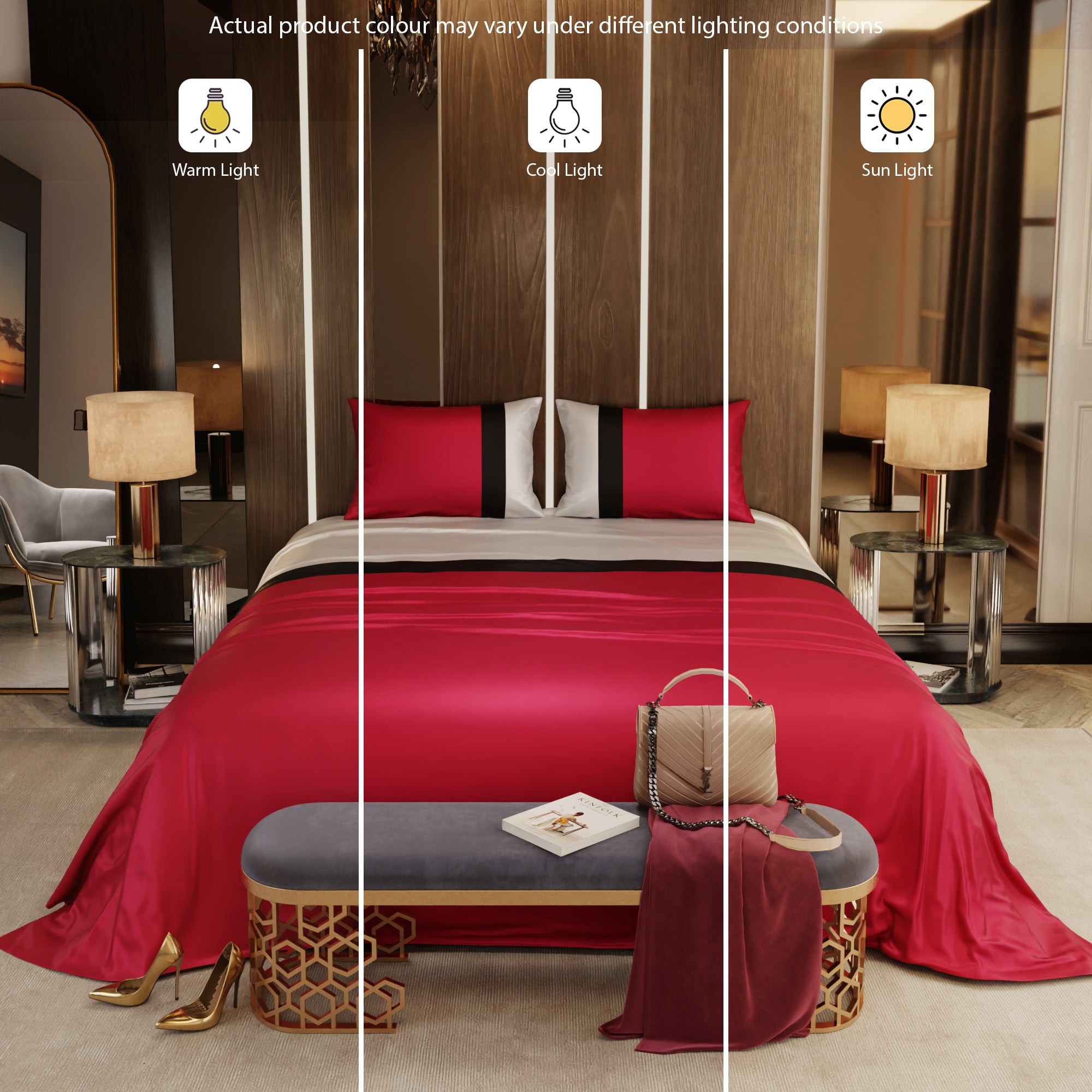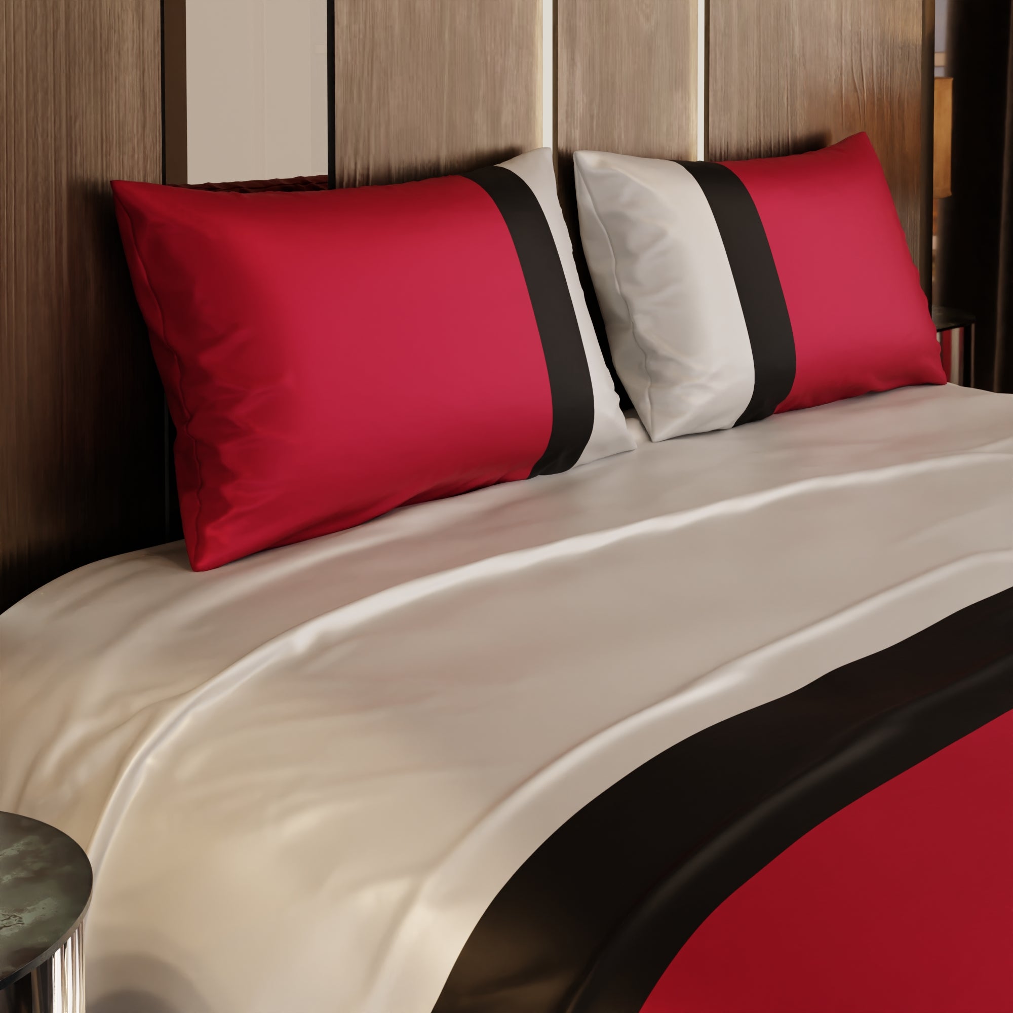 With the Stoa Paris vogue Bedding Collection - Chic Paris Bands, you're not just decorating your bedroom; you're creating a retreat where comfort and style come together. This exquisite satin bedsheet, graced by a combination of white, black, and red tones, envelops your sleeping space in an ambience that radiates modernity and sophistication. Elevate your bedroom decor with this refined bedding collection, where luxury and relaxation converge in perfect harmony.