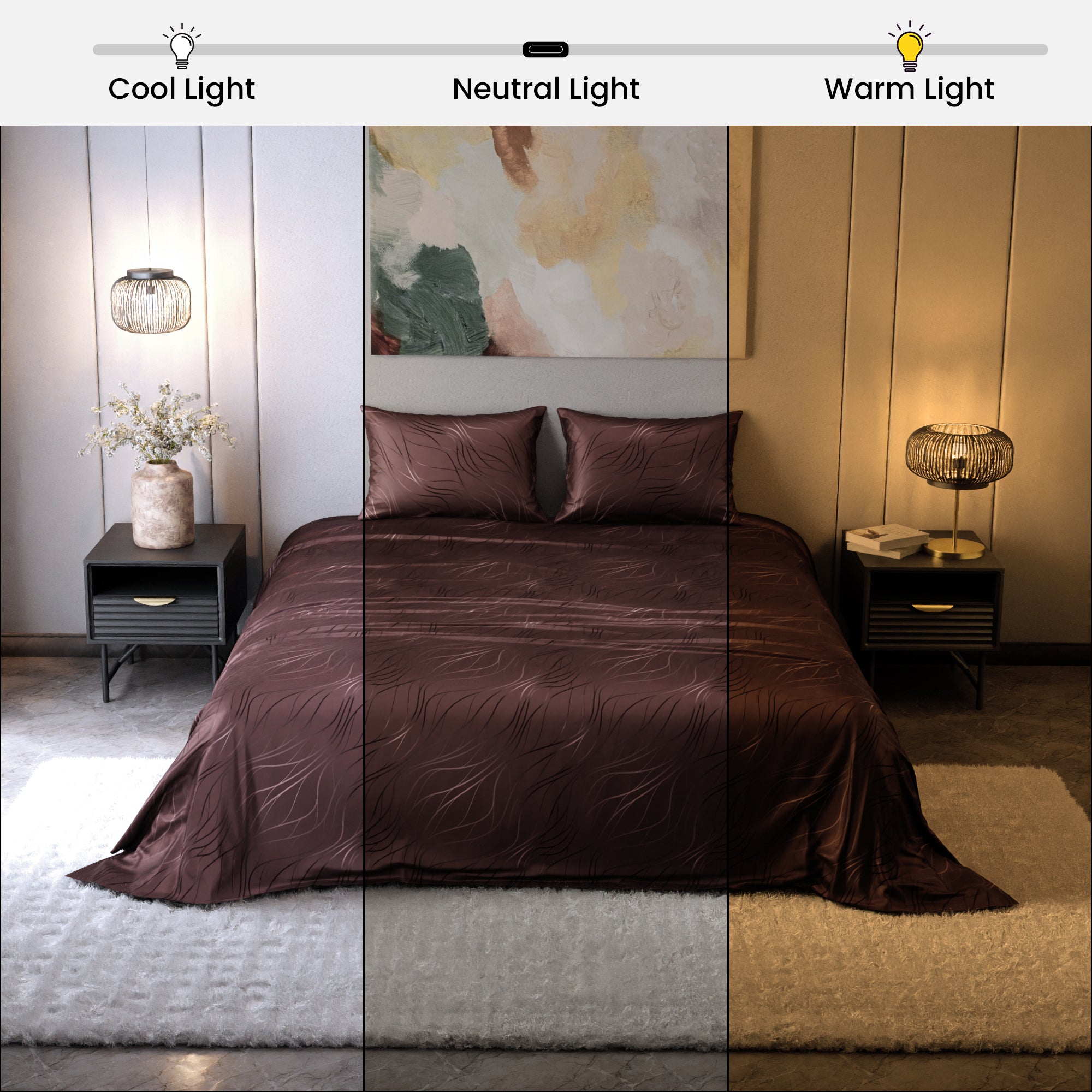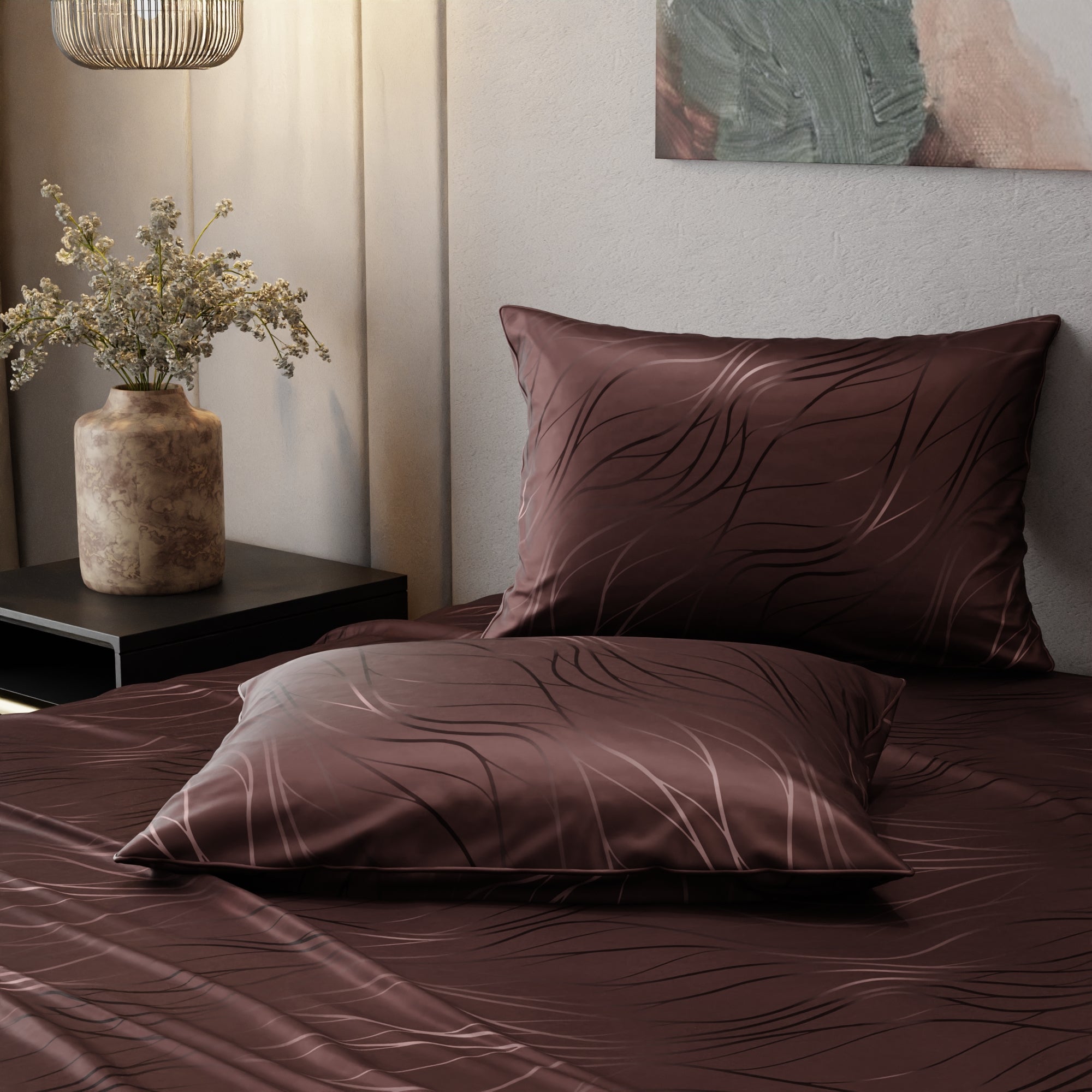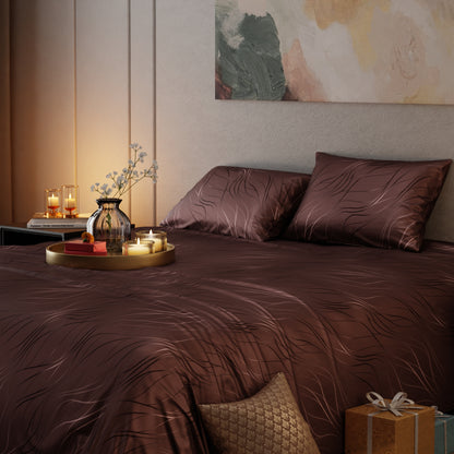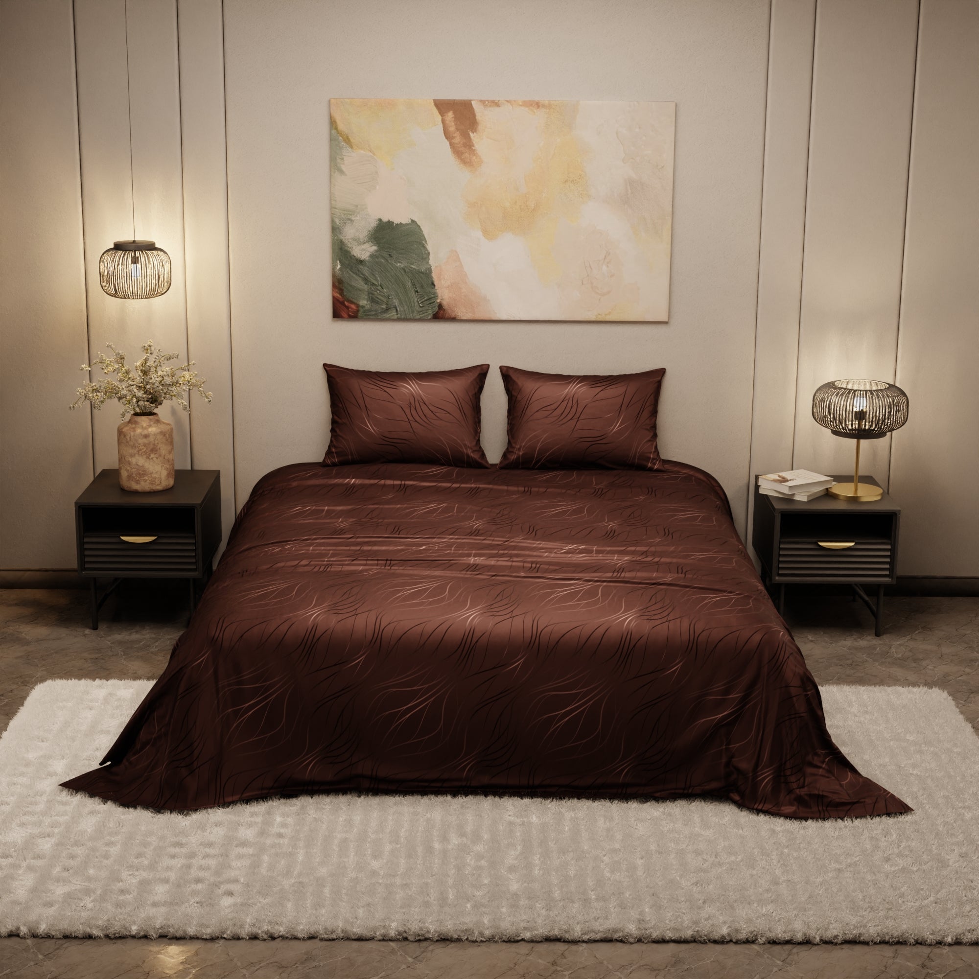 Savour the warmth and indulgence of Chocolat Noir. This chocolate-coloured satin bed sheet features embossed brown stripes, bringing a touch of cosiness to your bedroom. The rich brown tones evoke a sense of soothing relaxation, making Chocolat Noir a delightful choice for those seeking a sumptuous sleep experience.