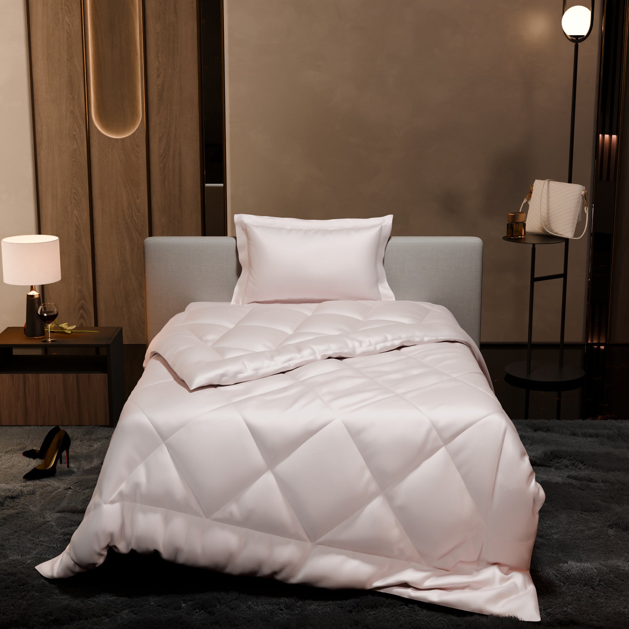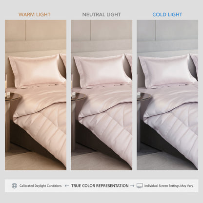 This 100% polyester UltraSatin Comforter can be machine-washed, tumbled dry, or ironed at low temperatures. Do not bleach. Do not dry in direct sunlight. Learn More