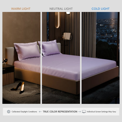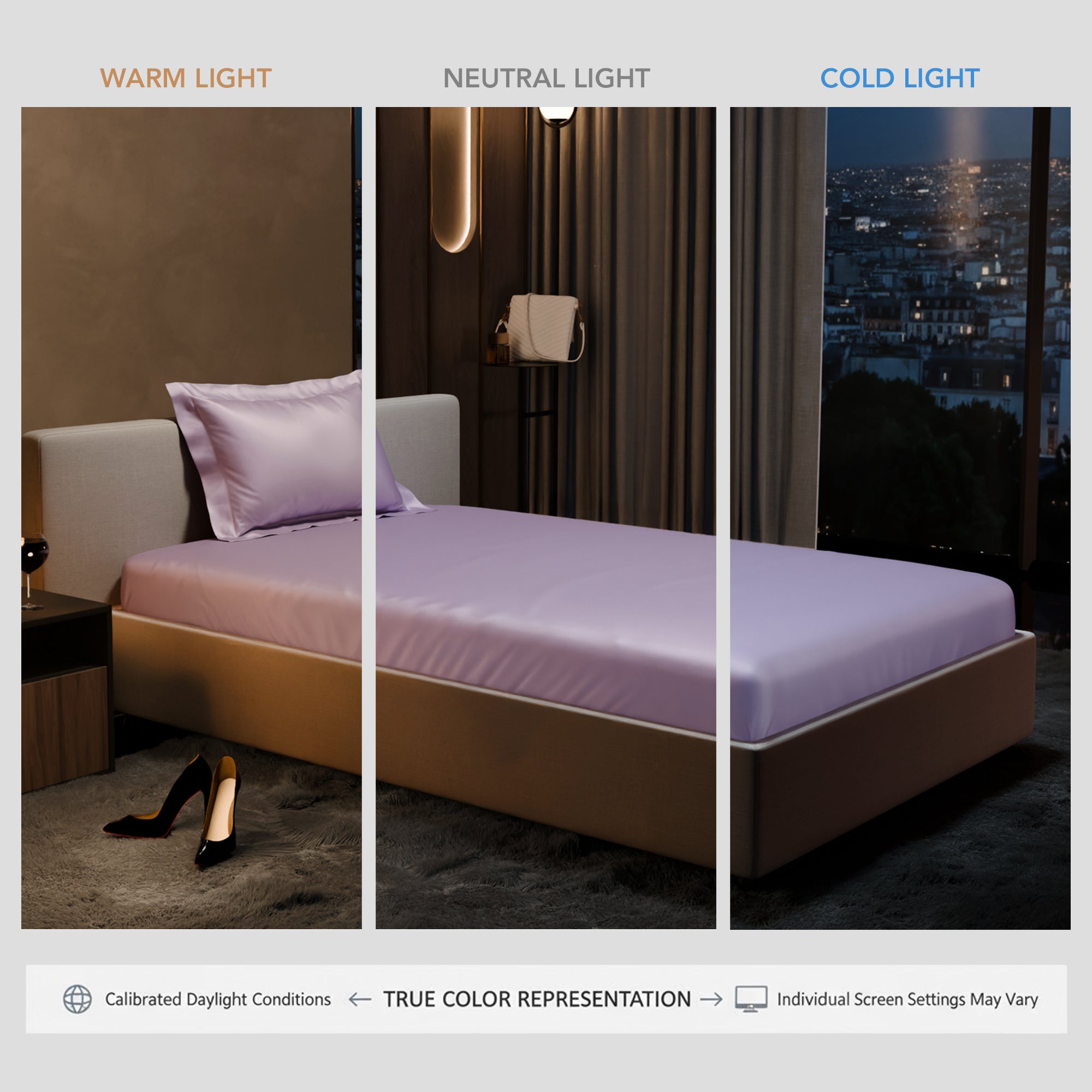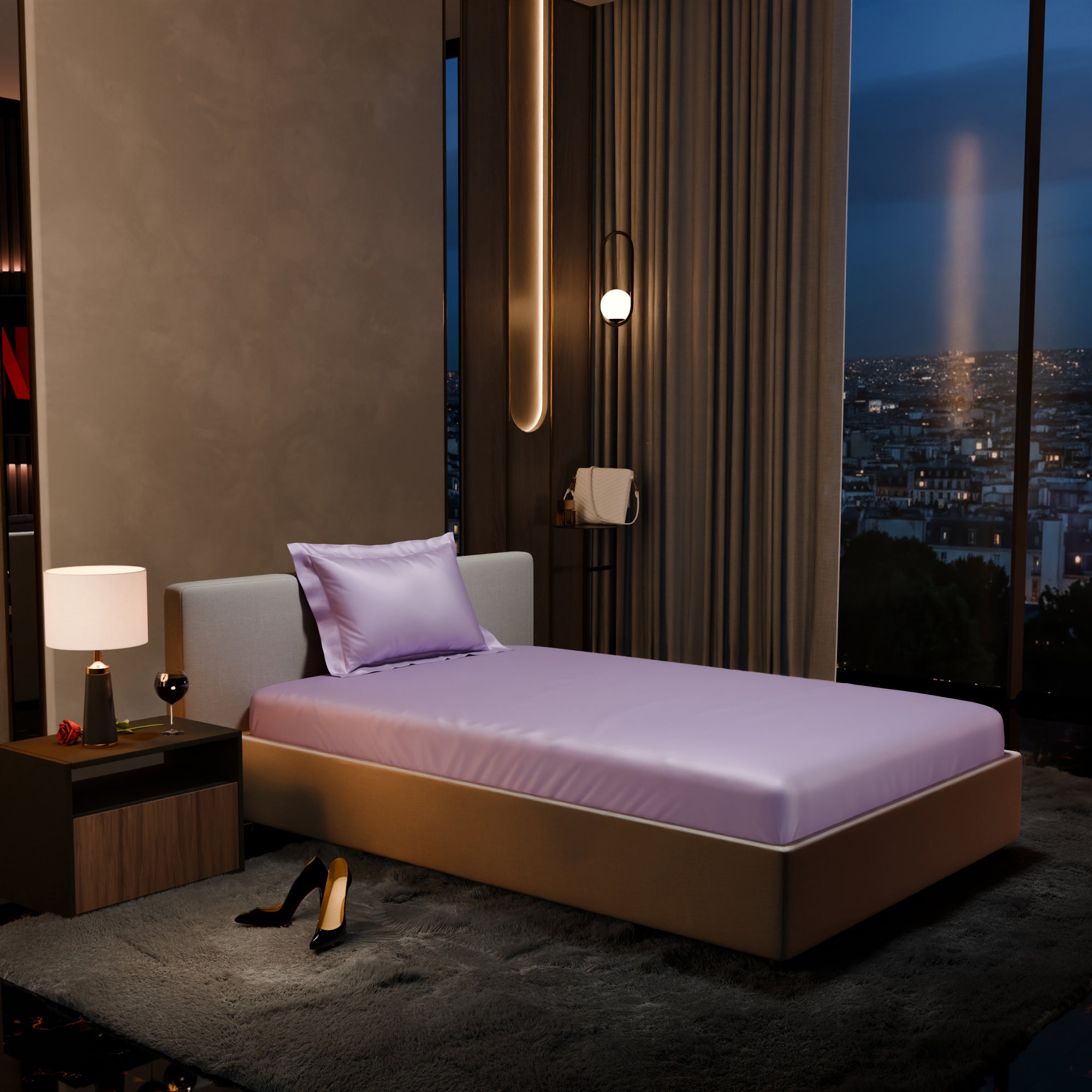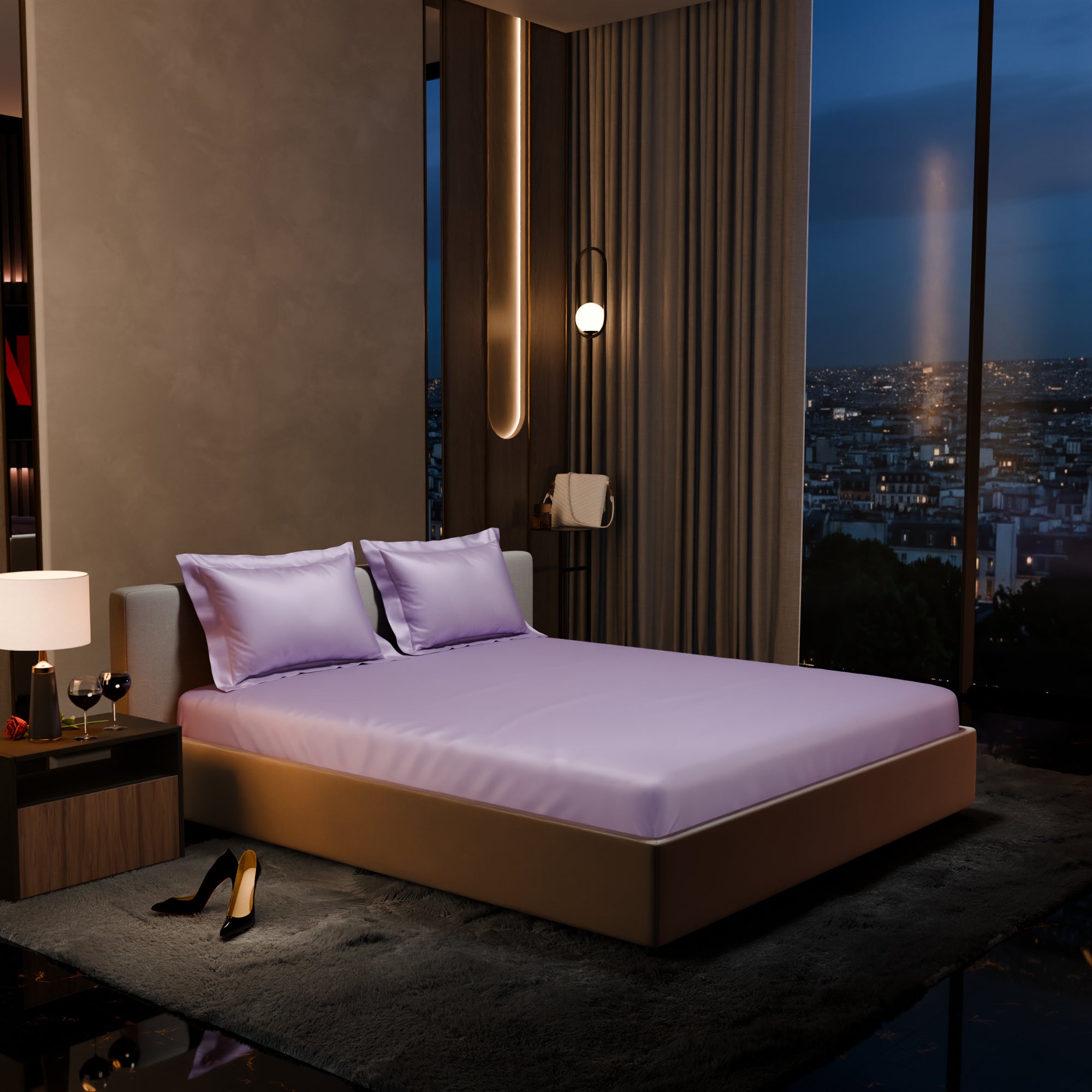 The delicate lilac satin sheets cast a dreamy and romantic ambience in your bedroom. The soft lavender hues evoke a sense of calmness and grace, transforming your bed into a haven of serenity. Surrender to the soft touch of satin as you give in to the seductive charms of Lilac Affair.