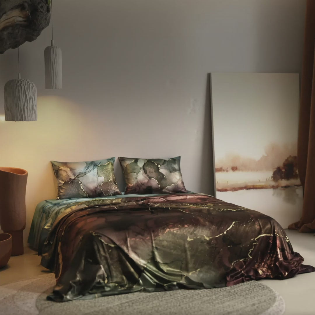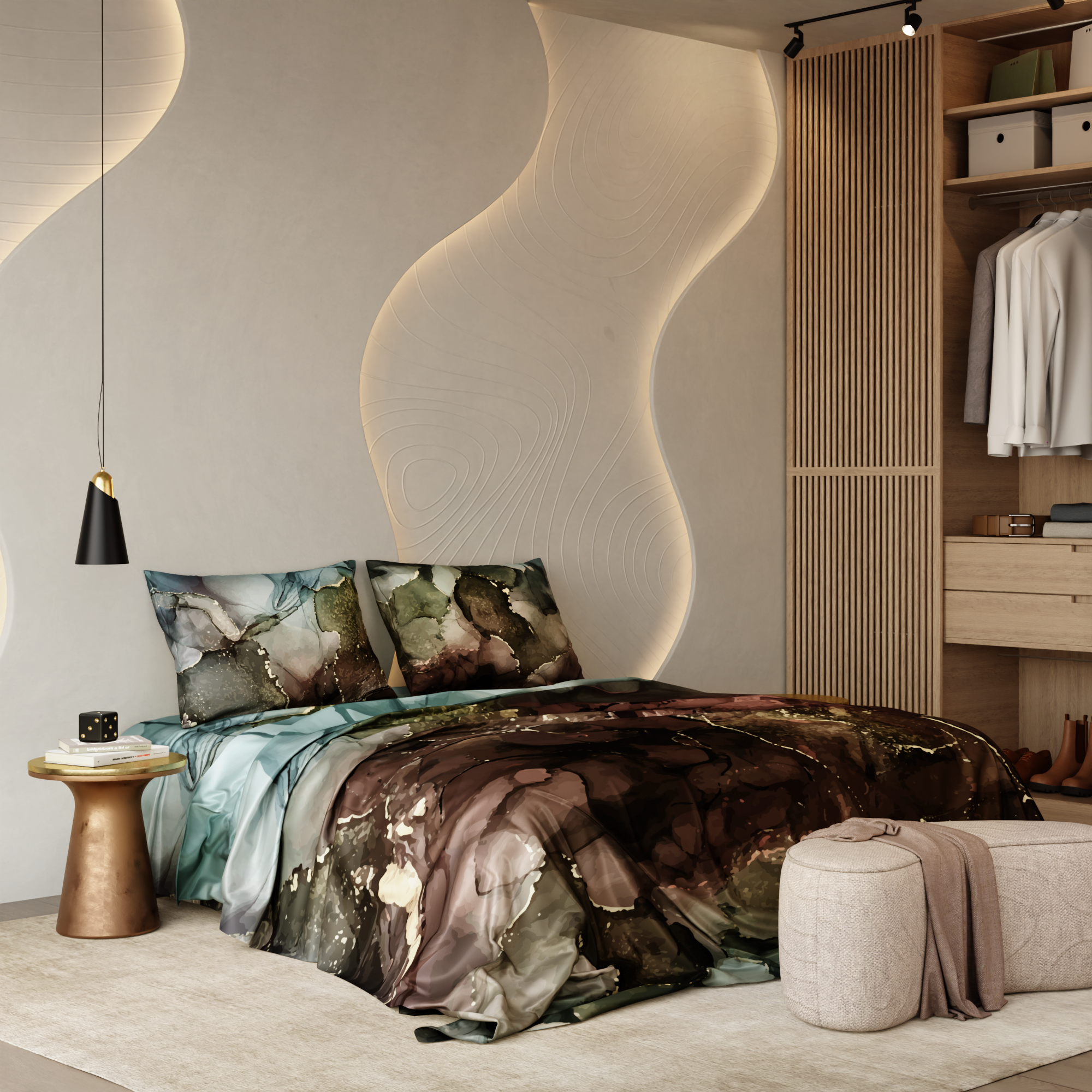 With shades of deep moss, rich browns, and gold accents, Dance of the Forest mirrors the enchanting interplay of shadow and light beneath a dense canopy. This design brings the untamed beauty of nature into your space, offering a sense of grounding and the primal dance of the earth’s elements.