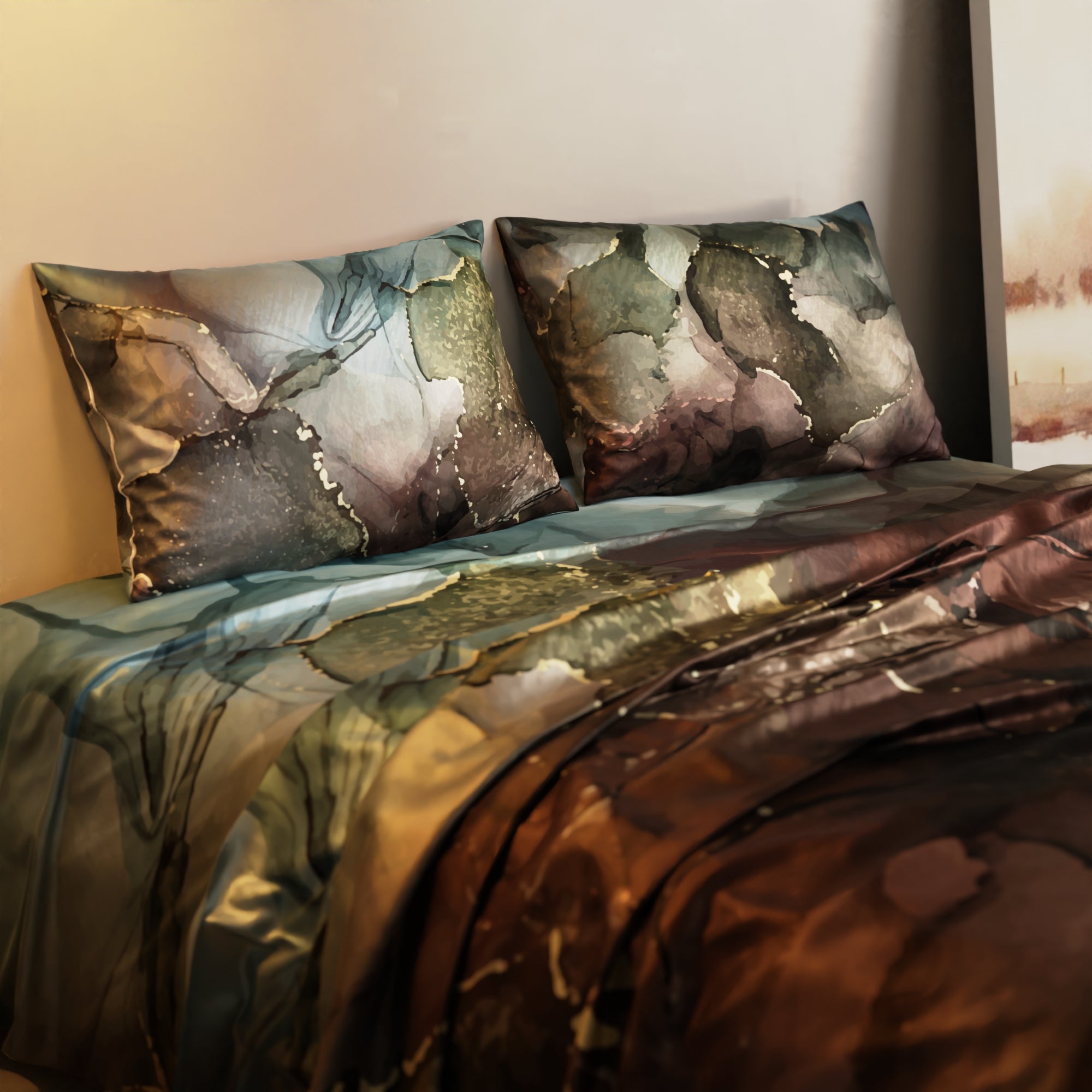 With shades of deep moss, rich browns, and gold accents, Dance of the Forest mirrors the enchanting interplay of shadow and light beneath a dense canopy. This design brings the untamed beauty of nature into your space, offering a sense of grounding and the primal dance of the earthβs elements.