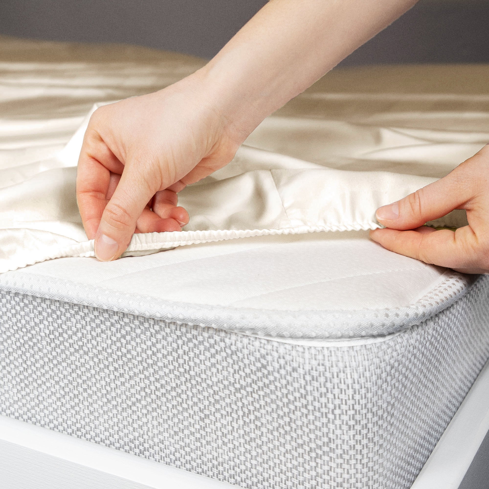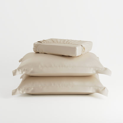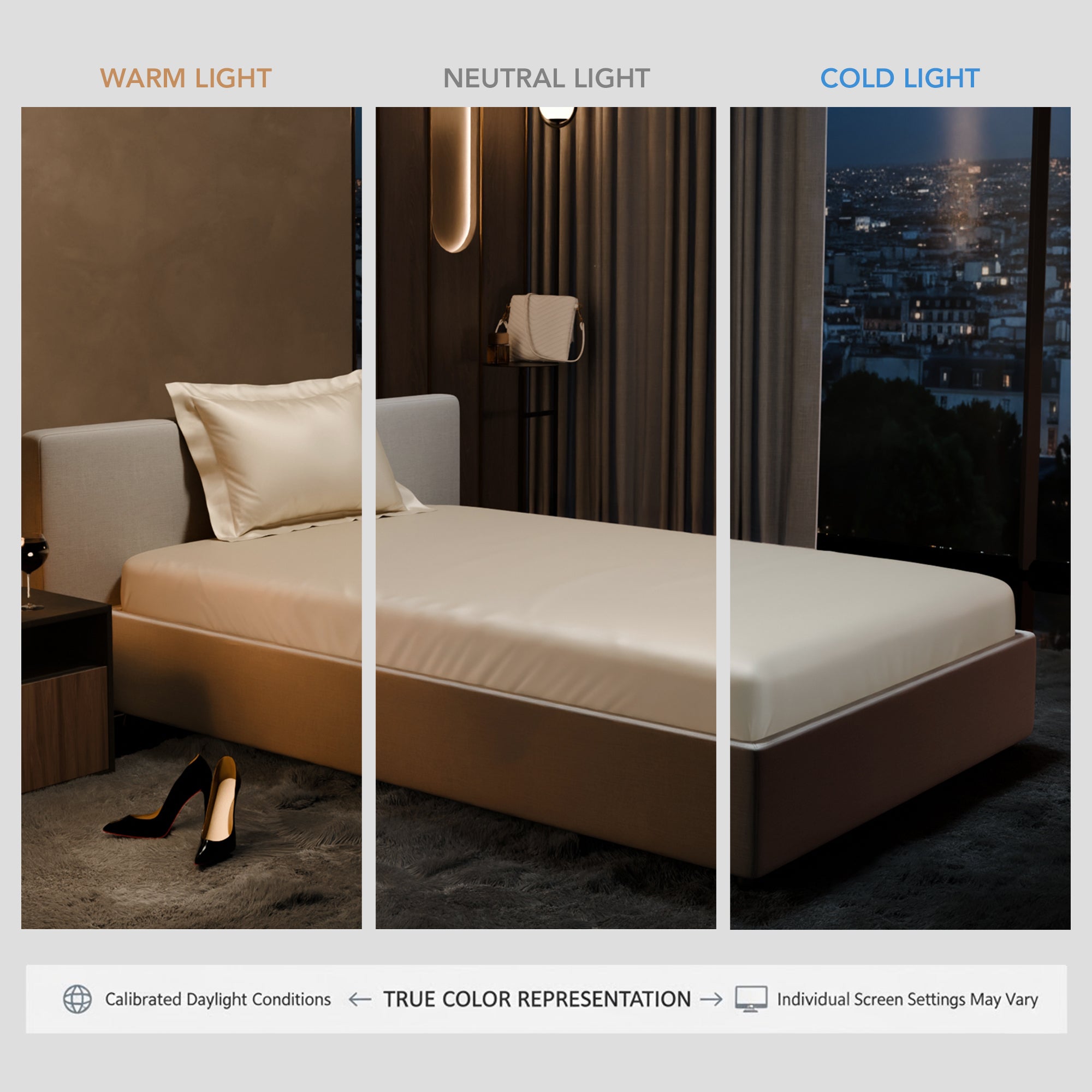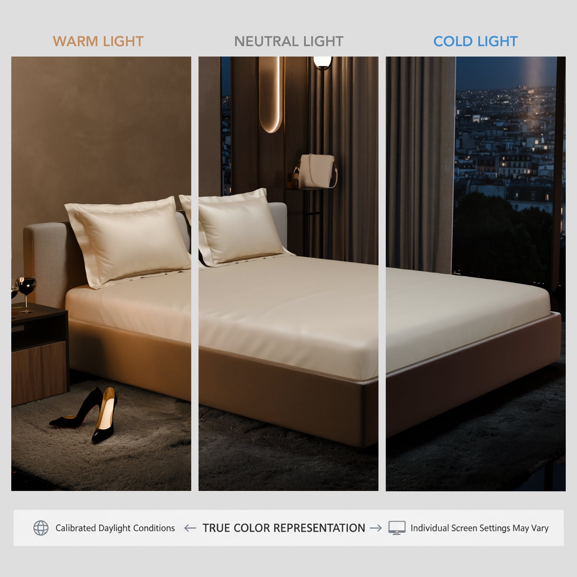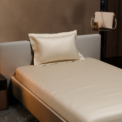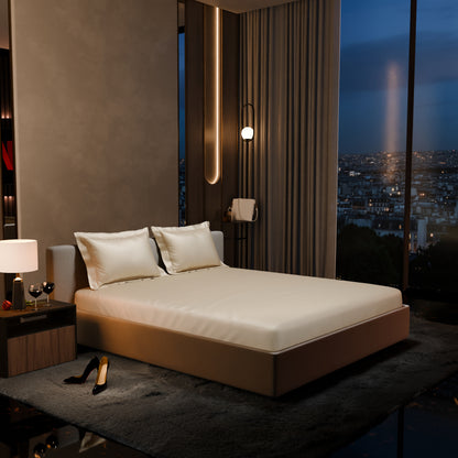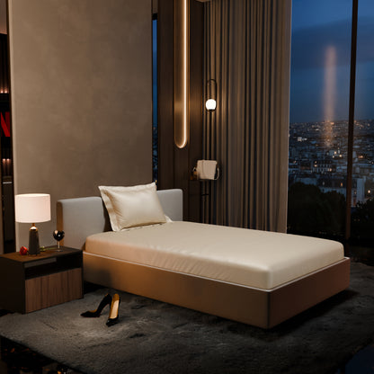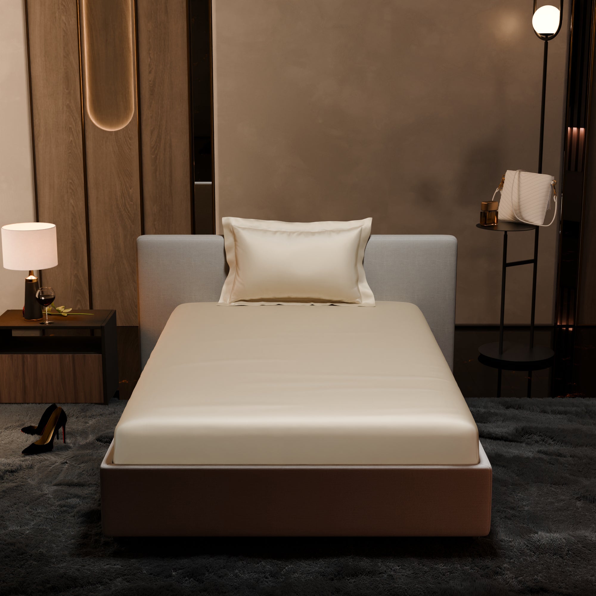 The cream-coloured sheet uplifts your bedroom's romantic aesthetics with a touch of elegance. The subtle warmth of buttercream hues, combined with the silky smoothness of satin, creates an experience of unparalleled comfort and sophistication. Drift into dreams wrapped in the sumptuous allure of Charming Ivory.