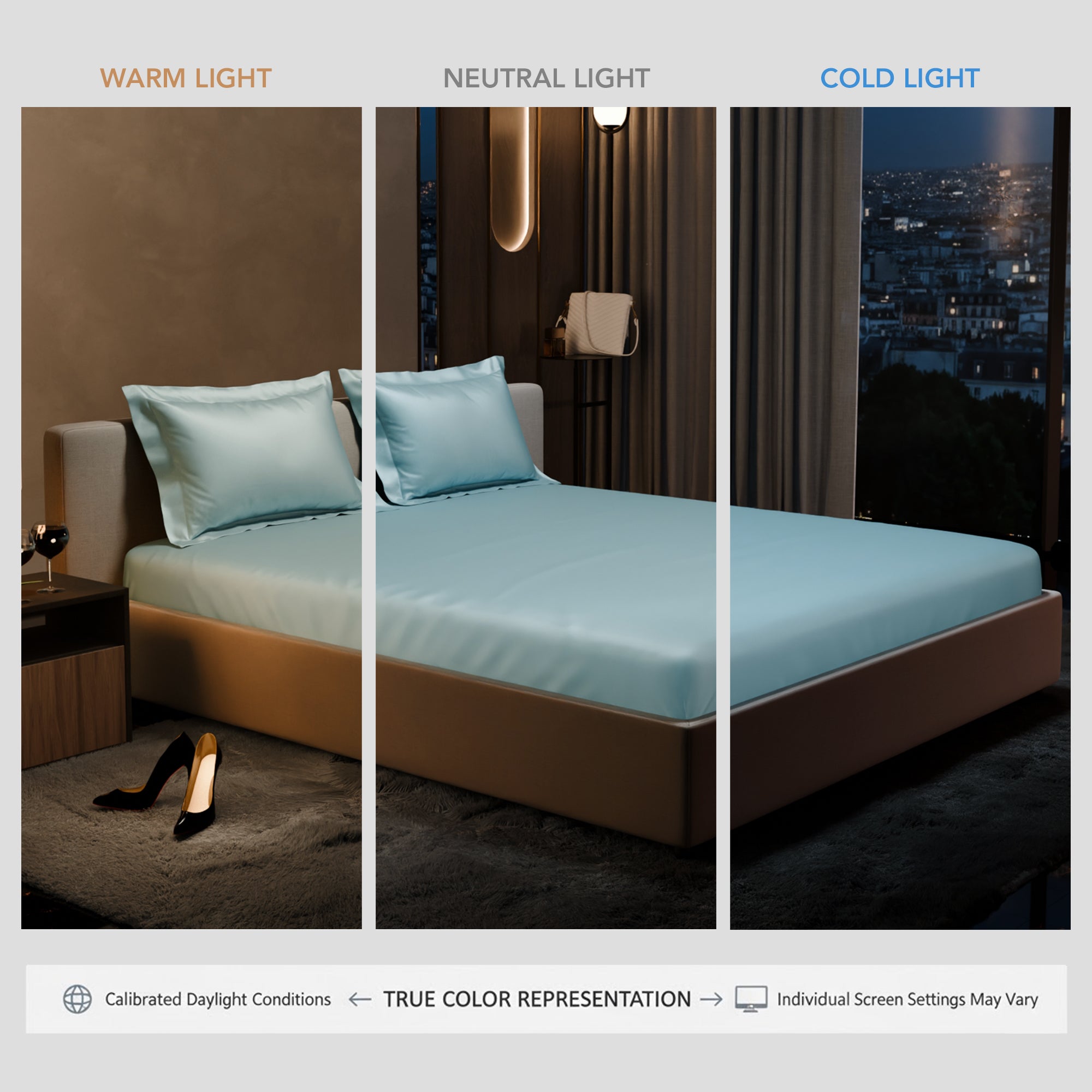 The soft hue of Dreamy Blue makes you feel like you're floating on cloud nine. These silky smooth satin linen bed sets are designed to add a touch of opulence and romance to your intimate moments.