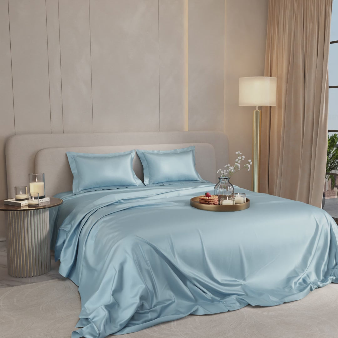 The soft hue of Dreamy Blue makes you feel like you're floating on cloud nine. These silky smooth satin linen bed sets are designed to add a touch of opulence and romance to your intimate moments.