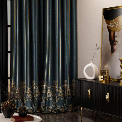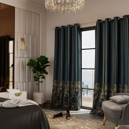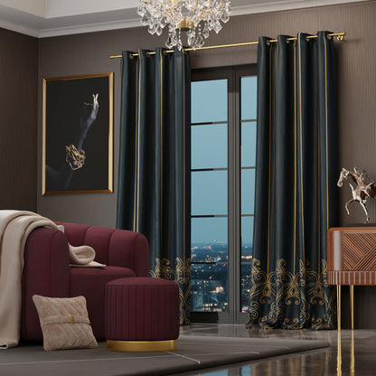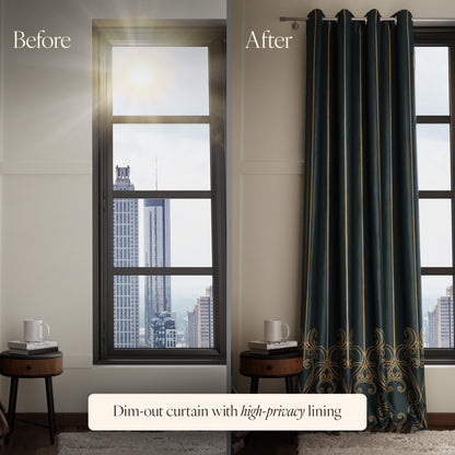 Let the Emerald Royale curtains transform your home with the elegance of old-world aristocracy, where rich hues and intricate details evoke a stately charm. With a functional privacy lining, these dim-out curtains ensure privacy, block unwanted light, and deliver a seamless blend of bold style to your home.