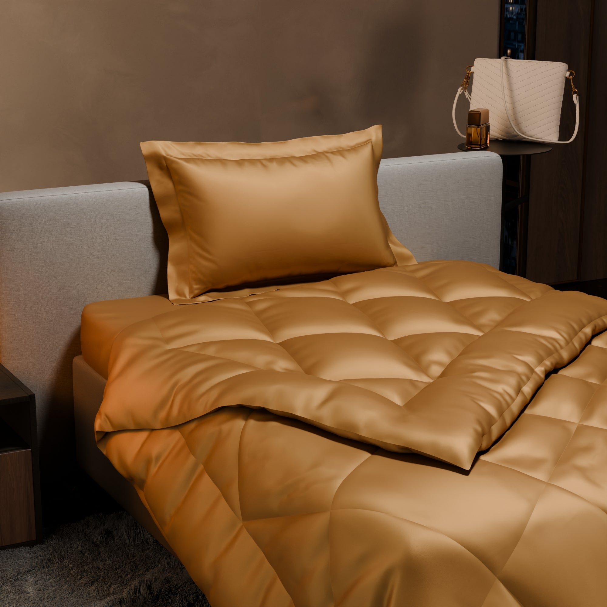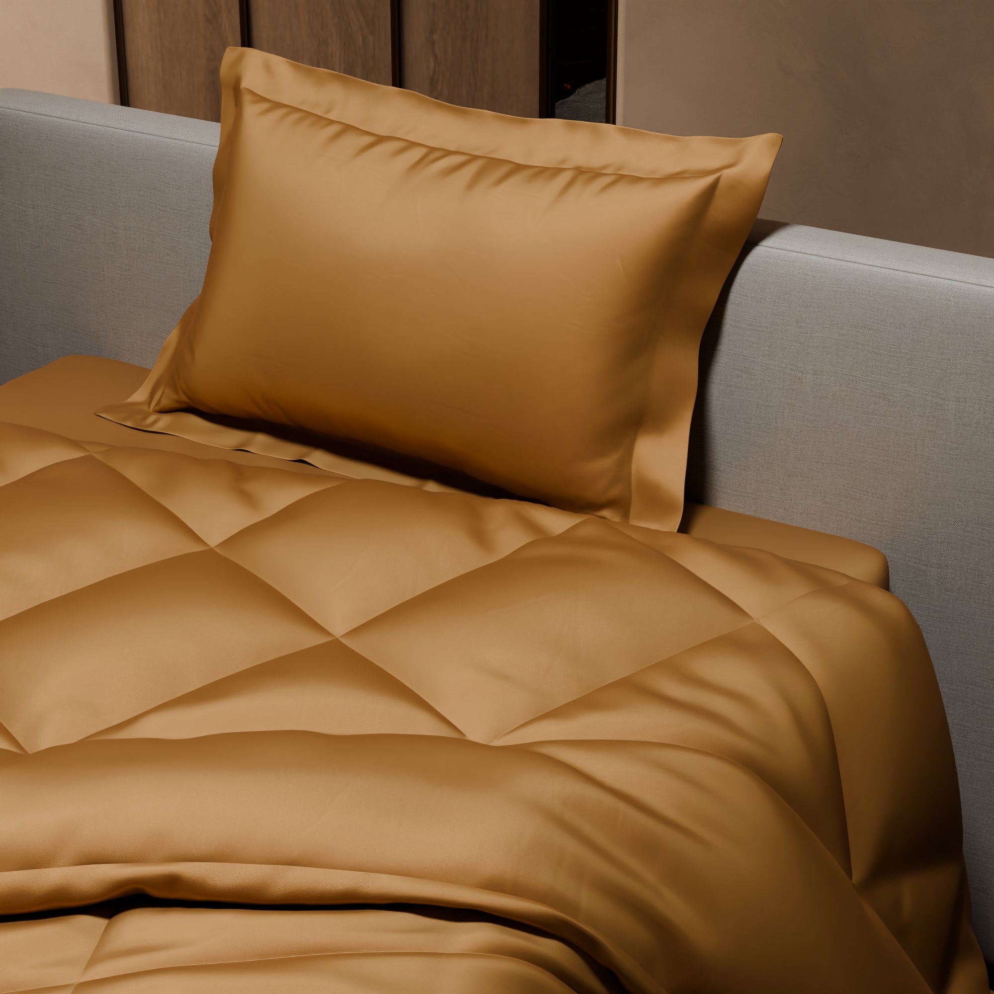 The sateen weave renders a buttery soft texture to the bed sheets, giving it a smooth and feather-light feel.