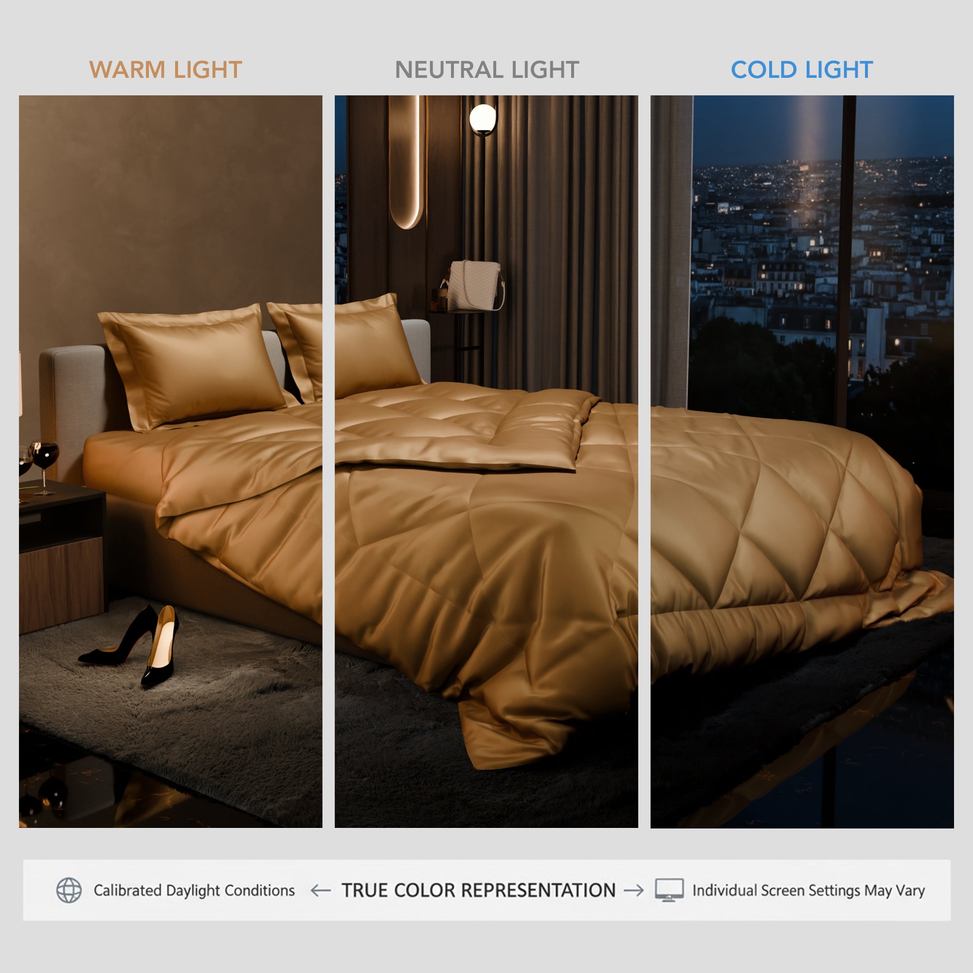 Step into the realm of romance with Eternal Glow, the golden treasure of this collection. Its luminous golden tone ignites your space with an ethereal warmth, casting an intimate glow that speaks of enduring love. This shade captures the essence of eternal beauty, enveloping your bedroom in a luxurious ambience that evokes passion and serenity. Experience the eternal allure of Eternal Glow as it paints your nights with the magic of a golden symphony, creating a canvas of love and tranquillity.