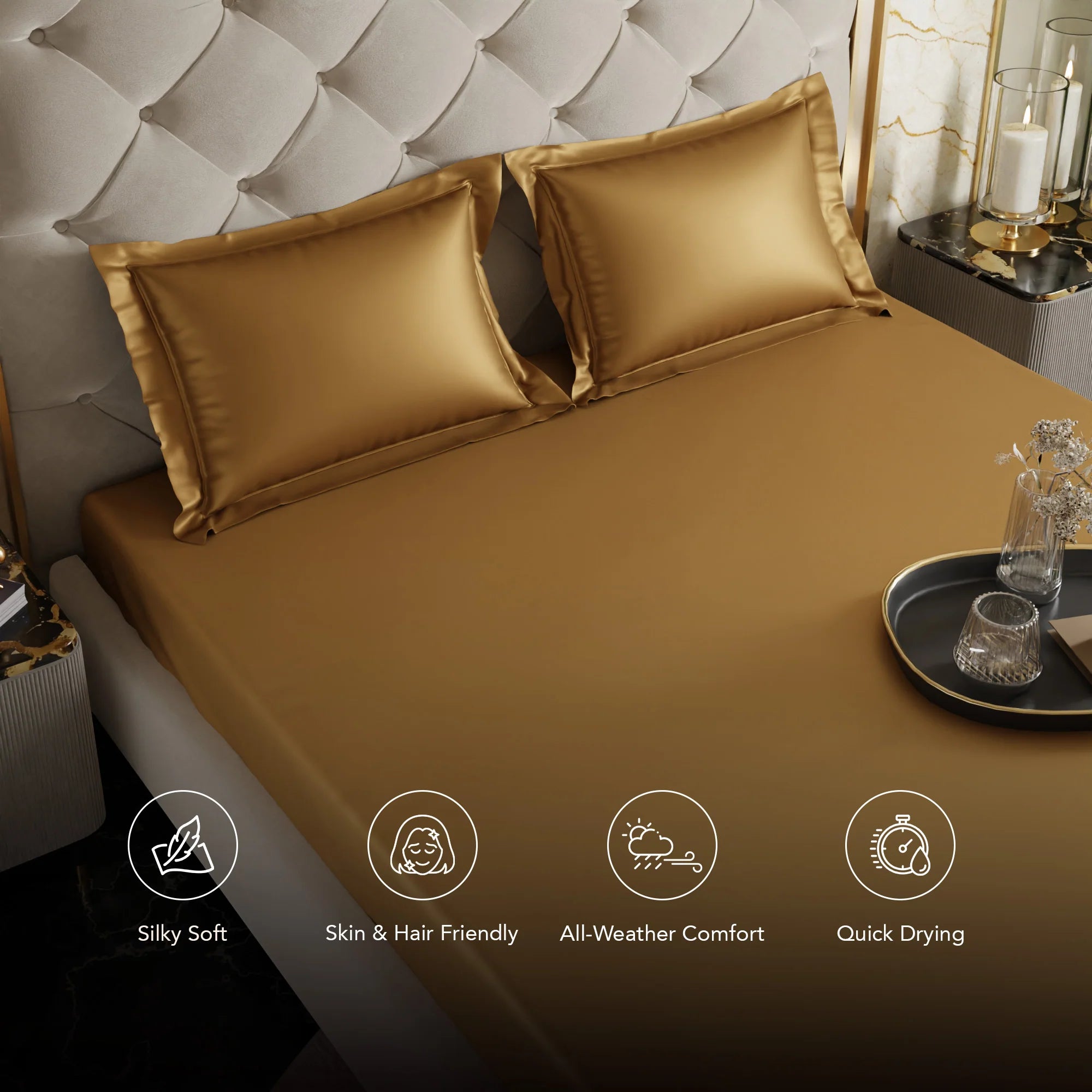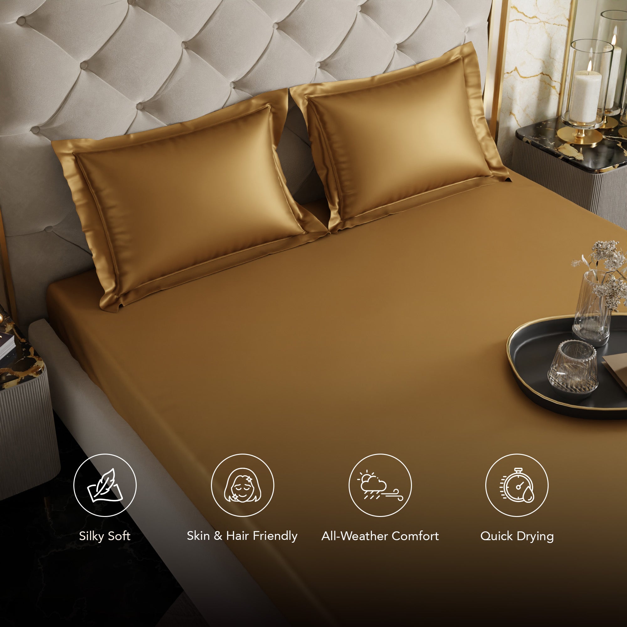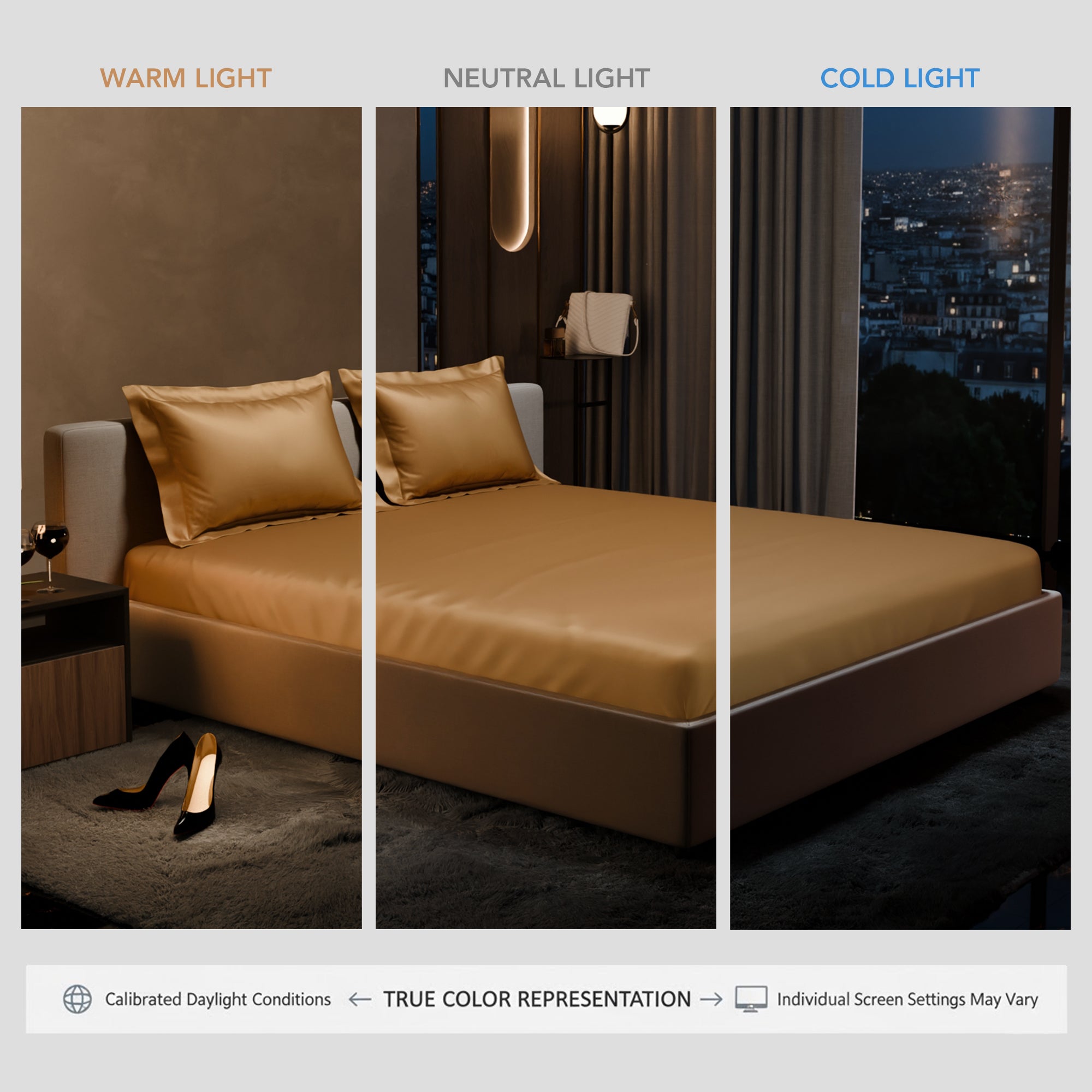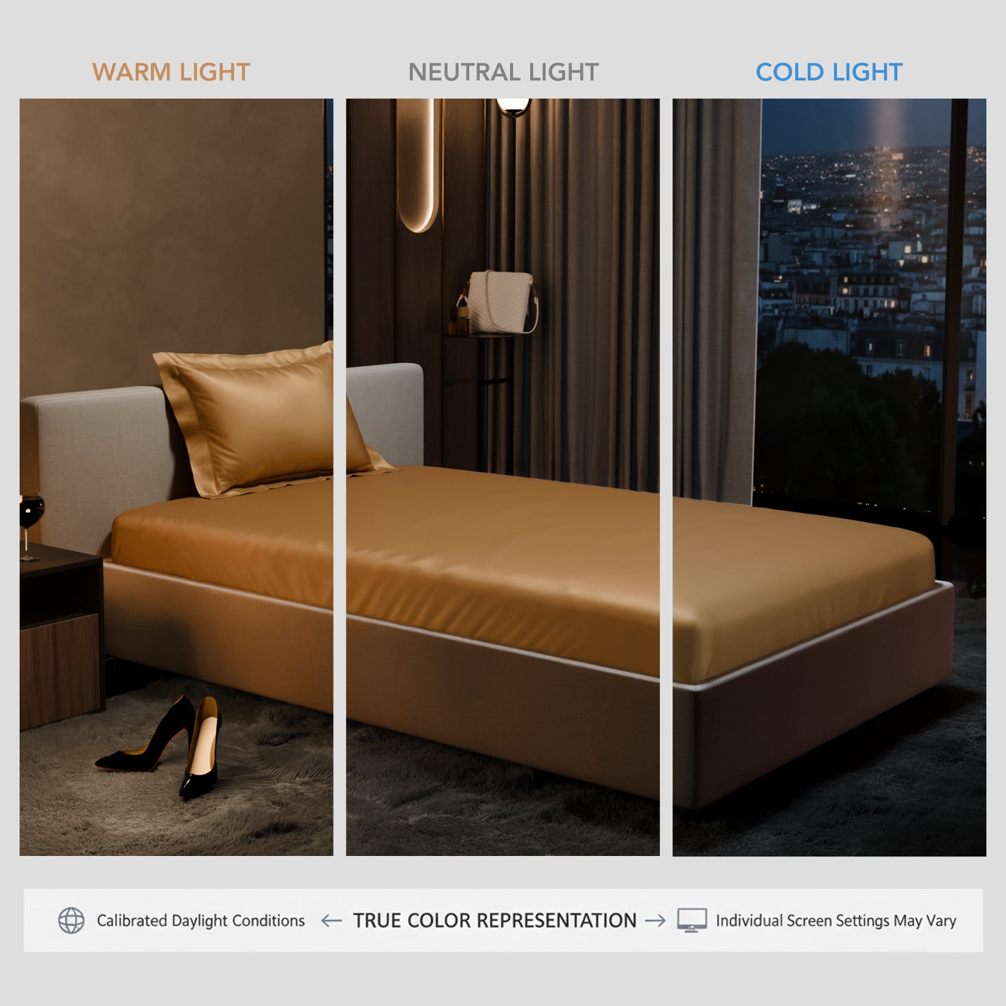 The sateen weave renders a buttery soft texture to the bed sheets, giving it a smooth and feather-light feel.
