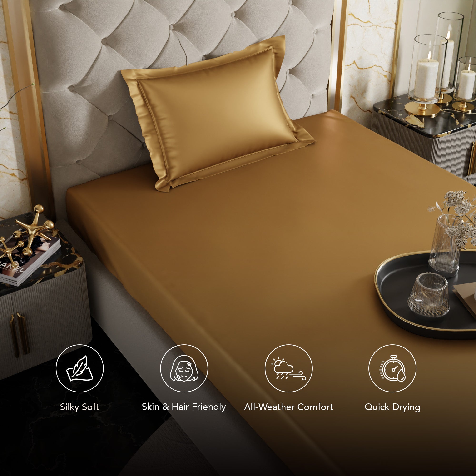 These 100% polyester UltraSatin bedsheet and pillow cover sets can be machine-washed, tumbled dry, or ironed at low temperatures. Do not bleach. Do not dry in direct sunlight. Learn More