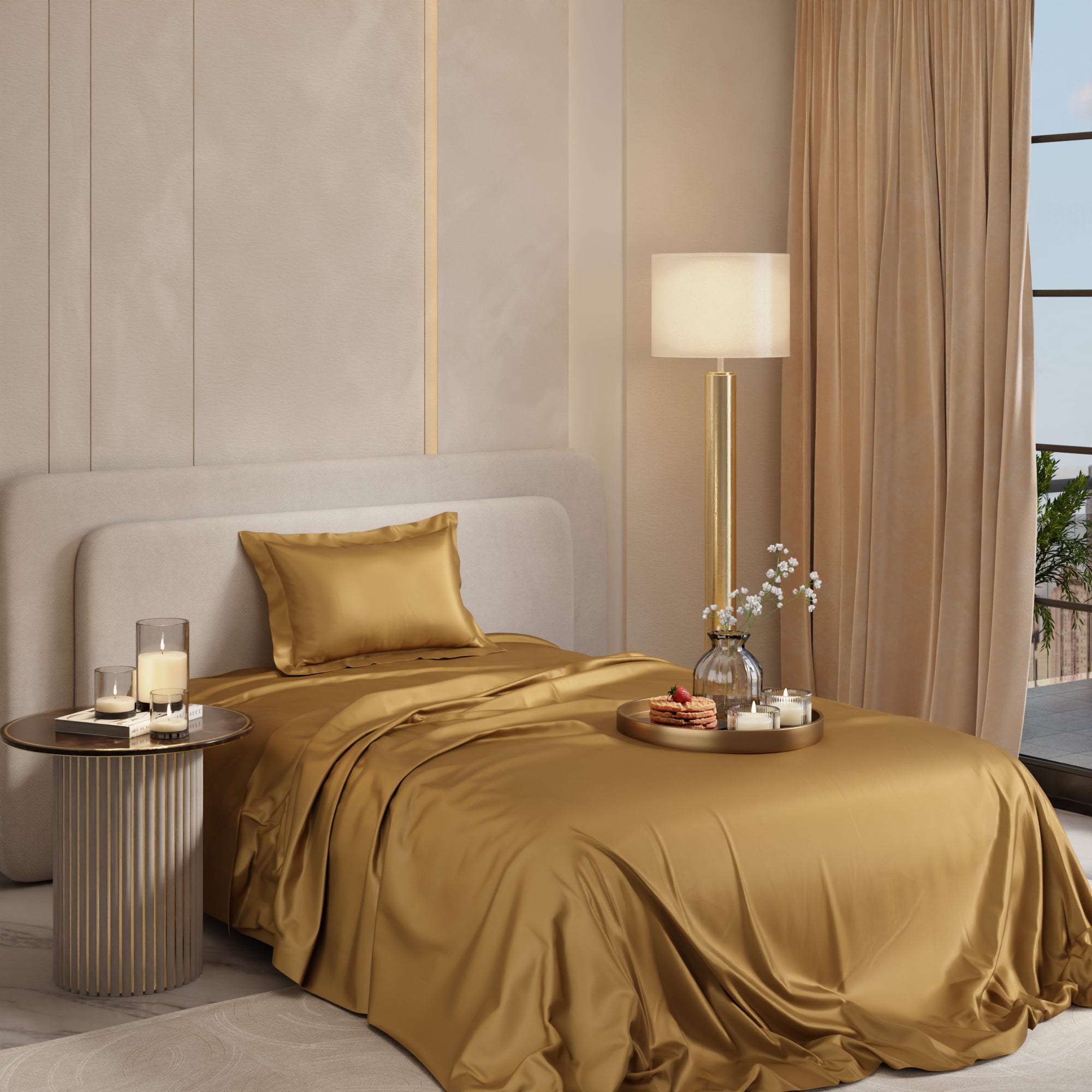 The sateen weave renders a buttery soft texture to the bed sheets, giving it a smooth and feather-light feel.