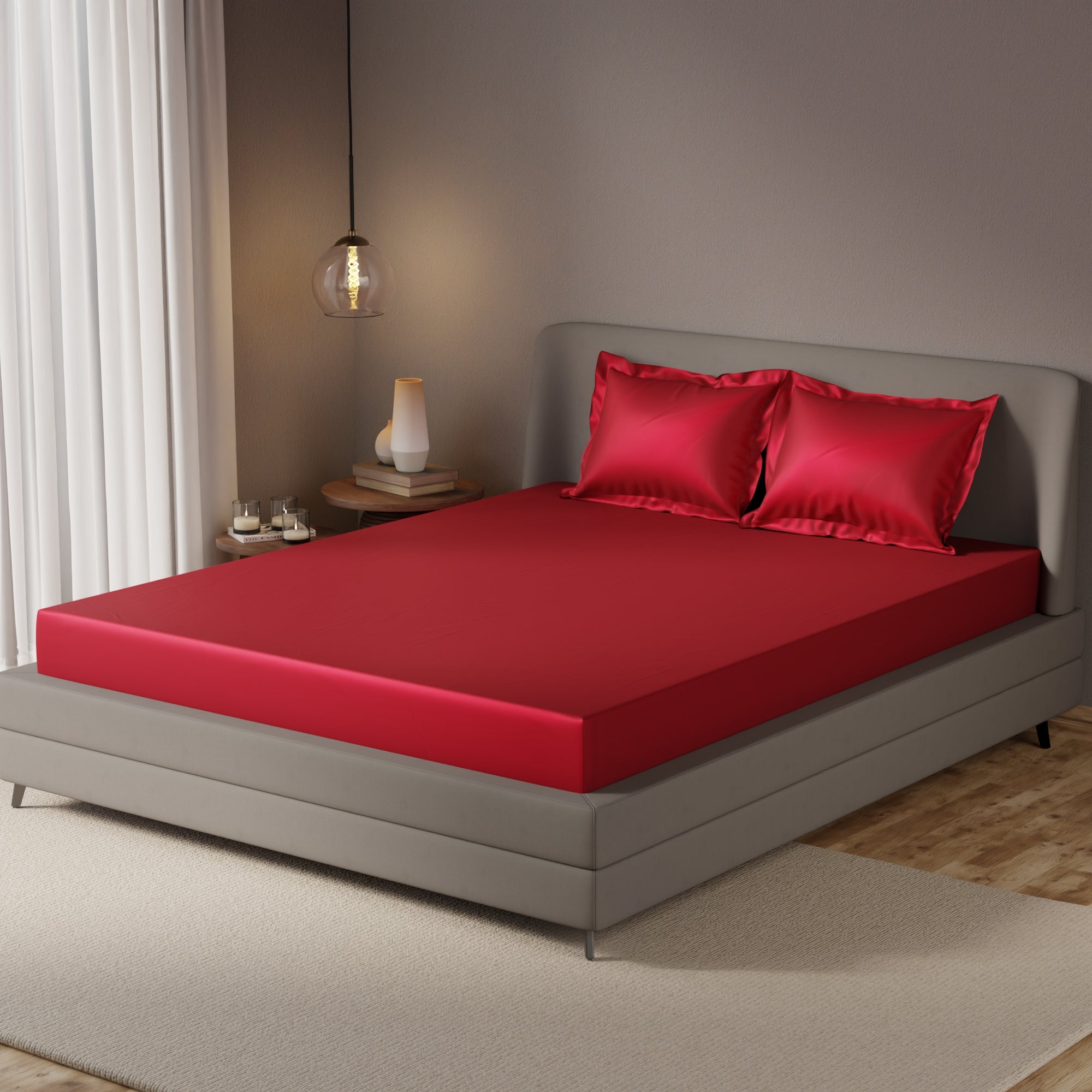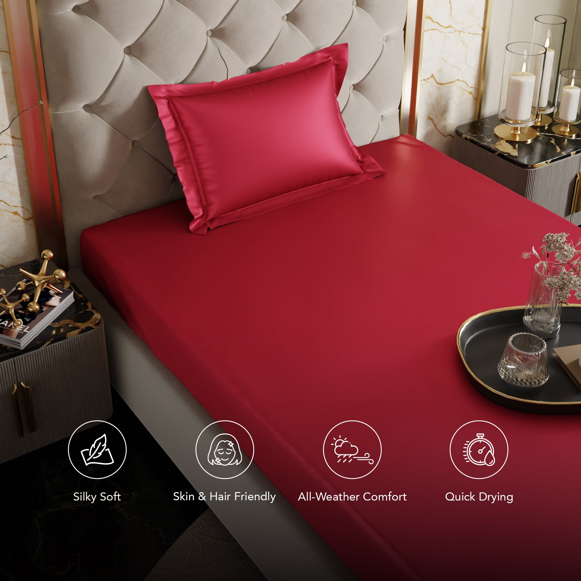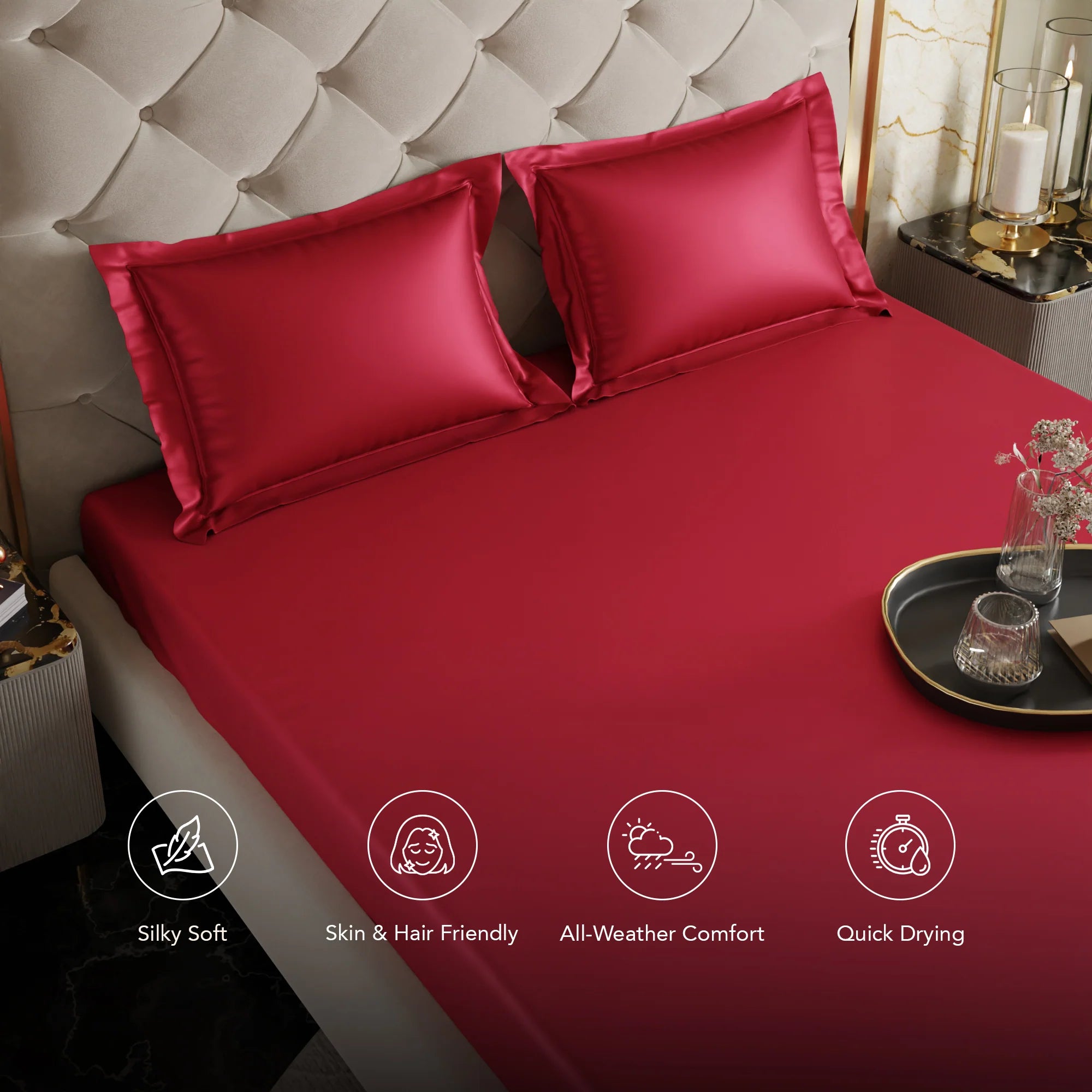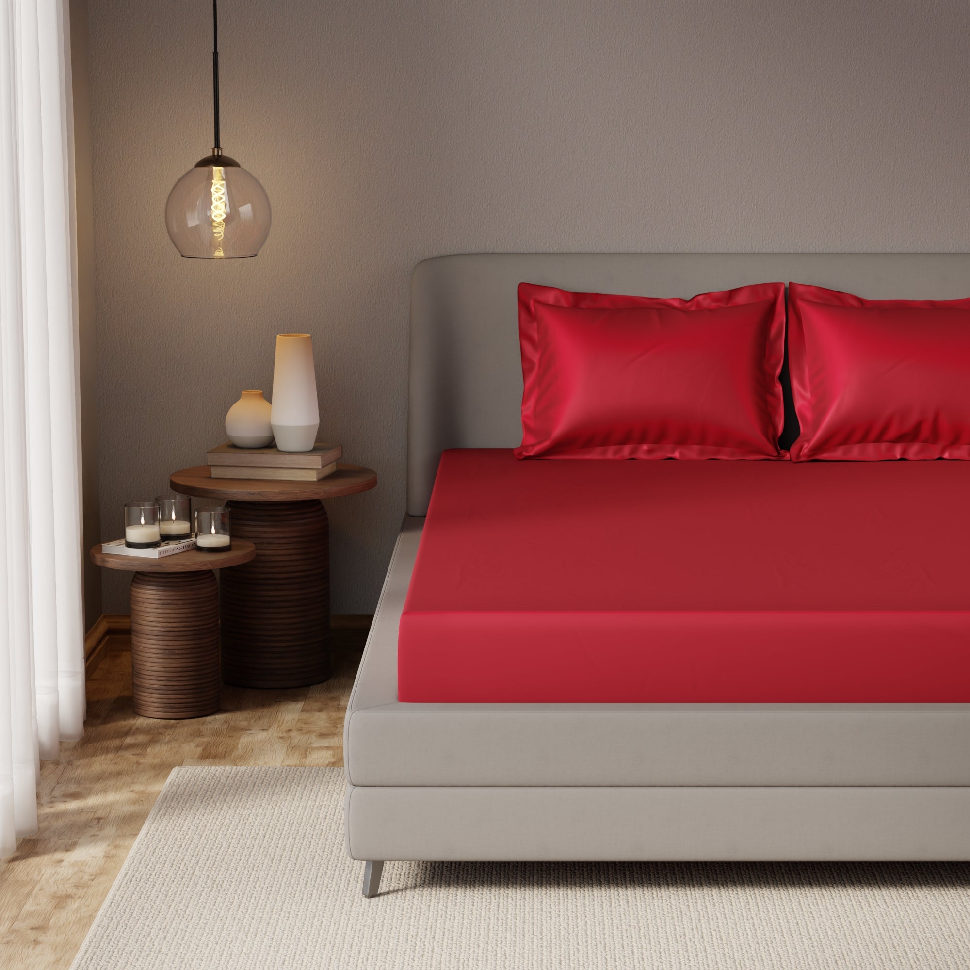 Adorn your room with the crimson hues of Flirty Red, synonymous with love. These silky smooth satin linen bed sets are designed to add a touch of opulence and romance to your intimate moments.