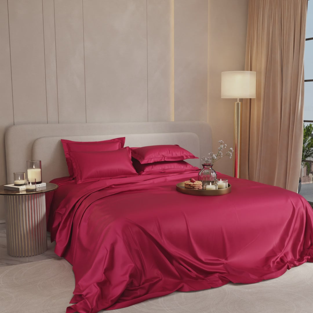 Adorn your room with the crimson hues of Flirty Red, synonymous with love. These silky smooth satin linen bed sets are designed to add a touch of opulence and romance to your intimate moments.