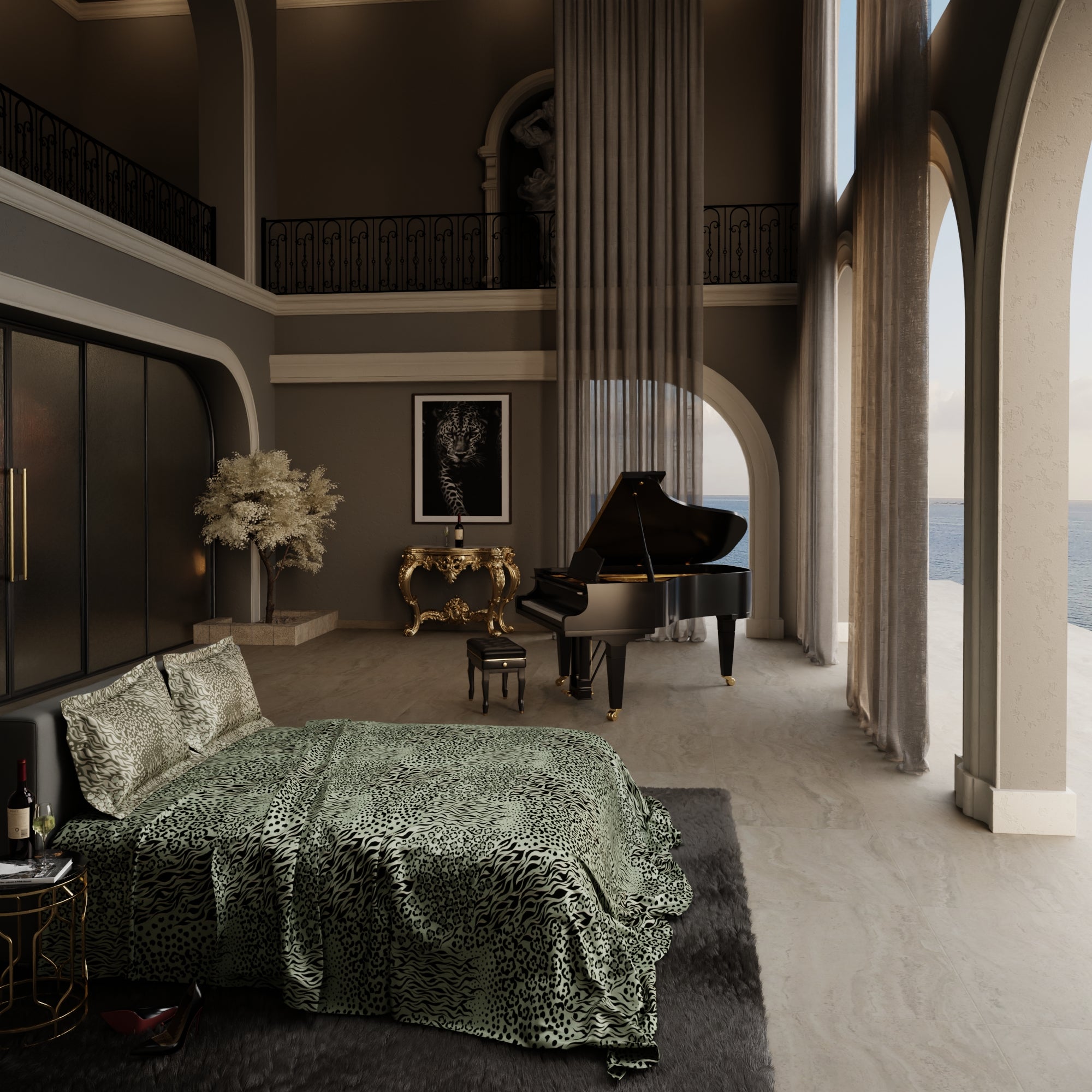 Deep verdant hues and layered leopard prints signal a mastery of the terrain, blending refined textures with an undeniable air of gravity.