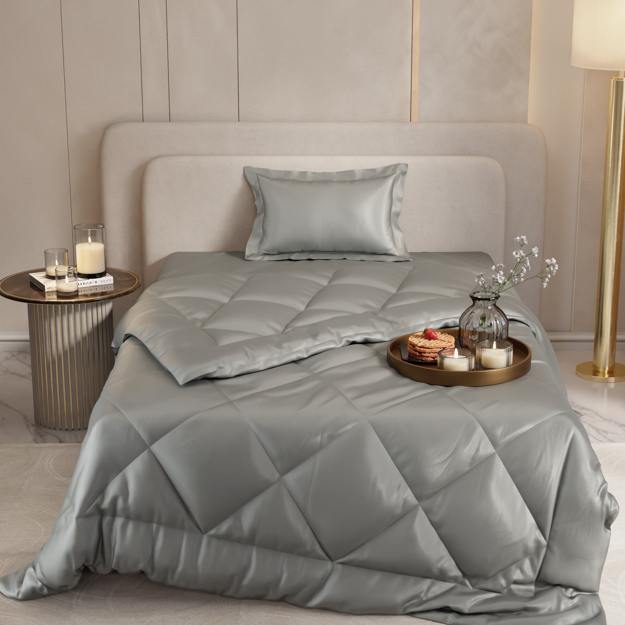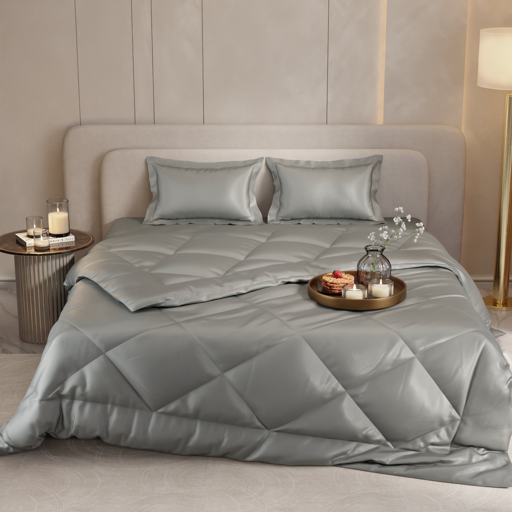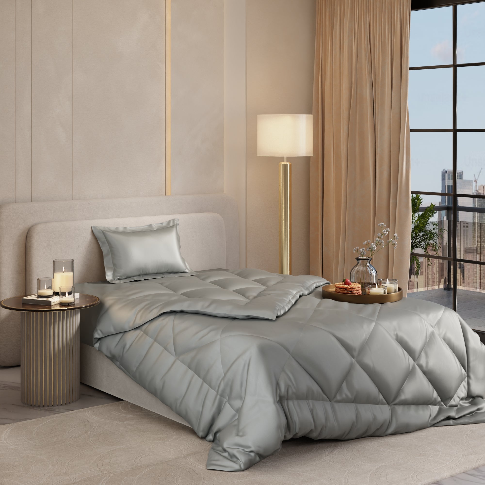 This 100% polyester UltraSatin Comforter can be machine-washed, tumbled dry, or ironed at low temperatures. Do not bleach. Do not dry in direct sunlight. Learn More