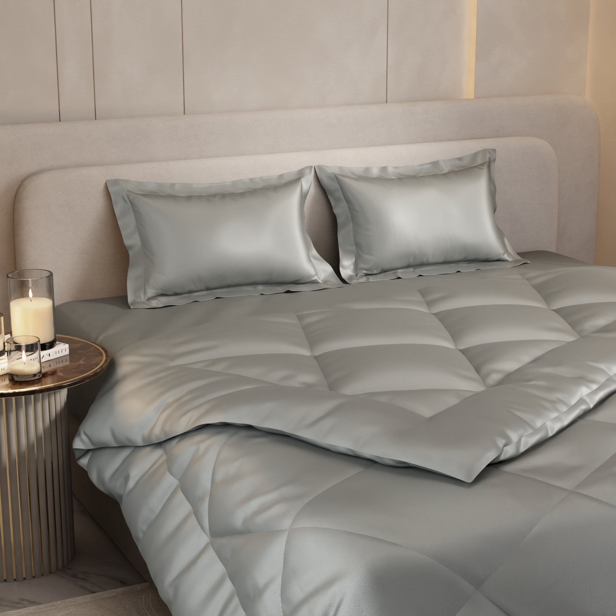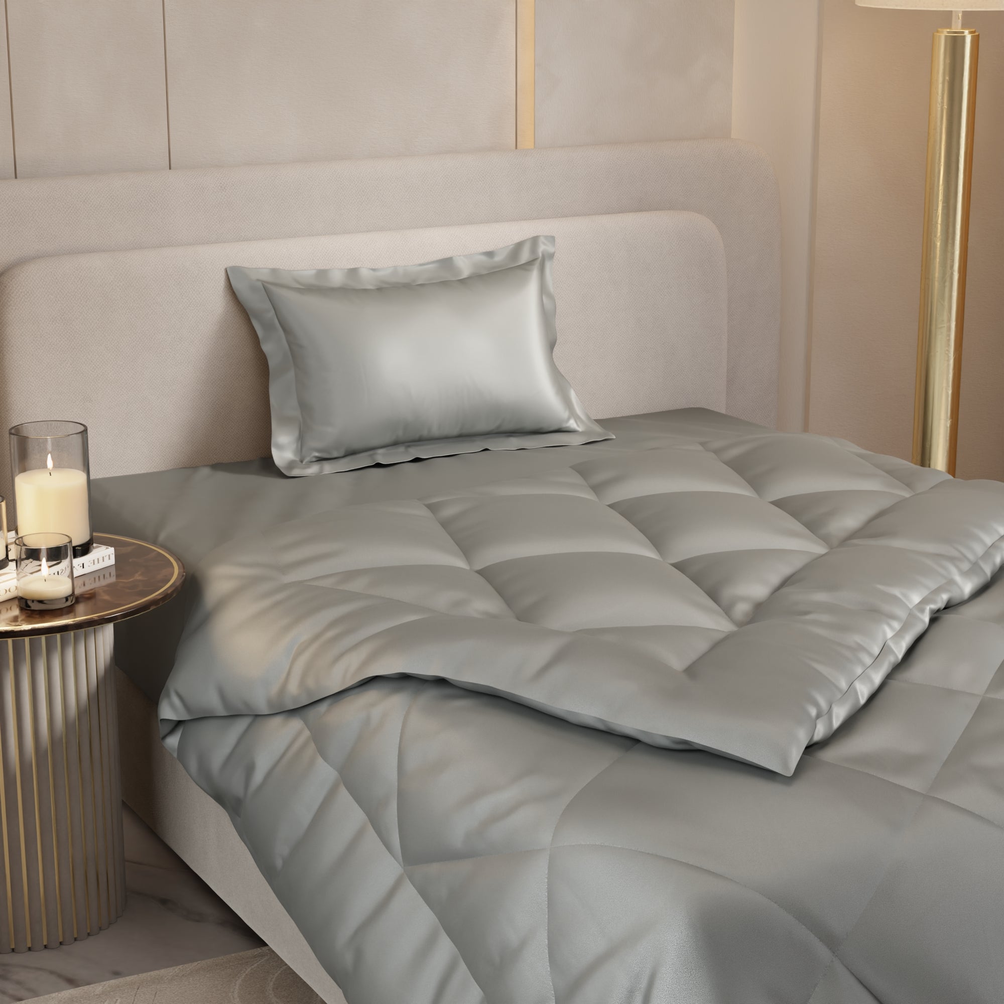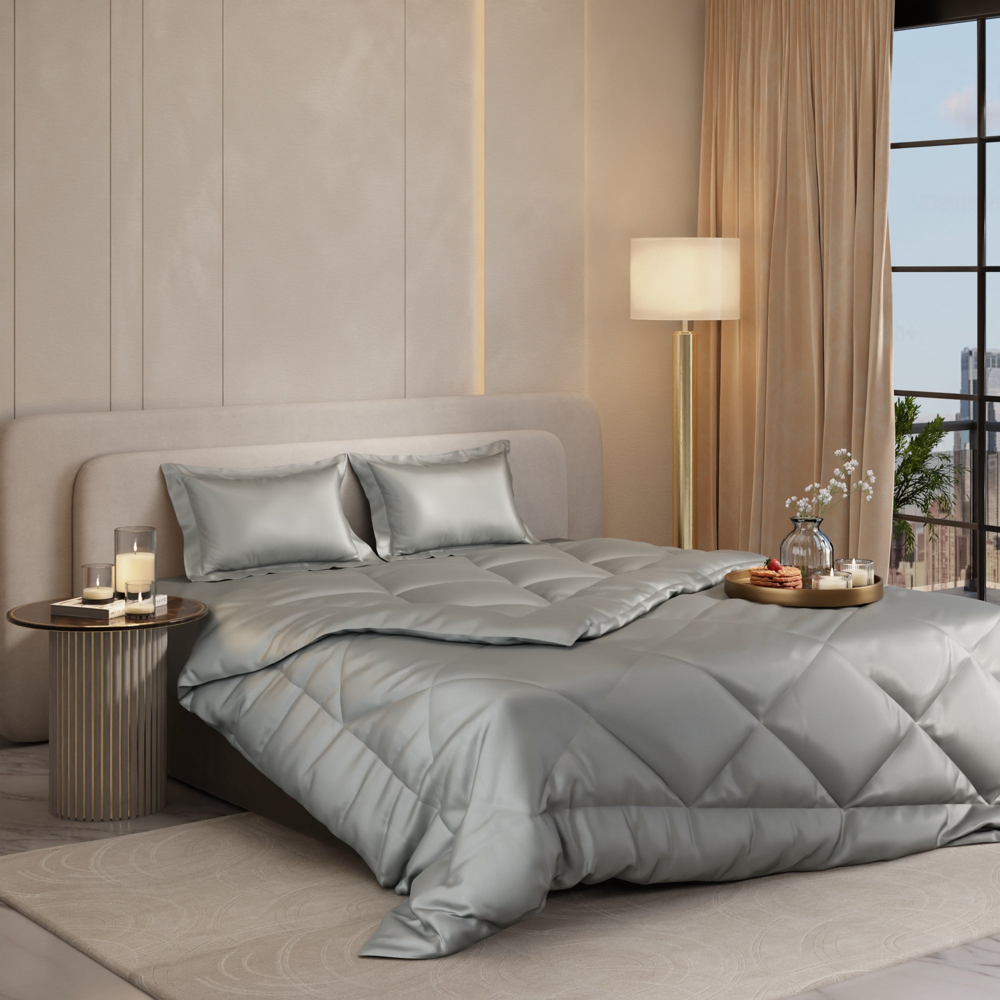 This 100% polyester UltraSatin Comforter can be machine-washed, tumbled dry, or ironed at low temperatures. Do not bleach. Do not dry in direct sunlight. Learn More