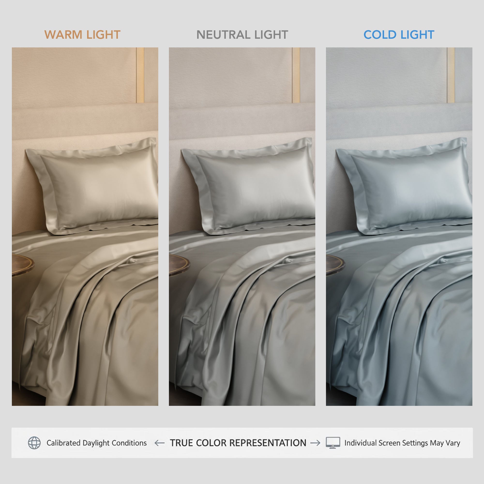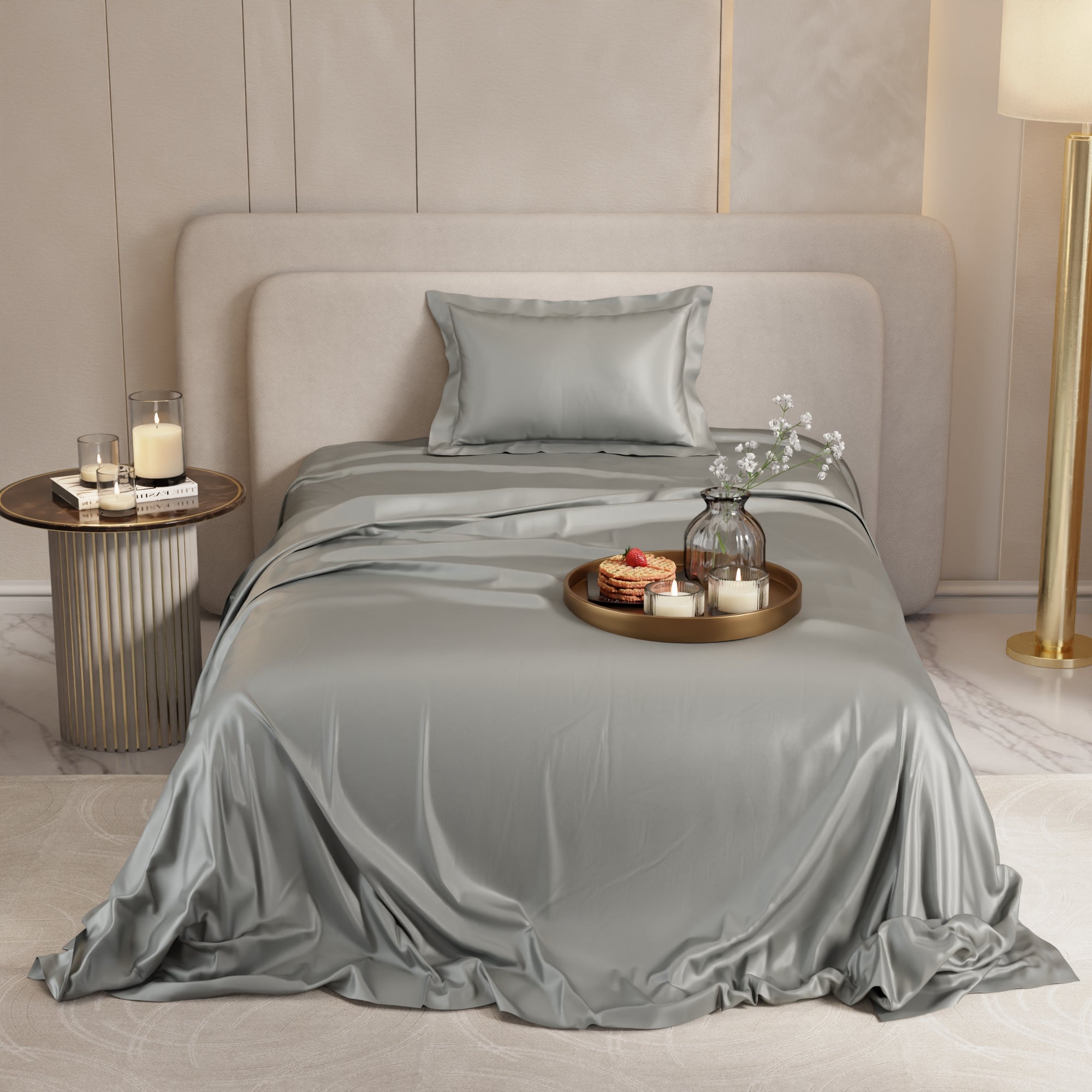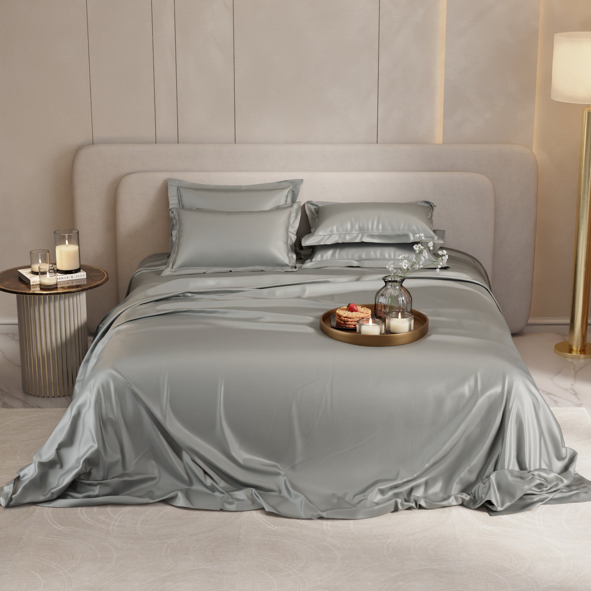 Invoke a soul soothing aura with the deep hue of Harbour Mist Grey. These silk-like satin linen bed sets are designed to add a touch of opulence and romance to your intimate moments.