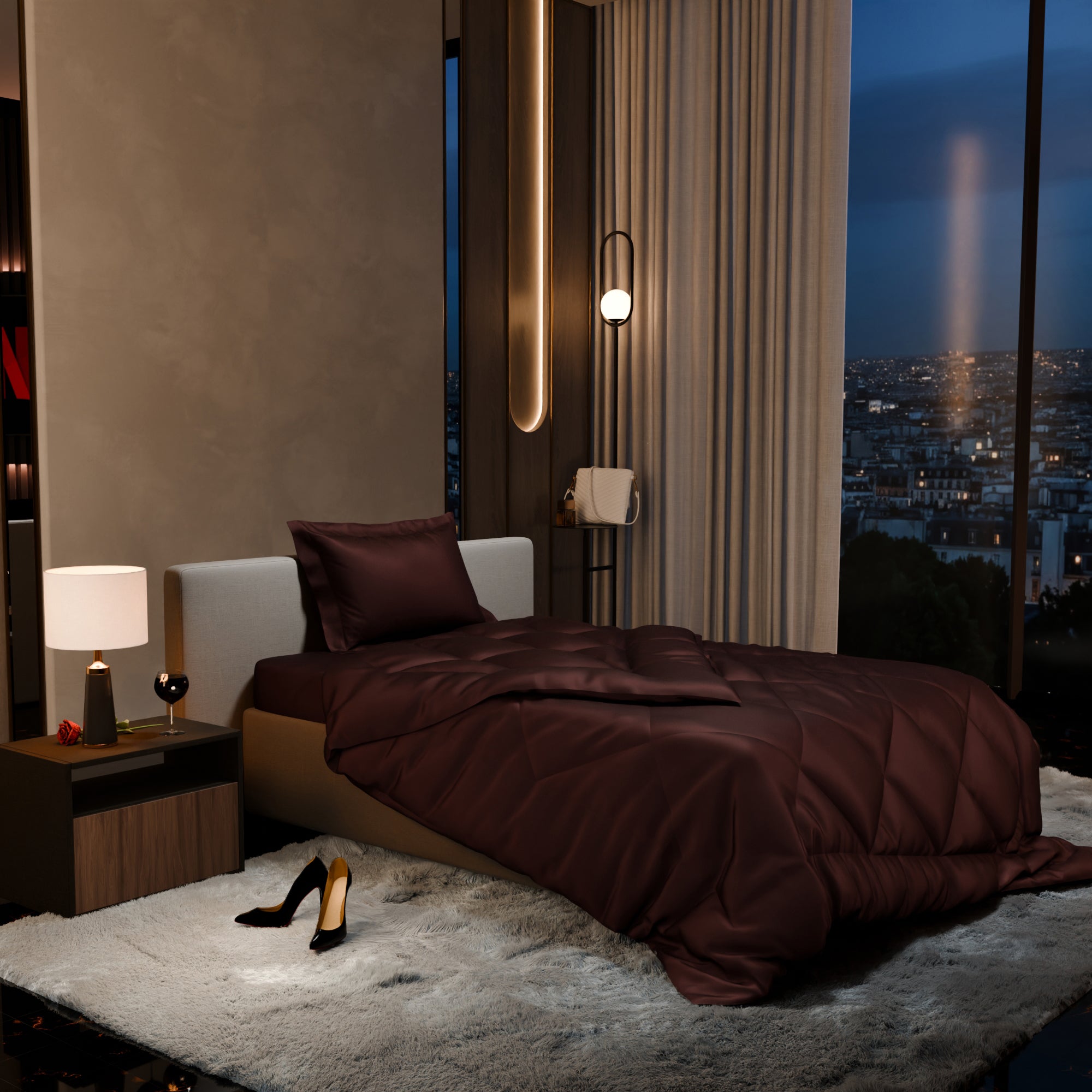 The sateen weave renders a buttery soft texture to the bed sheets, giving it a smooth and feather-light feel.