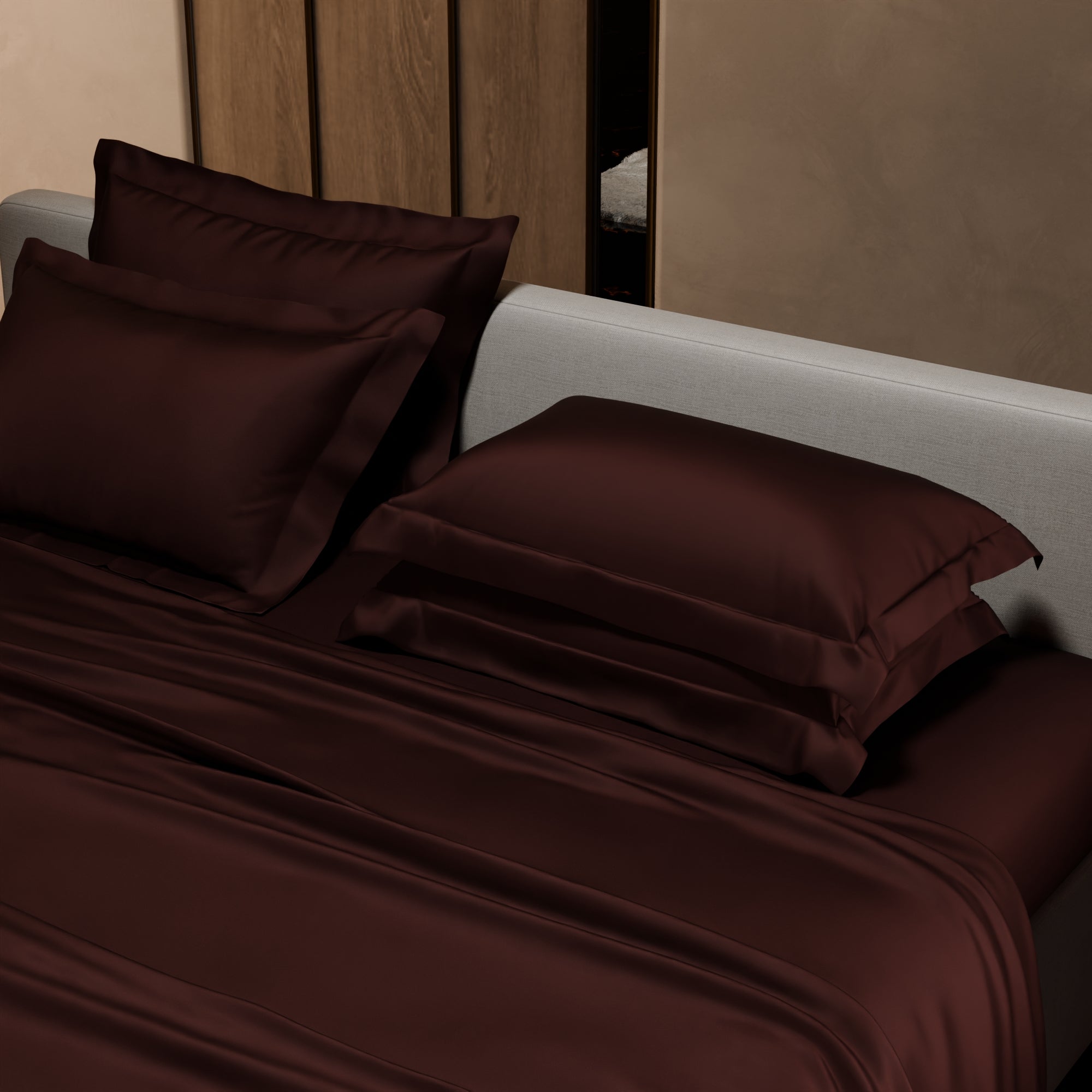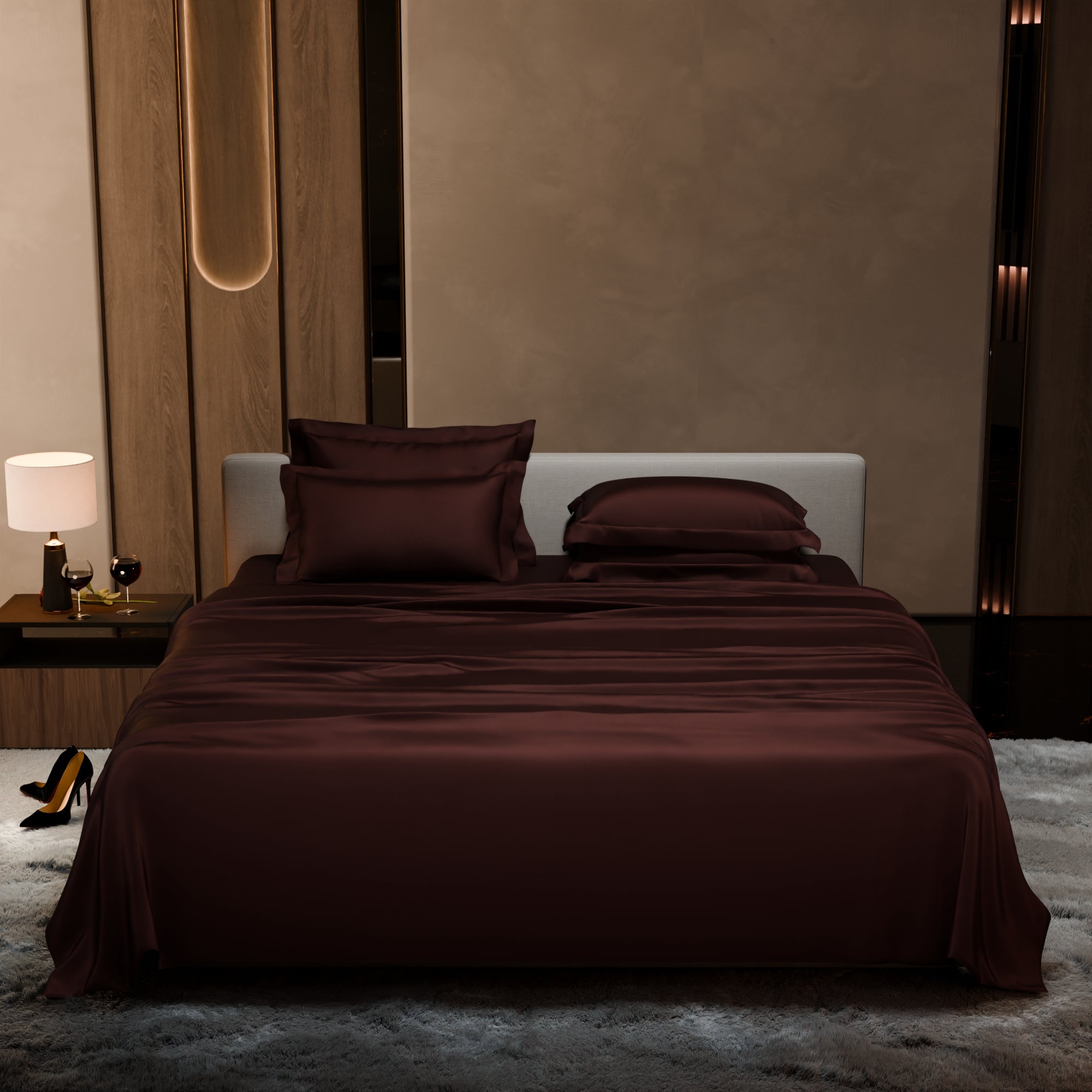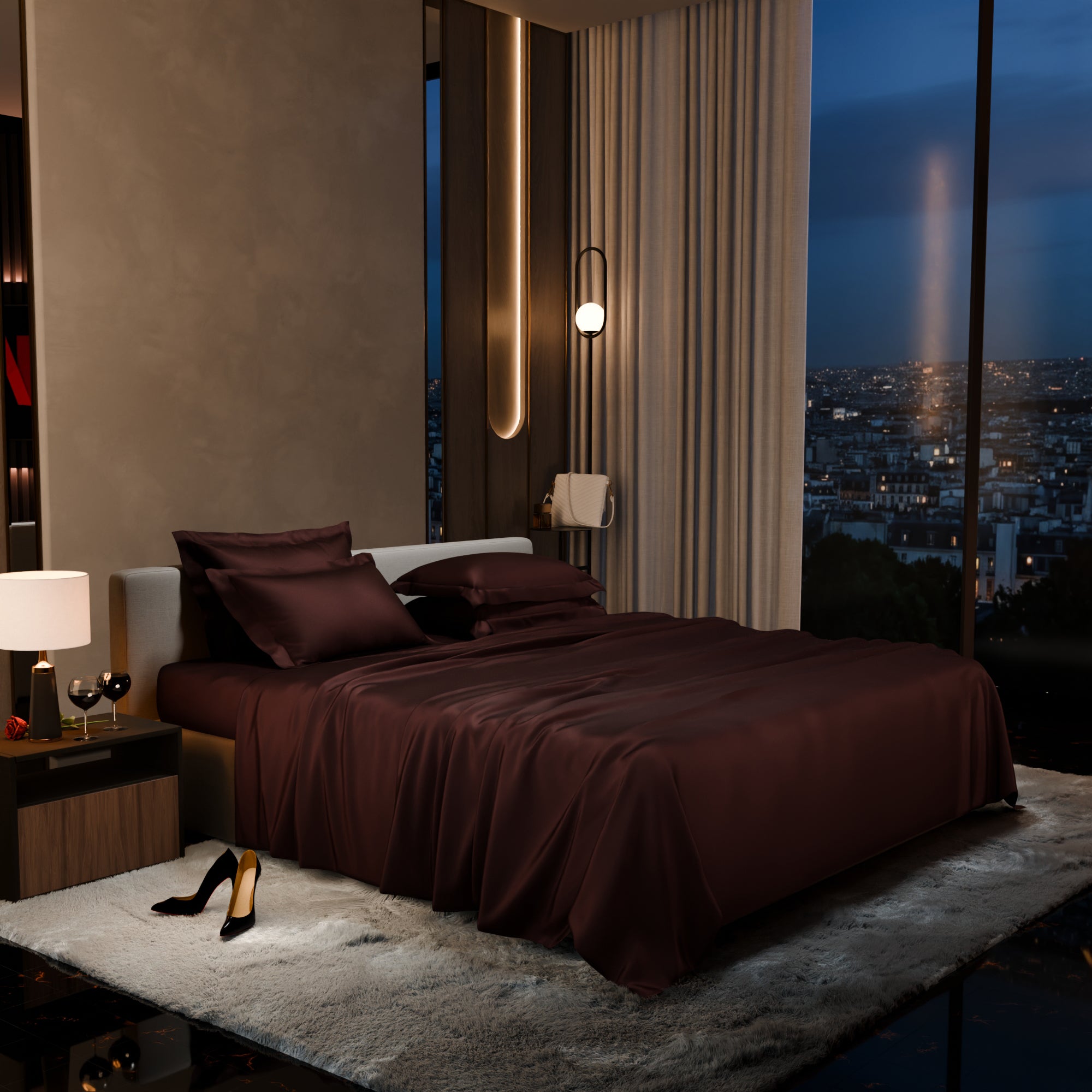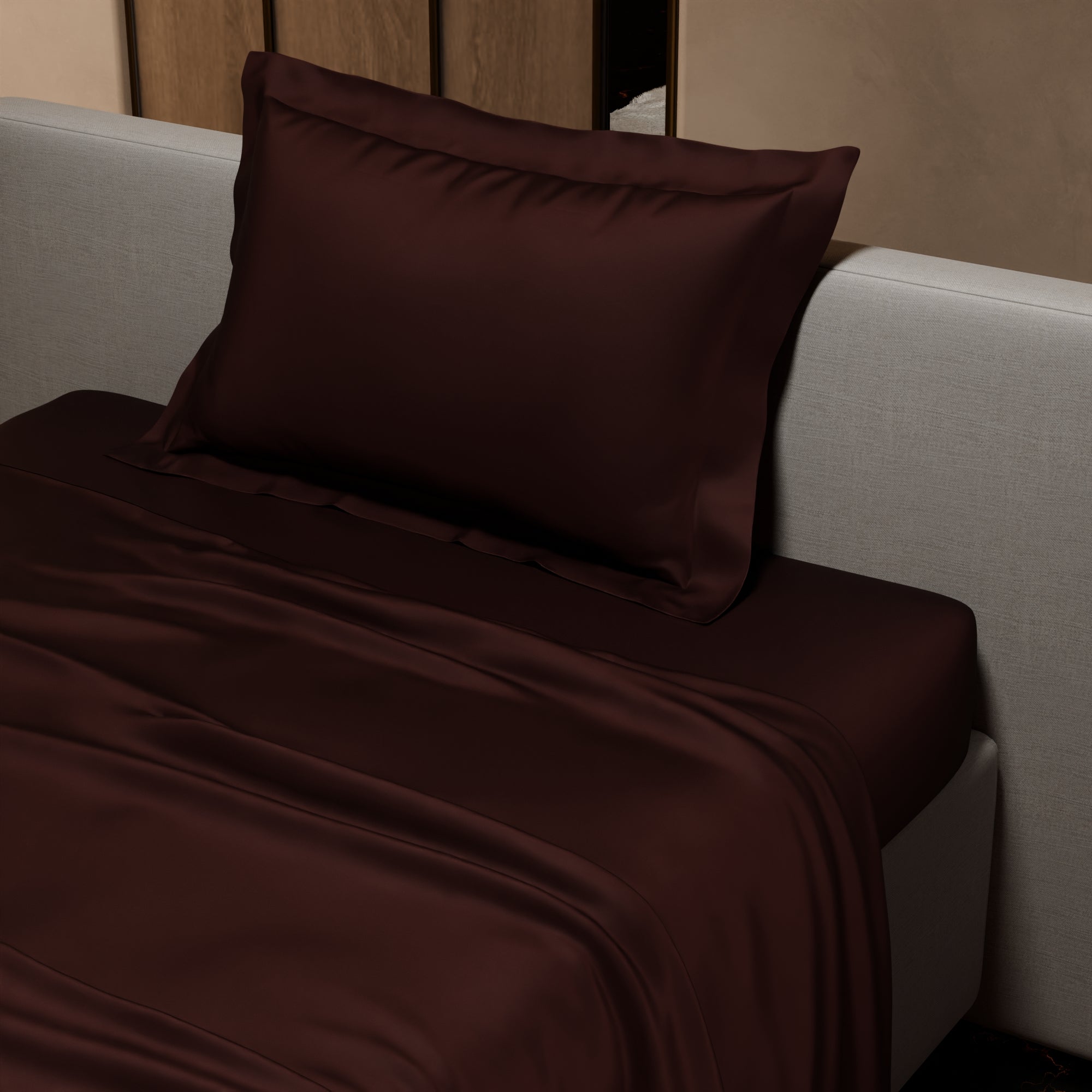Curl up in the warmth and closeness of smooth Hot Chocolate. These silk-like satin linen bed sets are designed to add a touch of opulence and romance to your intimate moments.