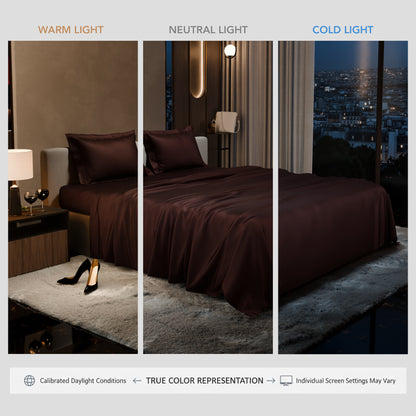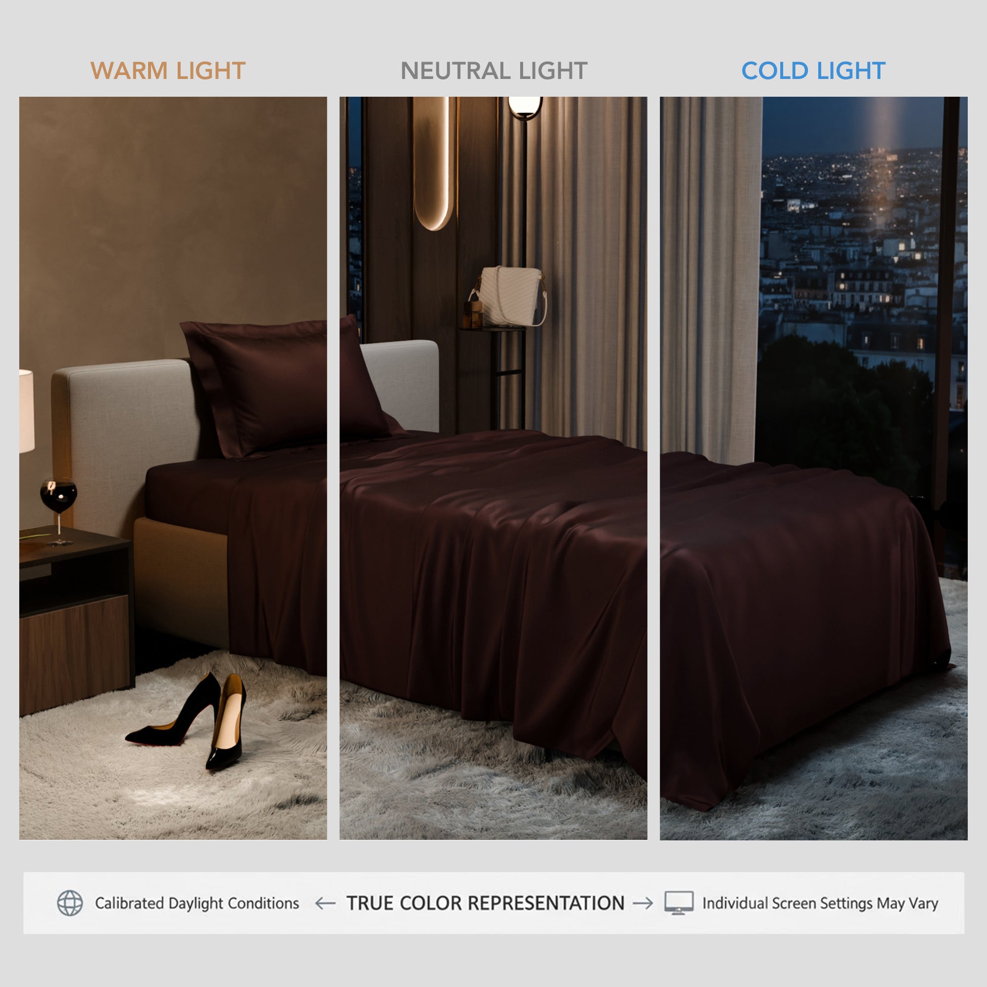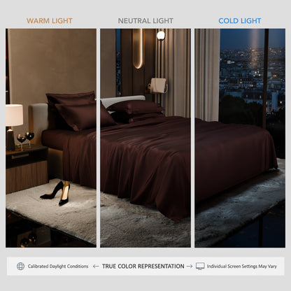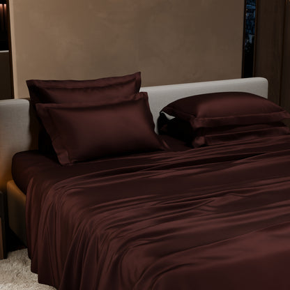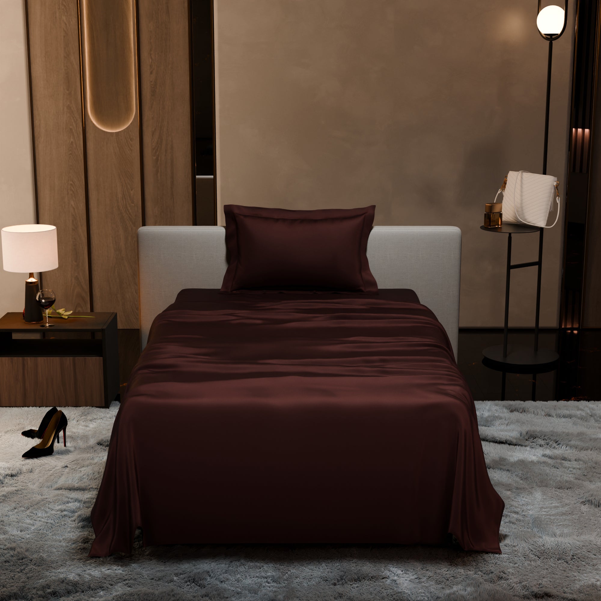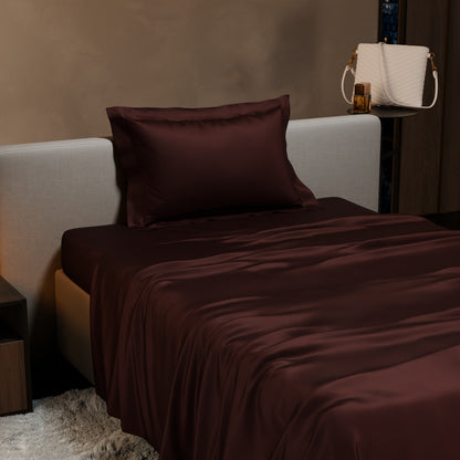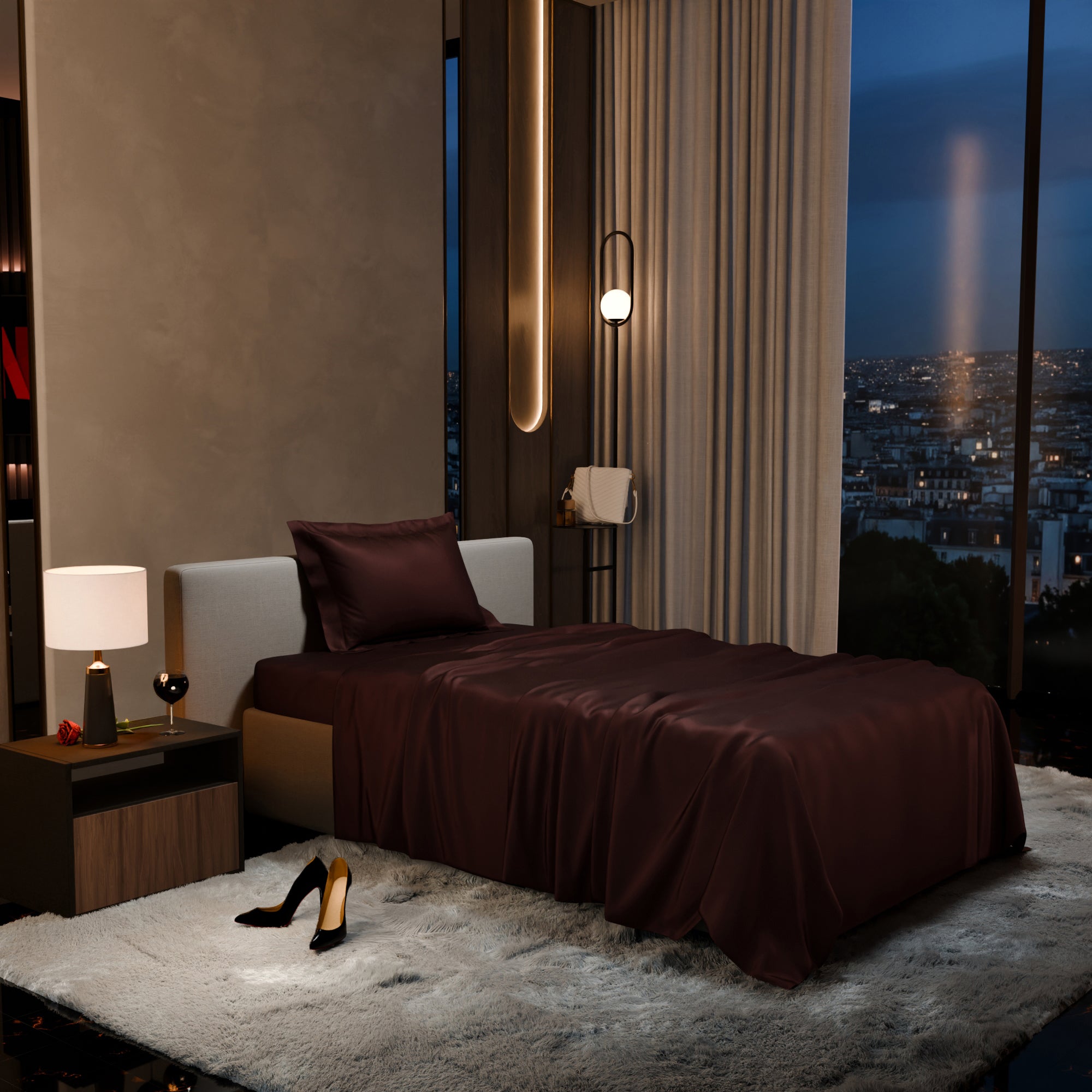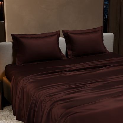 Curl up in the warmth and closeness of smooth Hot Chocolate. These silk-like satin linen bed sets are designed to add a touch of opulence and romance to your intimate moments.