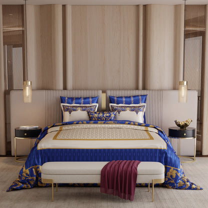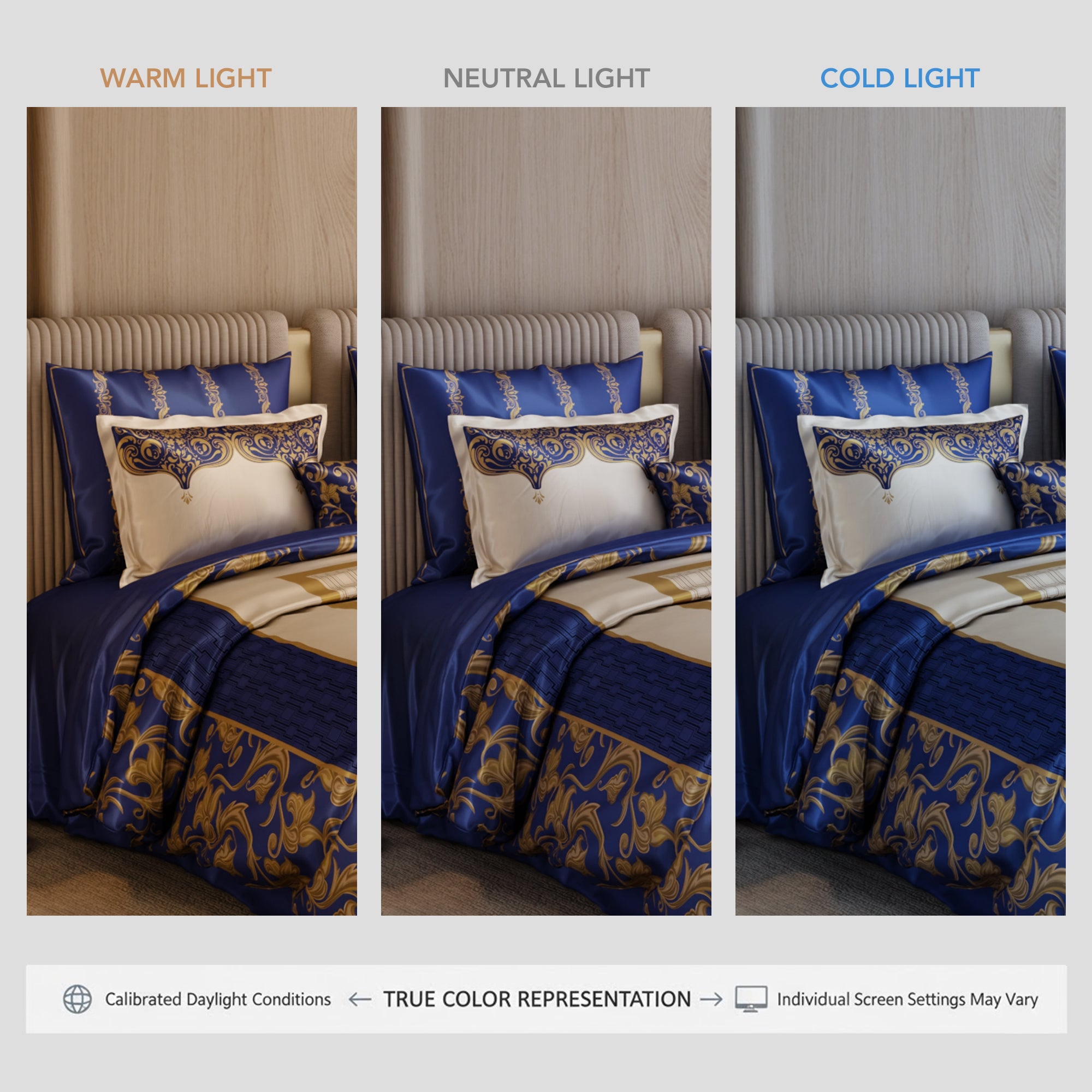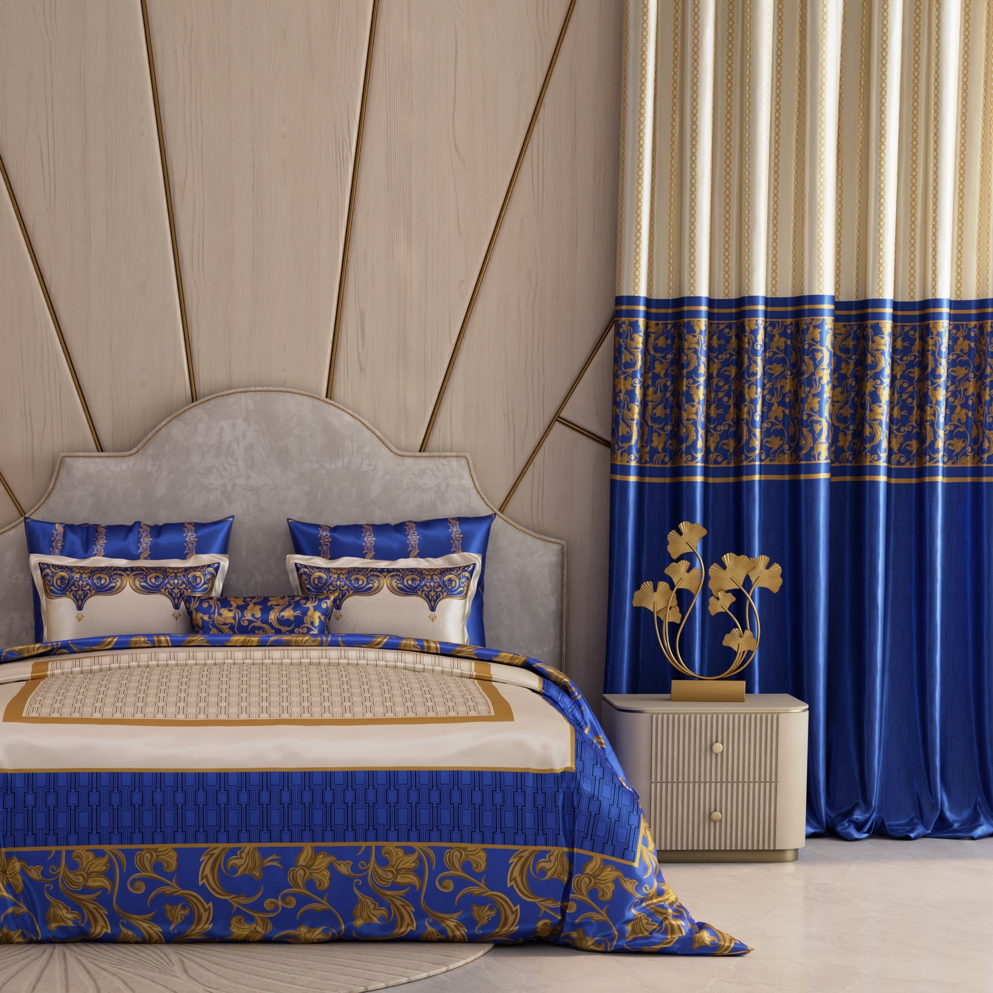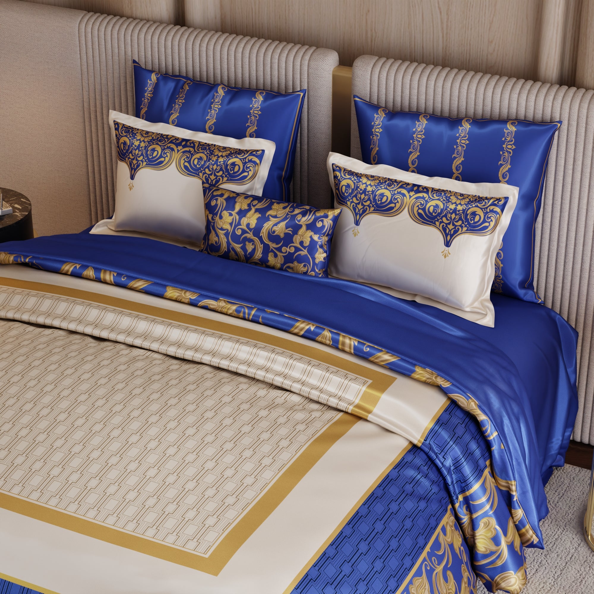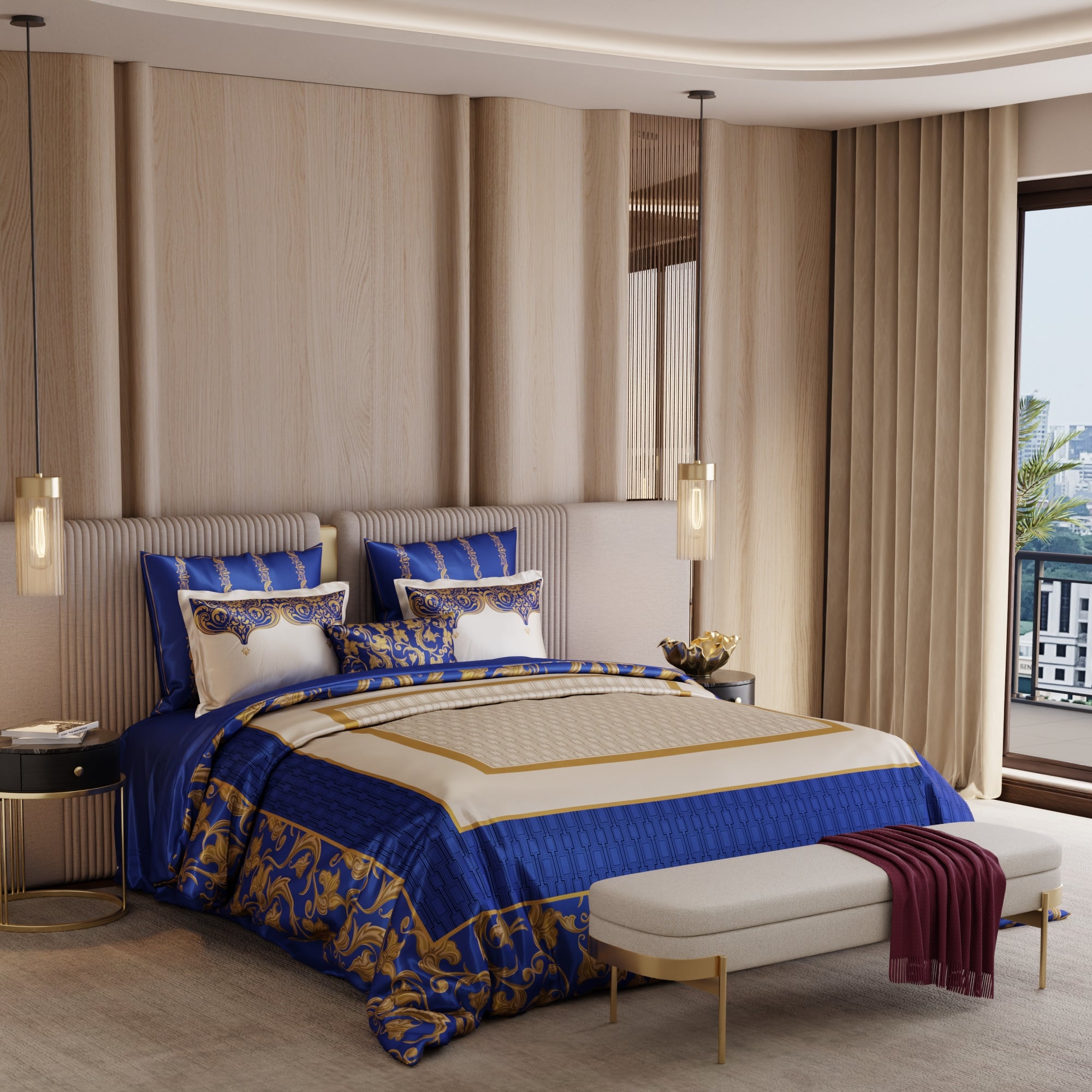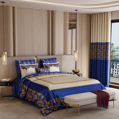 Every celebration begins with a space that feels ready. And this one doesn’t just feel ready, it feels composed. The deep blue base lends the room gravity, the gold detailing offers ornament, and the ivory softens it all into elegance. With its layered detailing and full-room design, the Indigo Legacy ensemble creates not just an aesthetic but an atmosphere. One of reverence, warmth, and unforgettable evenings.