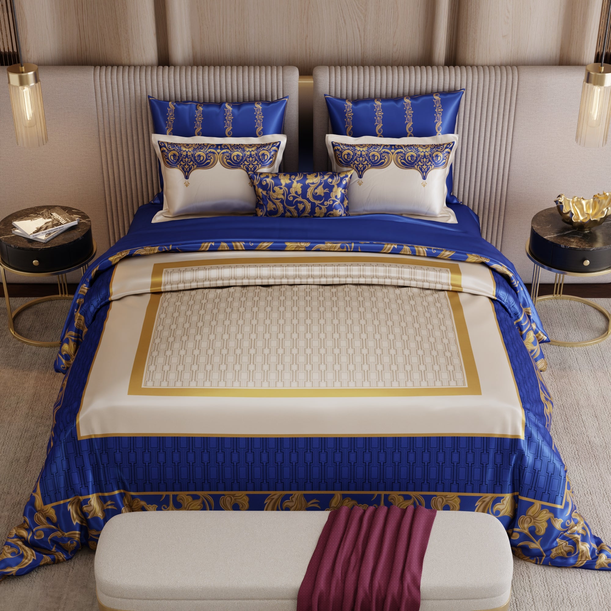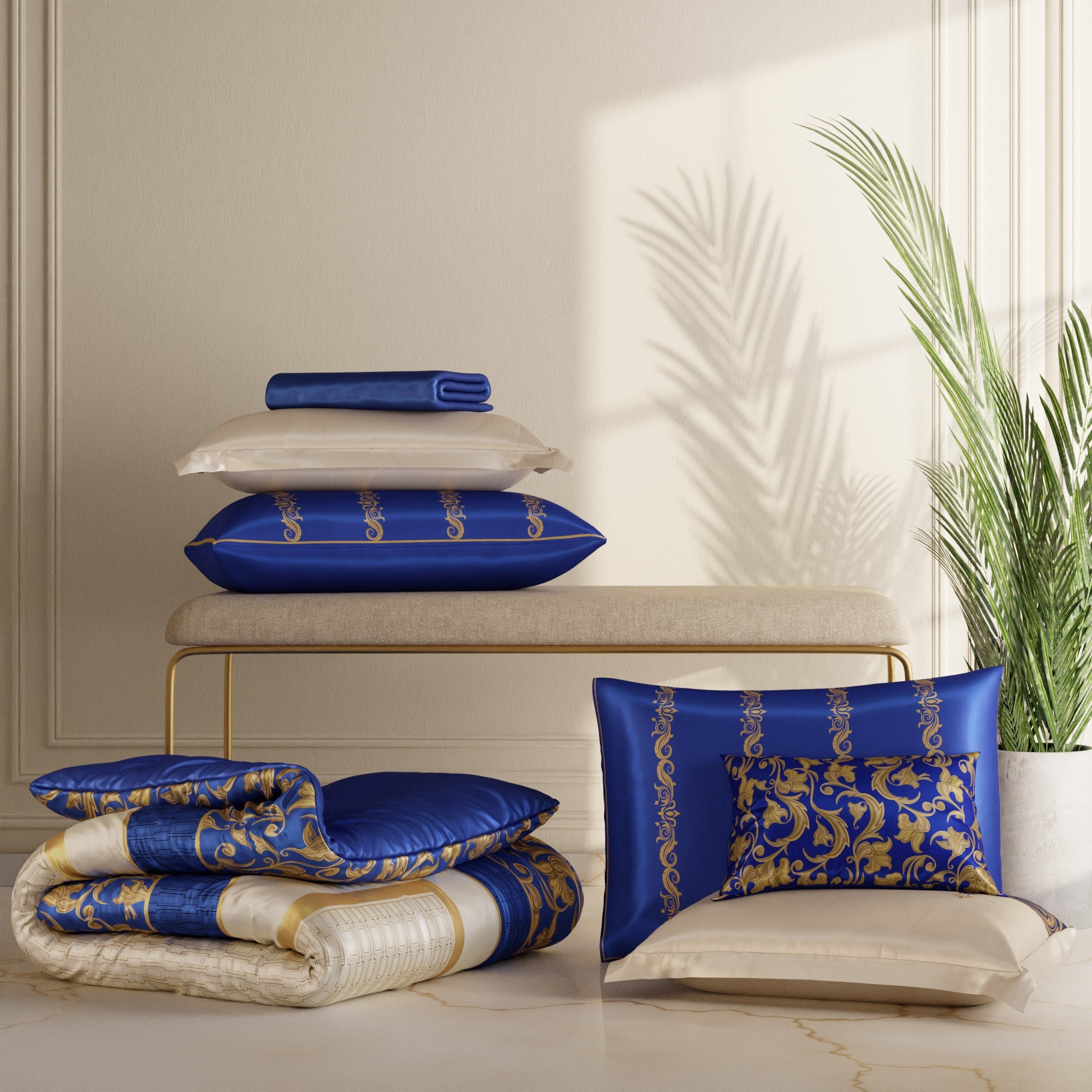 - Super King 7 Piece Bed In A Bag Set includes: 1 Bedsheet (108" x 108") + 1 Comforter (108" x 108") + 2 Pillow Covers (18" x 27")+ 2 Euro Shams (25" x 25")+1 Long Cushion (11" x 19")