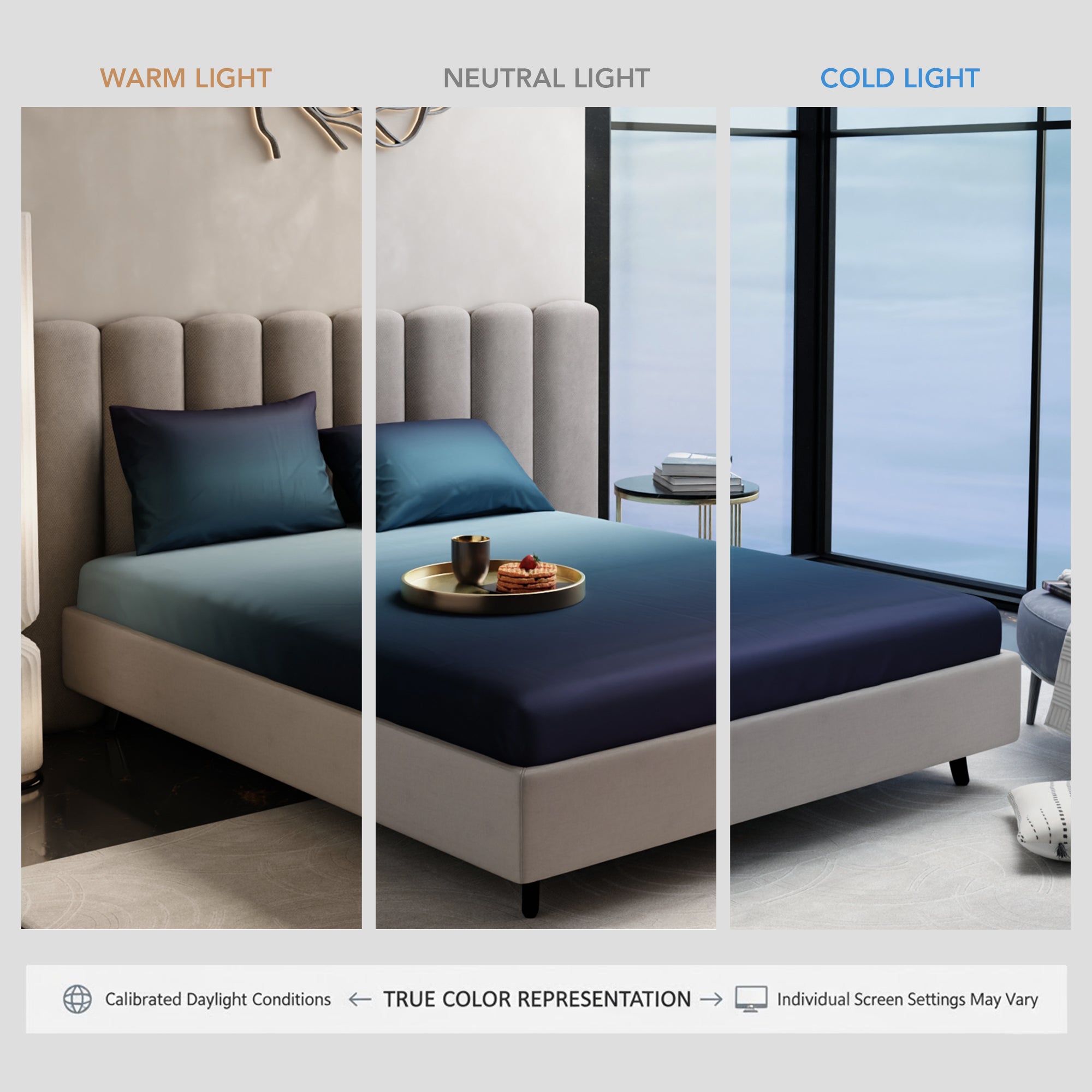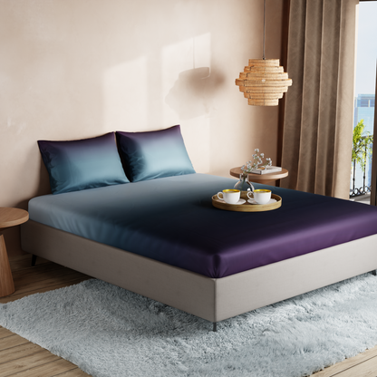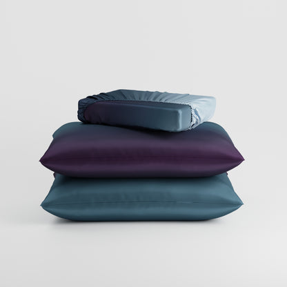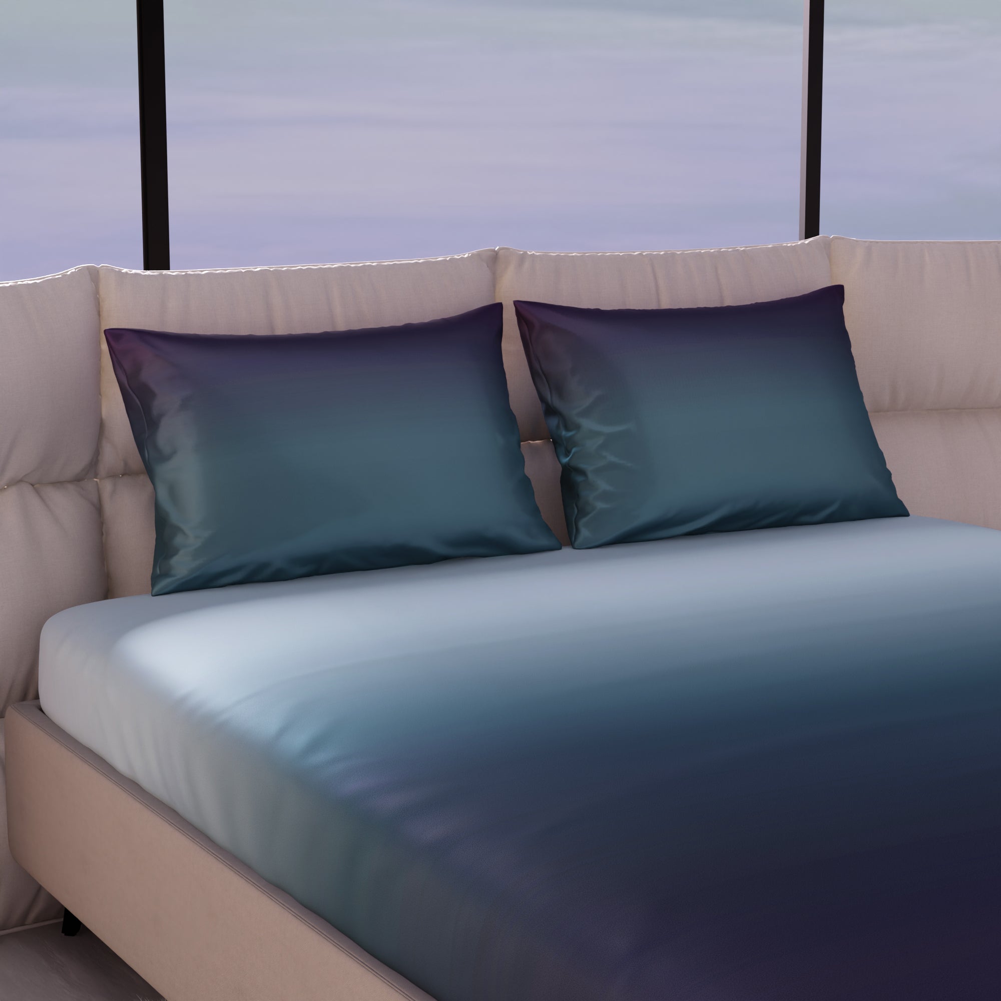There’s a reason why lovers get lost in the twilight hours. The world slows down, the air feels softer, and everything is bathed in a moody, mysterious glow. Lover’s Dusk bedsheet set lets you bring that quiet enchantment home. With its ombré blend of deep ocean blues and dusky teal, this bedding set creates an atmosphere of pure allure. Slip into the silk-like embrace of UltraSatin and let your nights feel infinite.