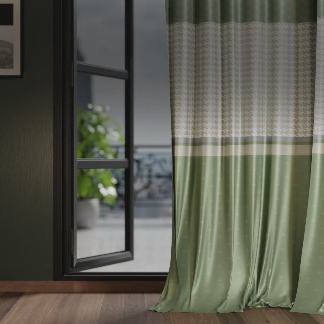 Adorn your windows with the Majestic Meadow dim-out satin curtain, imbued with the grace and poise of the lush avenues of Versailles, for a serene and noble ambience.