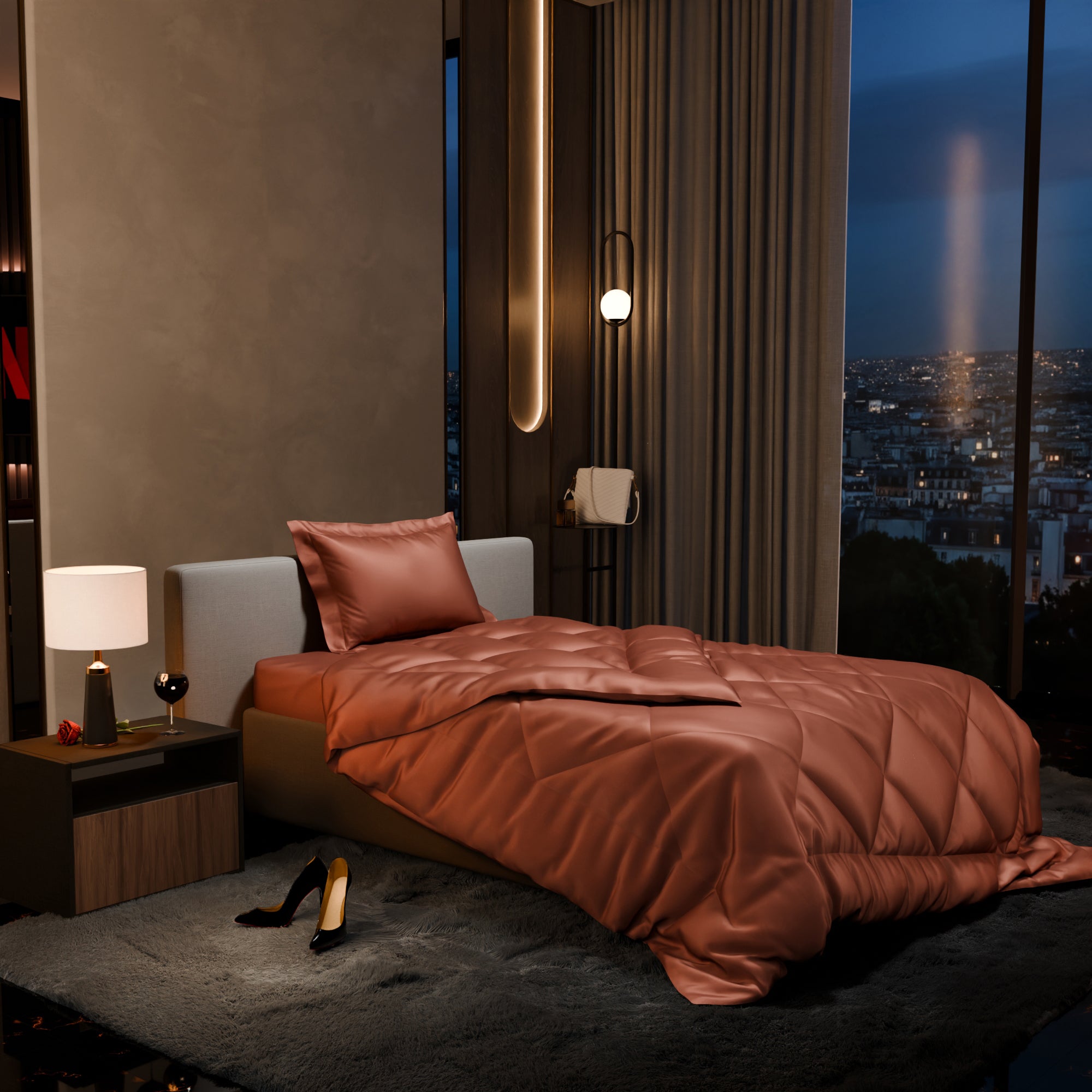 The sateen weave renders a buttery soft texture to the bed sheets, giving it a smooth and feather-light feel.