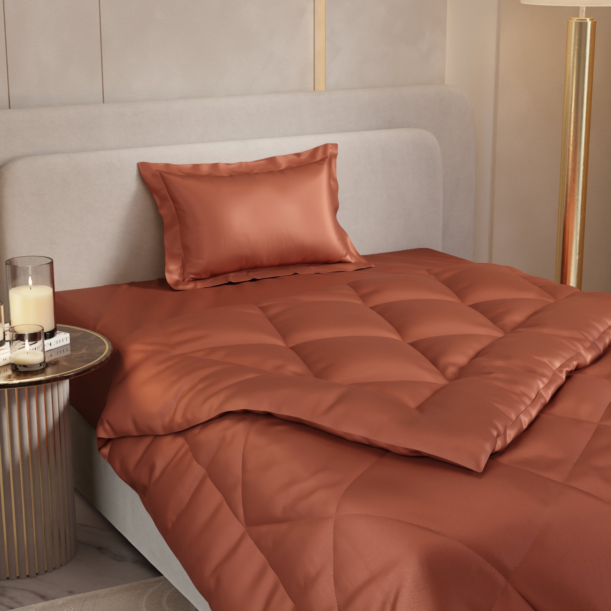 Crafted with premium materials, this Comforter offers the perfect balance of warmth and style for your bedroom. Whether you want a cosy and stylish bedding addition or reliable warmth, it effortlessly blends comfort and sophistication for a restful night’s sleep.