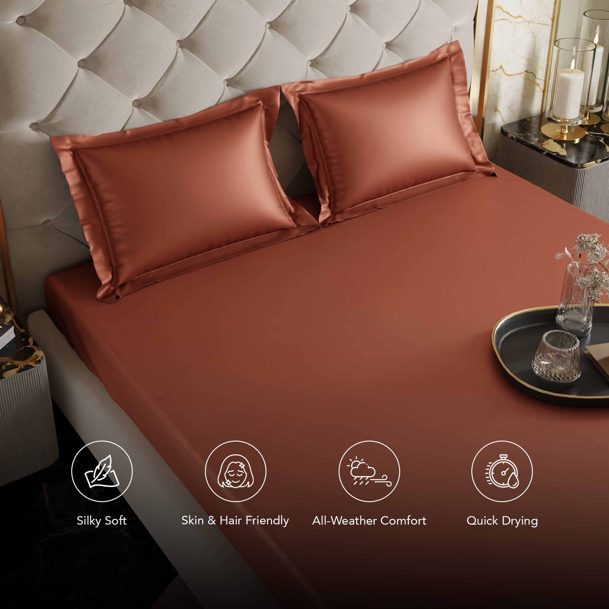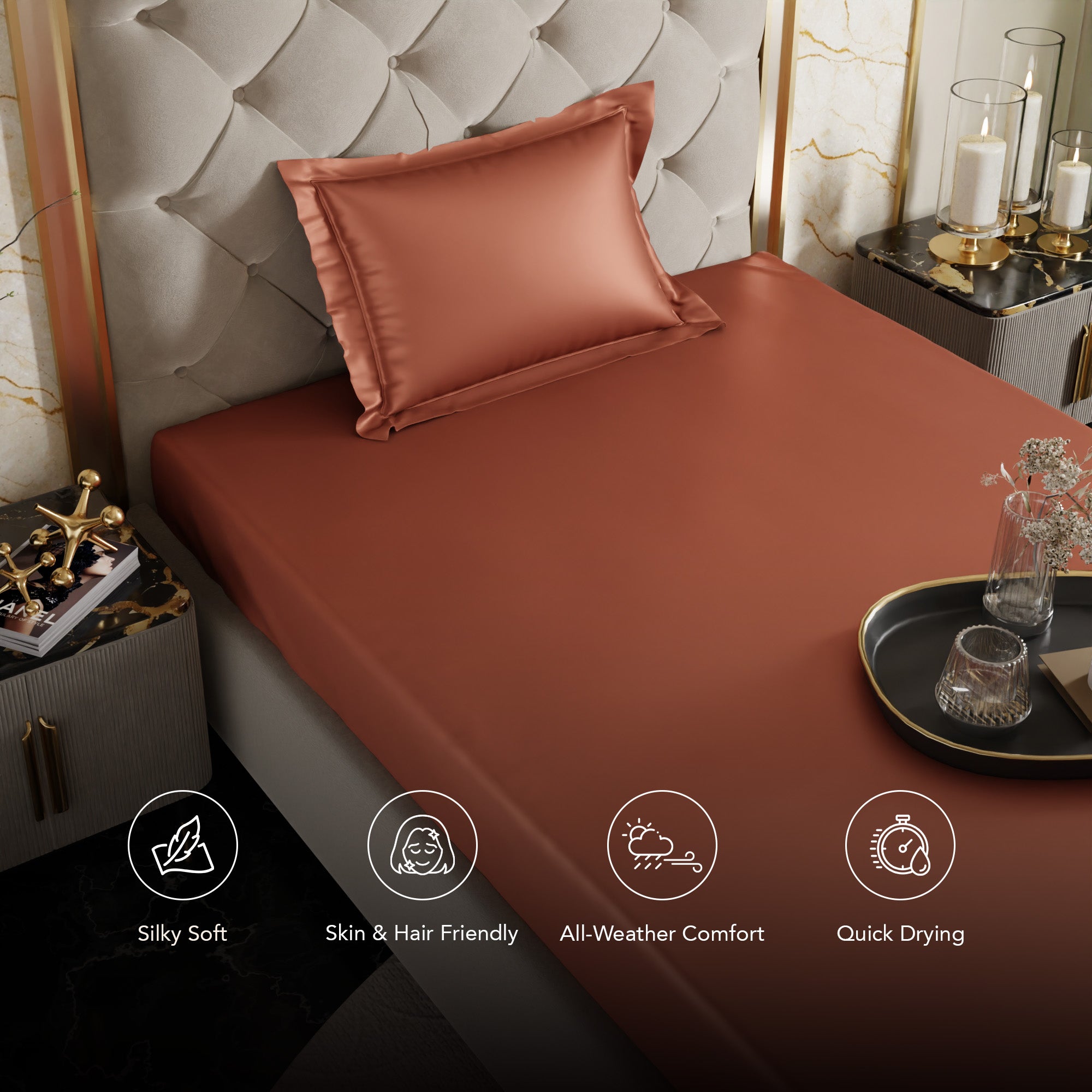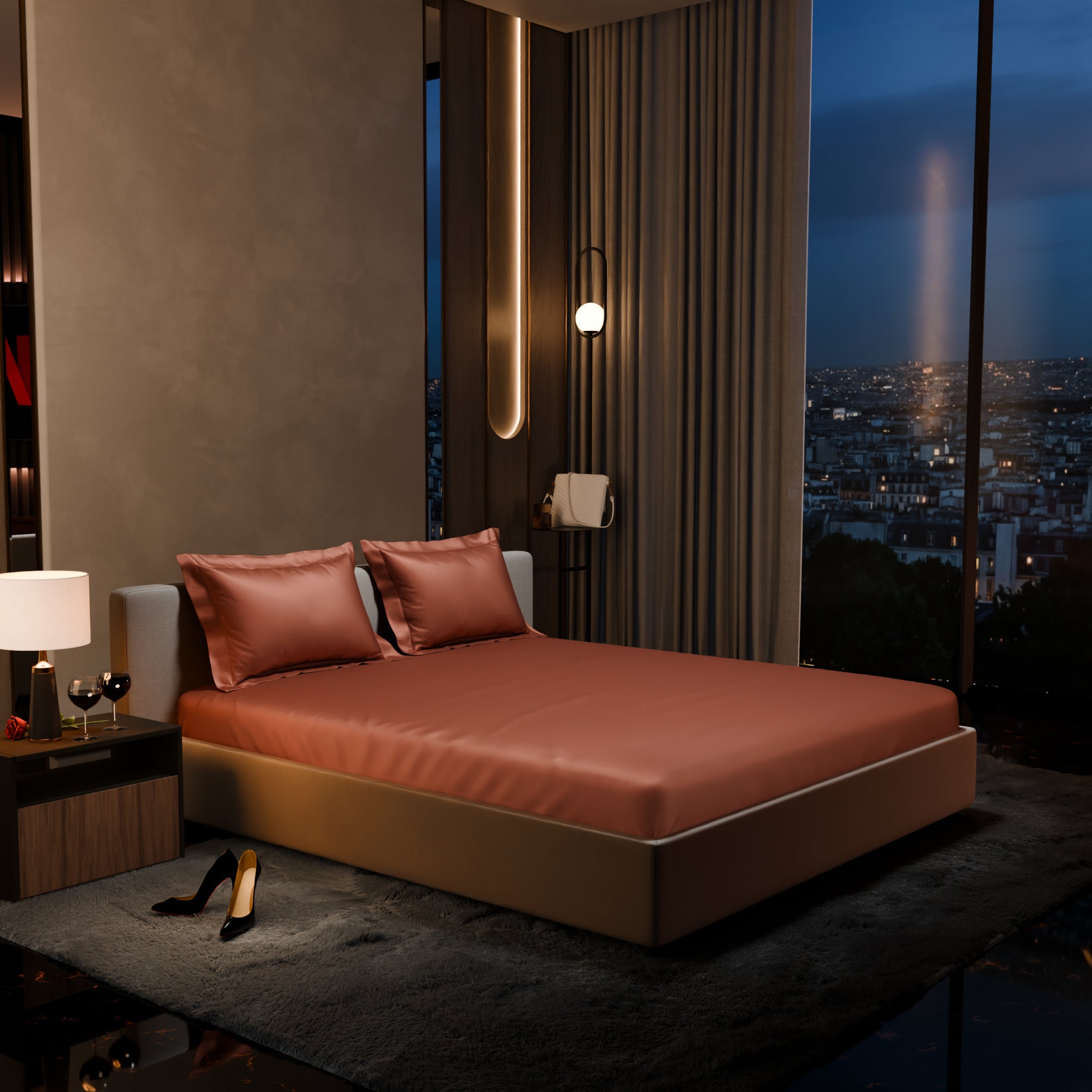 Savour the sweet moments of love with Melted Caramel. These silk-like satin linen bed sets are designed to add a touch of opulence and romance to your intimate moments.