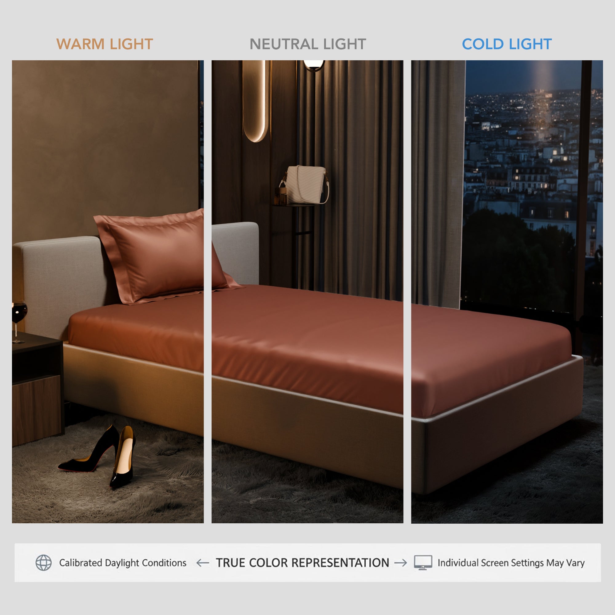 The sateen weave renders a buttery soft texture to the bed sheets, giving it a smooth and feather-light feel.