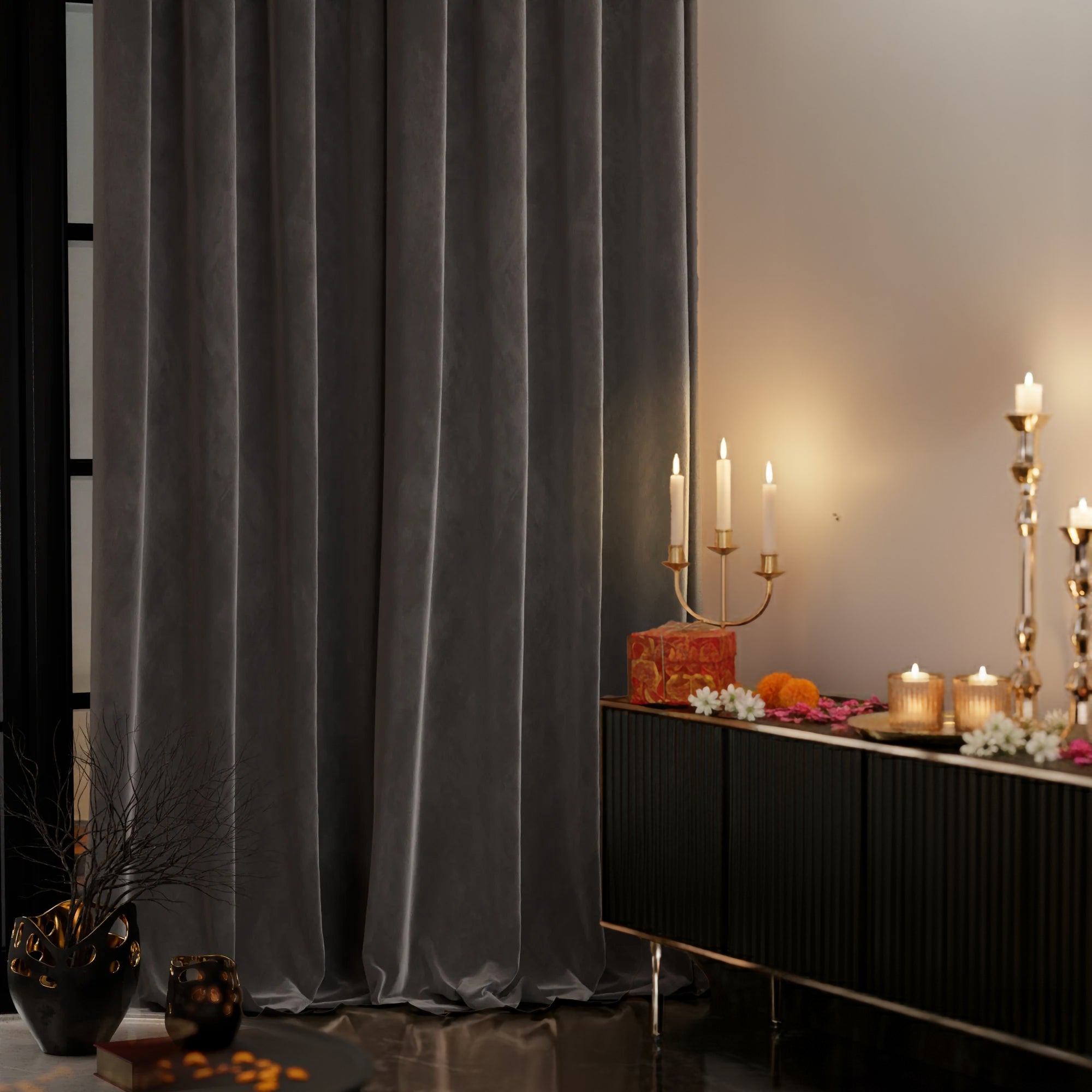 The Midnight Muse room darkening curtain envelops your room in the sultry shades of night. Their twilight grey velvet is as spellbinding as Paris after dark, setting the stage for an evening of sensuous allure.