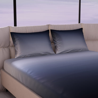 There’s a reason why love stories always seem more magical under the moonlight. Moonlit Embrace bedsheet set is inspired by those intimate, stolen moments—where shadows dance, silver light glows, and time slows to a whisper. With a luxe gradient that transitions from soft grey to inky black, this ultrasatin bedding set brings mystery, elegance, and a touch of indulgence to your space.