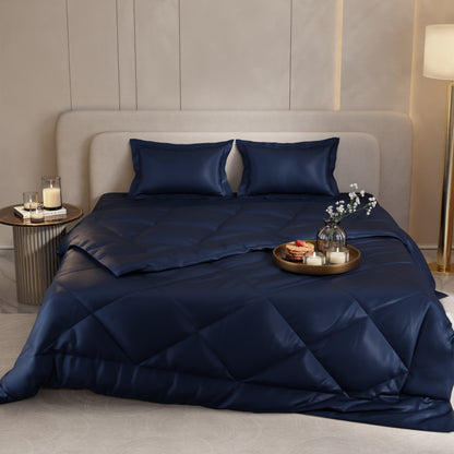 This 100% polyester UltraSatin Comforter can be machine-washed, tumbled dry, or ironed at low temperatures. Do not bleach. Do not dry in direct sunlight. Learn More