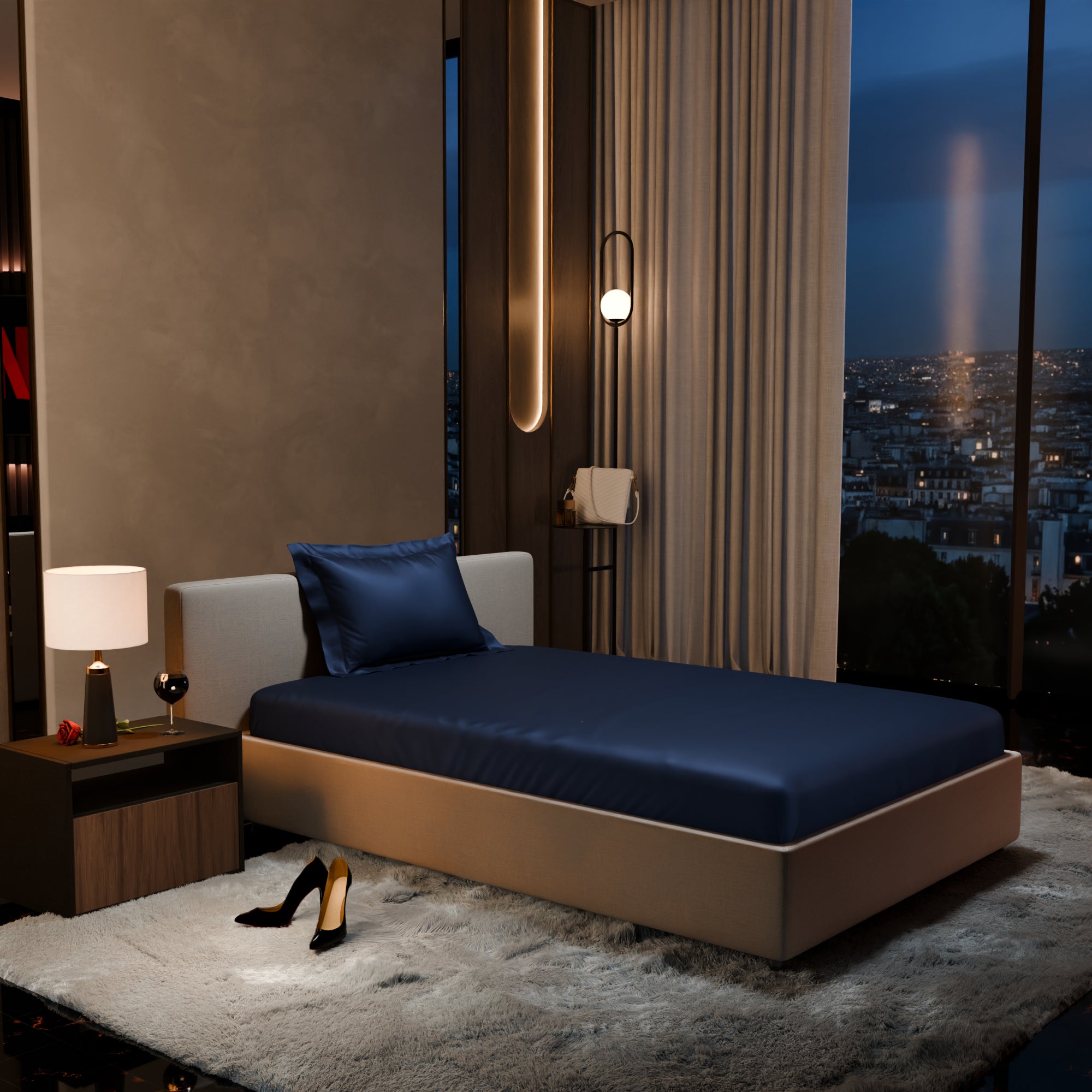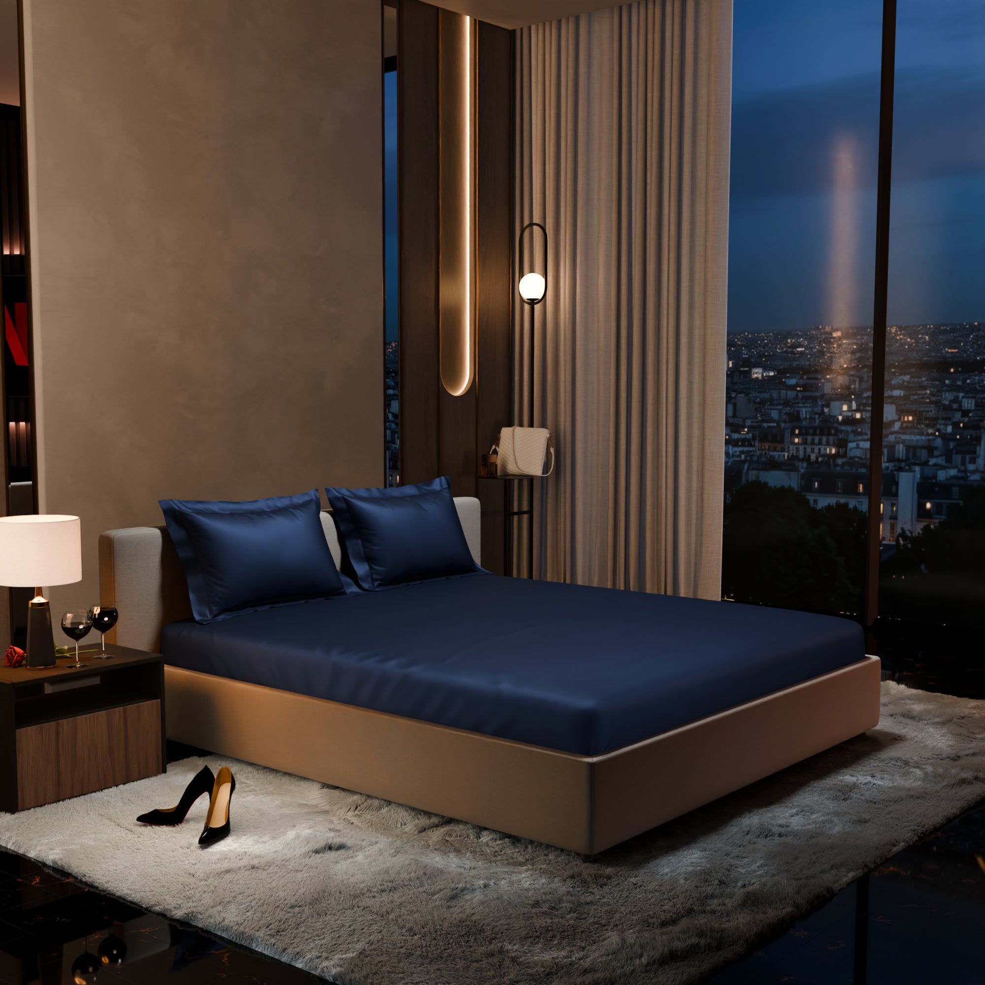 Recreate the charm of a moonlight midnight sky, with Mystique Blue. These silky smooth satin linen bed sets are designed to add a touch of opulence and romance to your intimate moments.