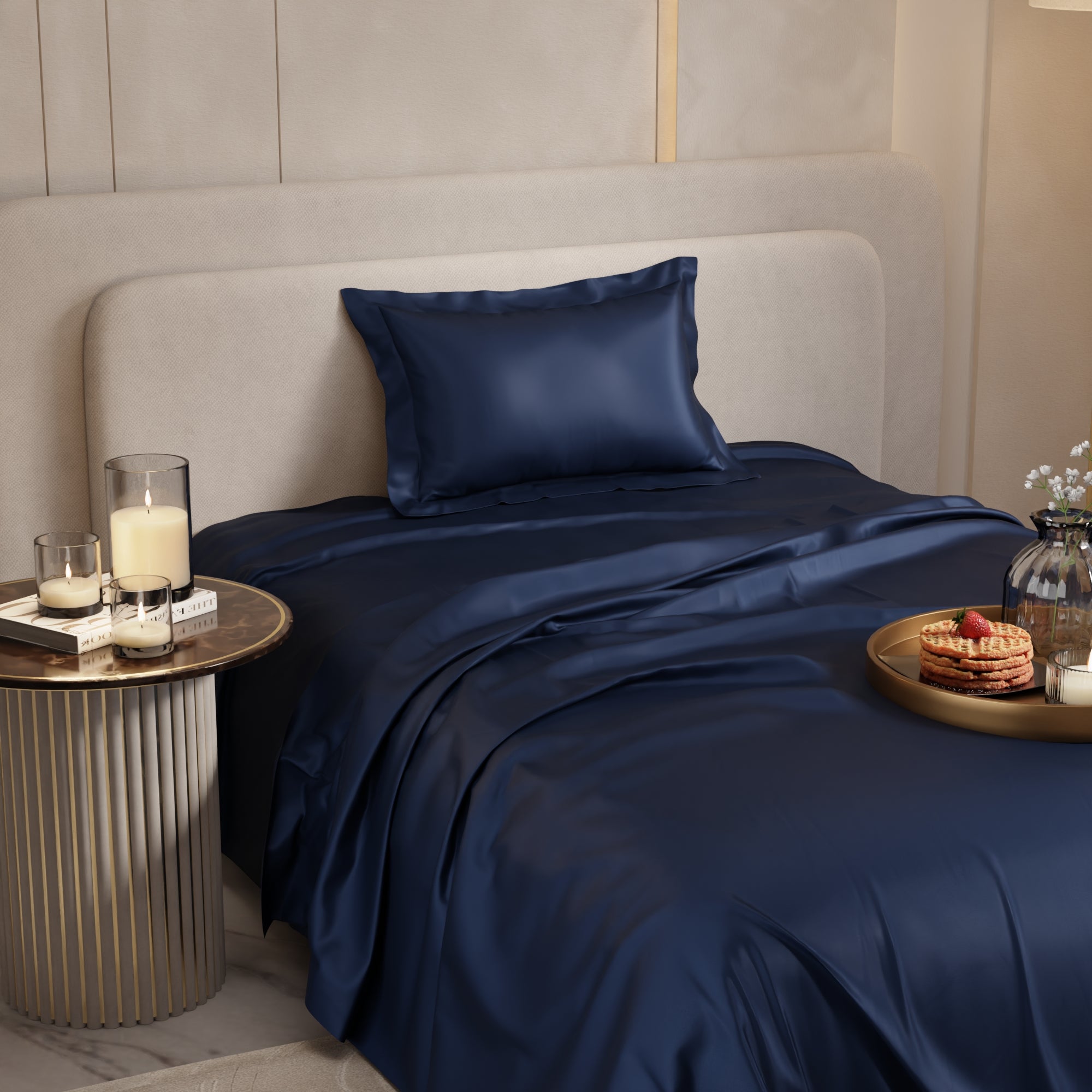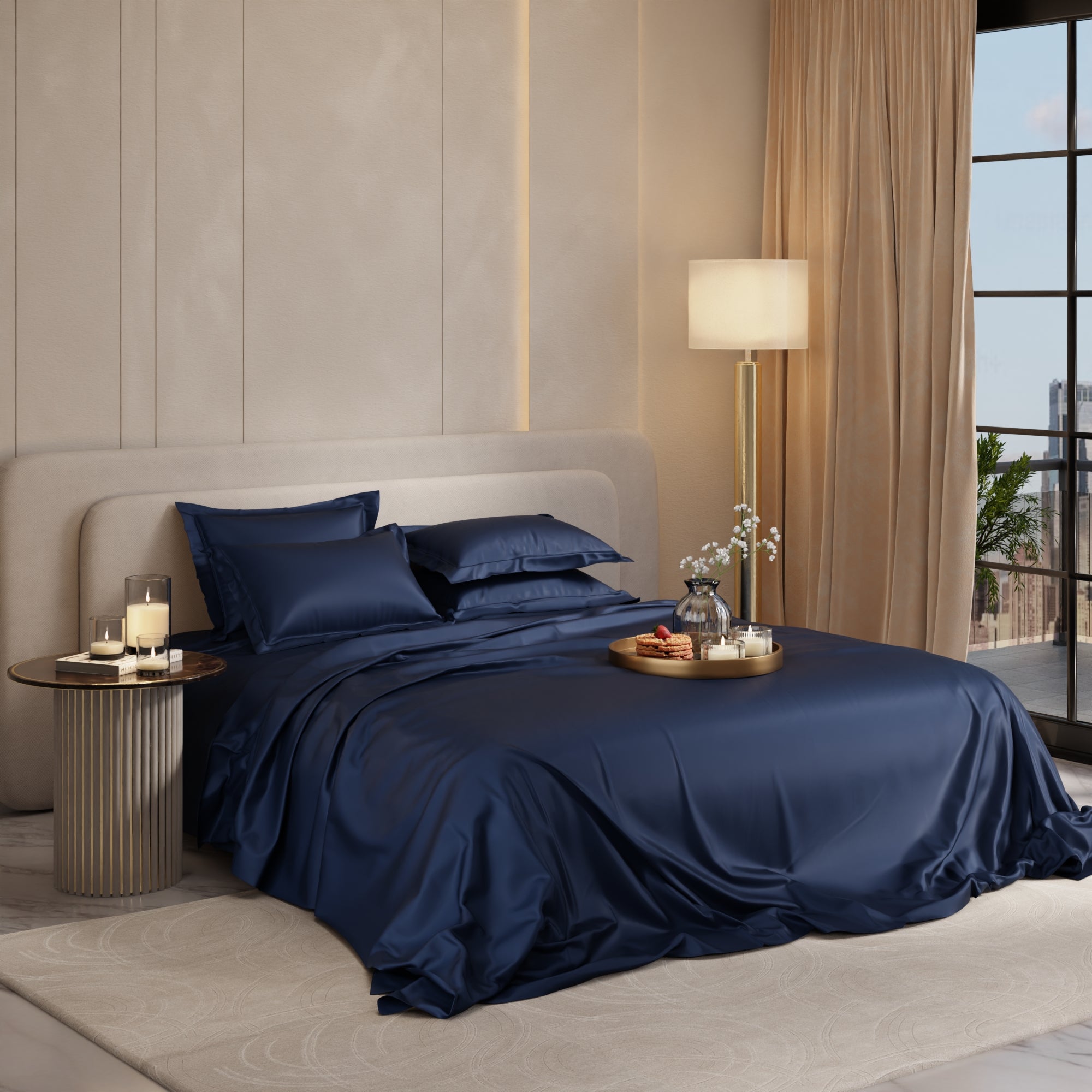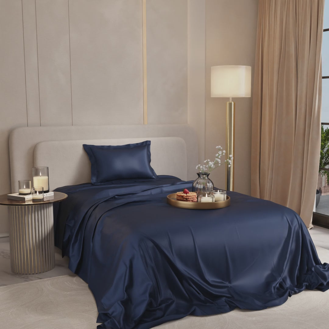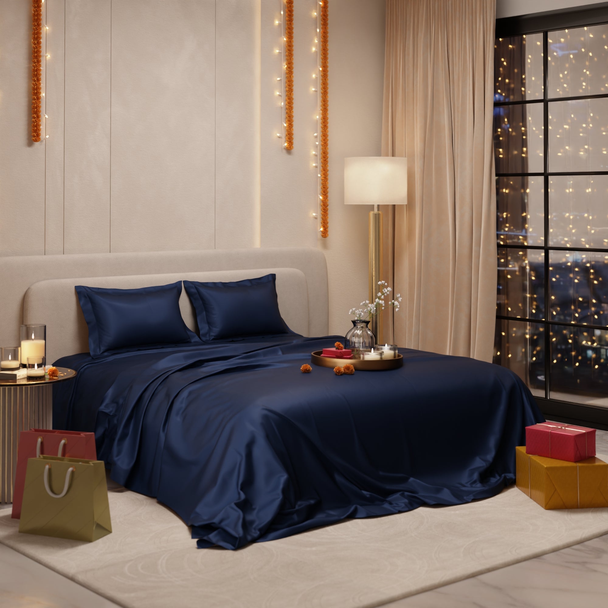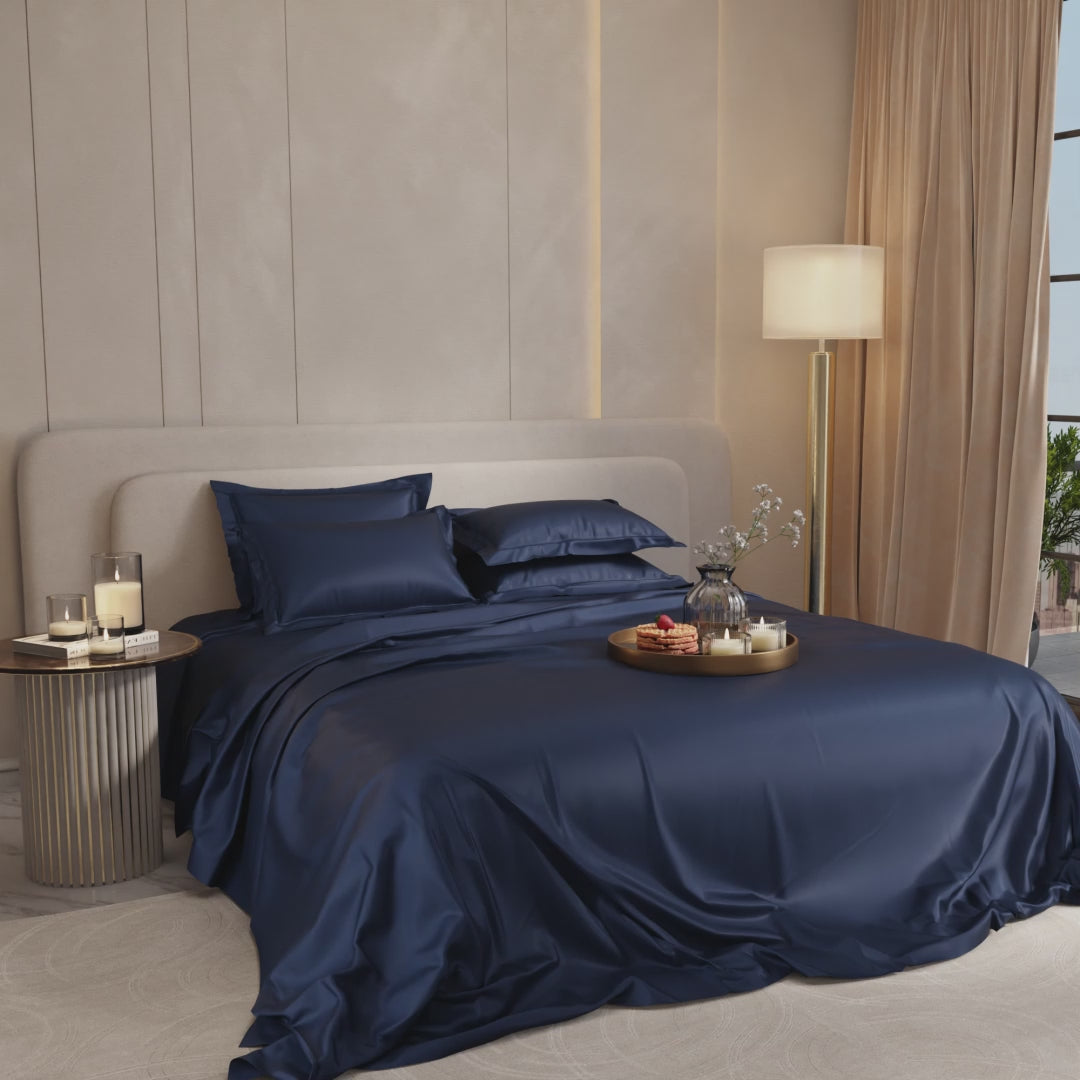 Recreate the charm of a moonlight midnight sky, with Mystique Blue. These silky smooth satin linen bed sets are designed to add a touch of opulence and romance to your intimate moments.