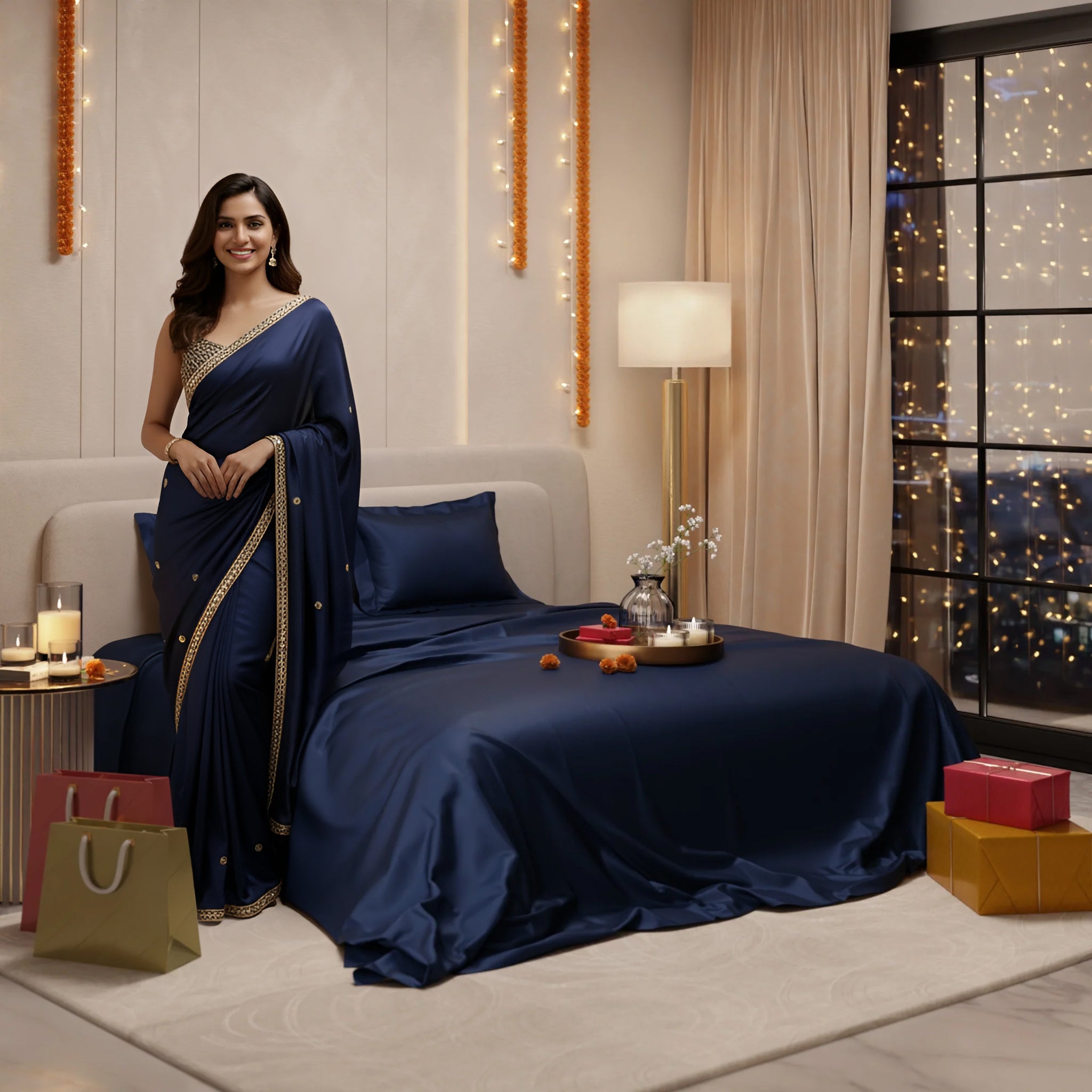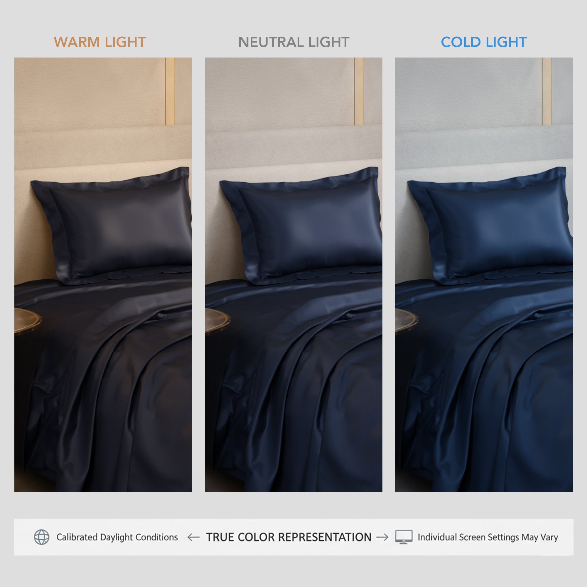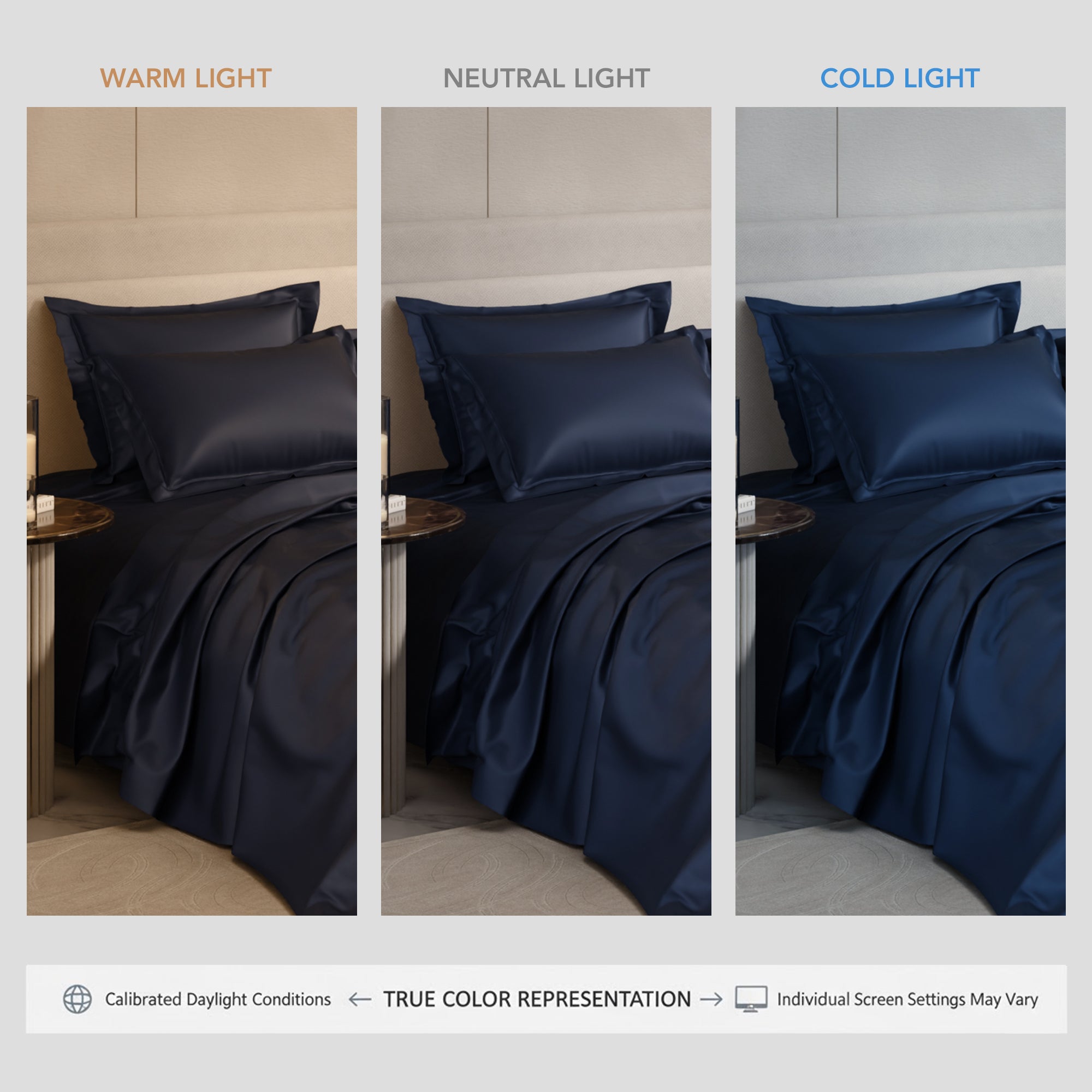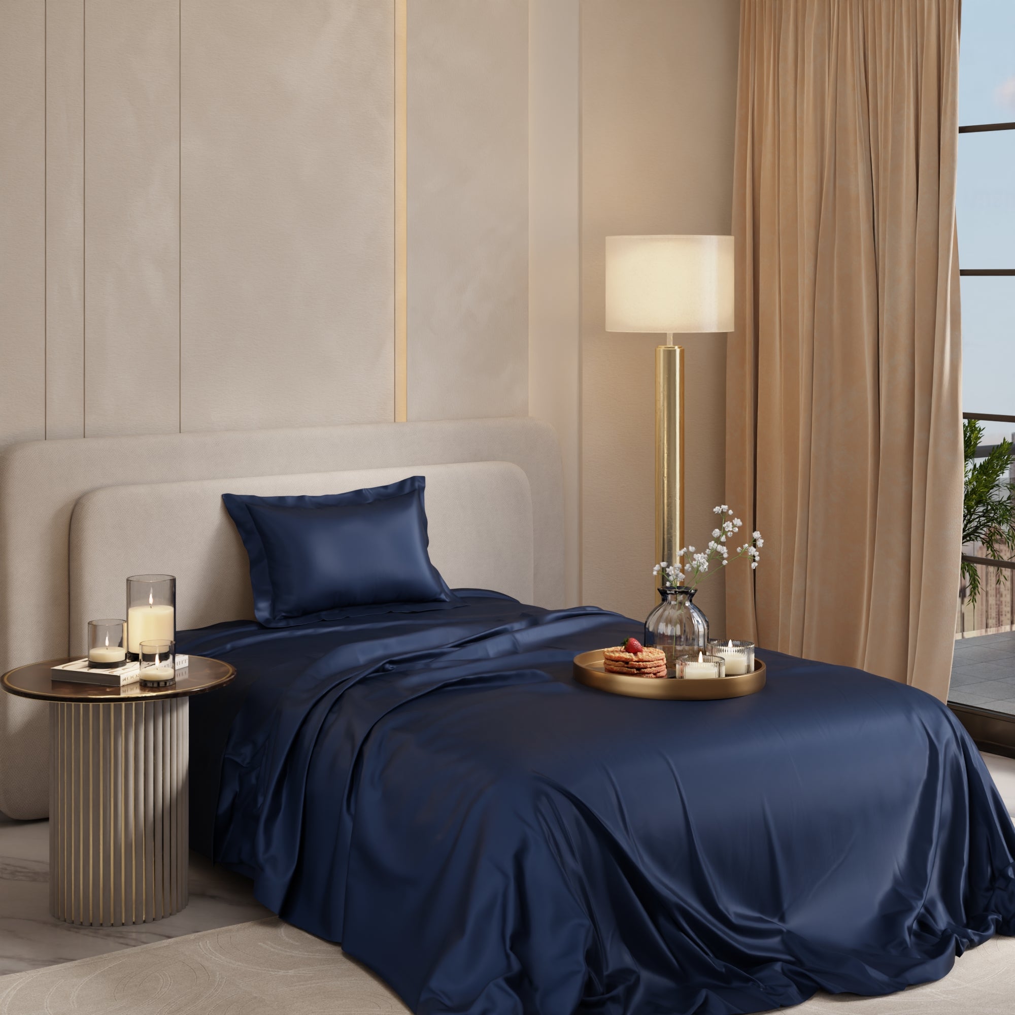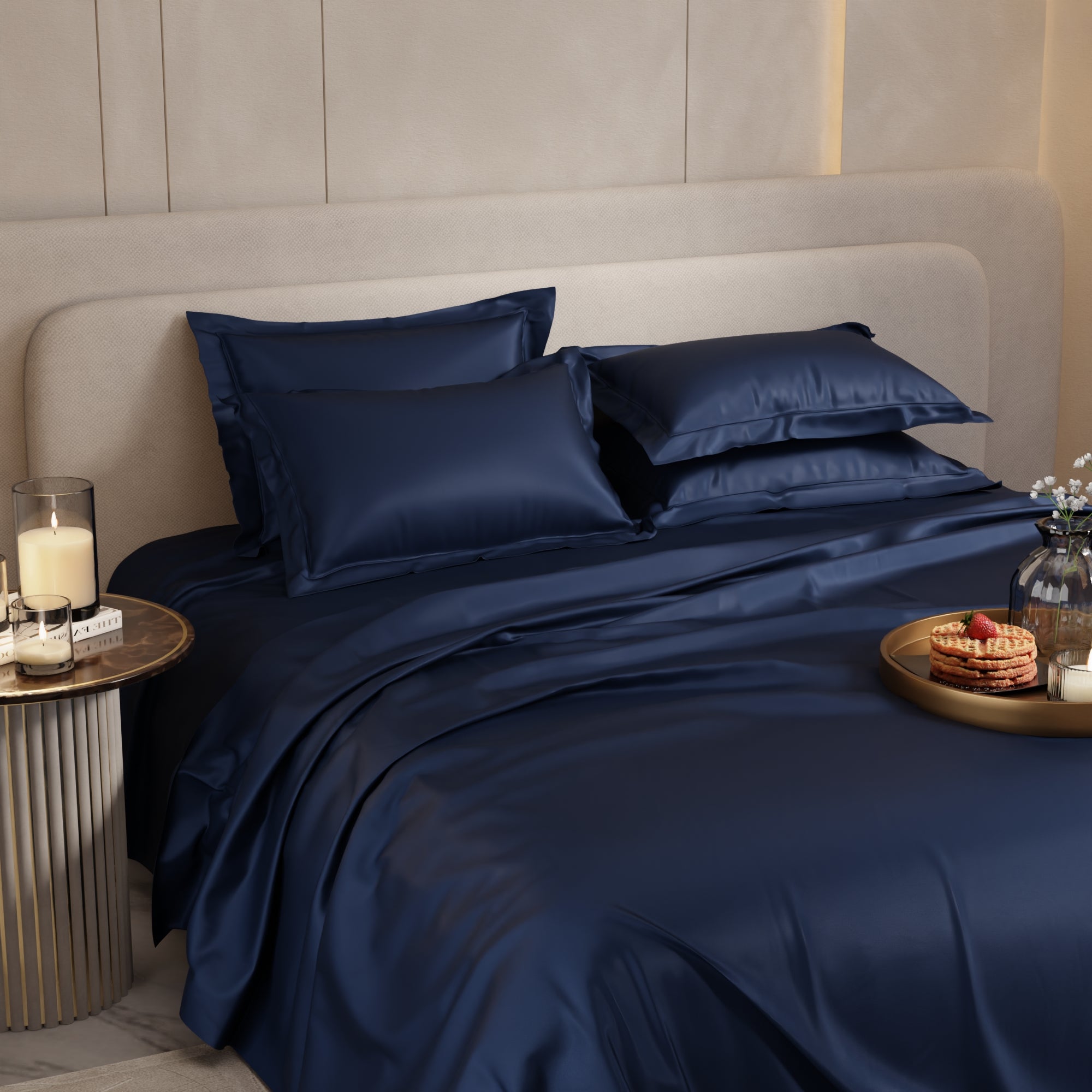 Recreate the charm of a moonlight midnight sky, with Mystique Blue. These silky smooth satin linen bed sets are designed to add a touch of opulence and romance to your intimate moments.