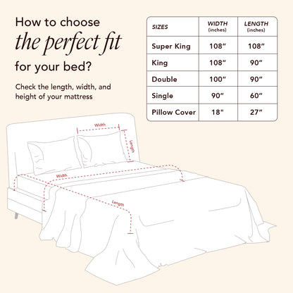 - Super King Bedsheet Set includes: 1 Bedsheet (108" x 108") + 4 Pillow Covers (18" x 27")