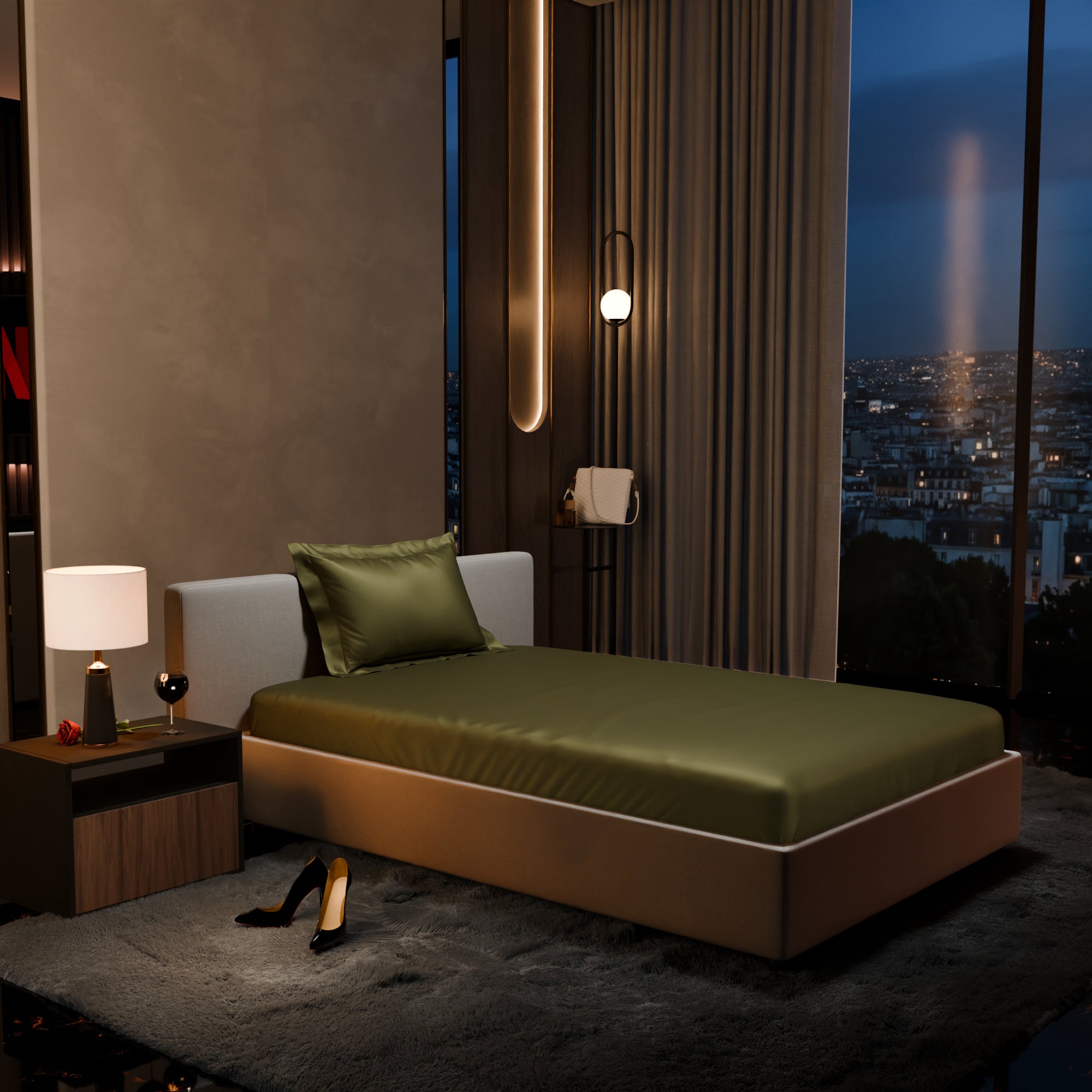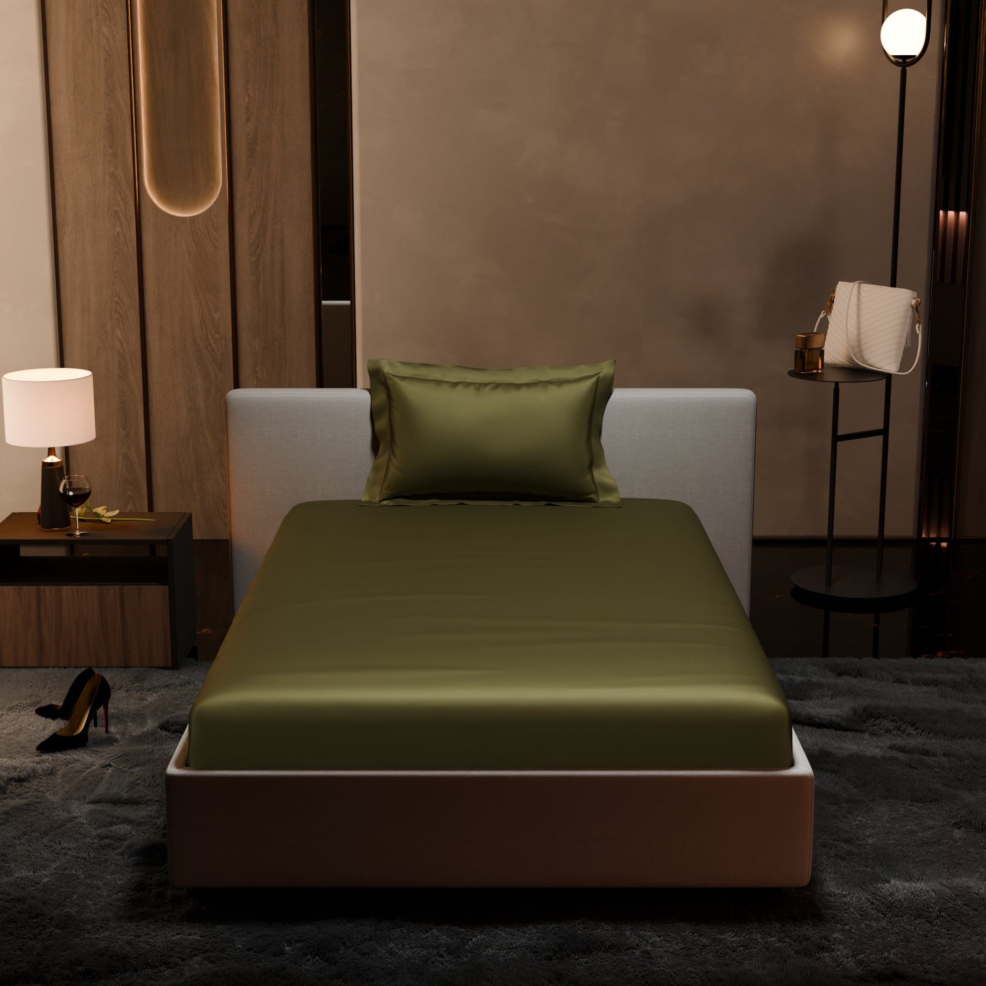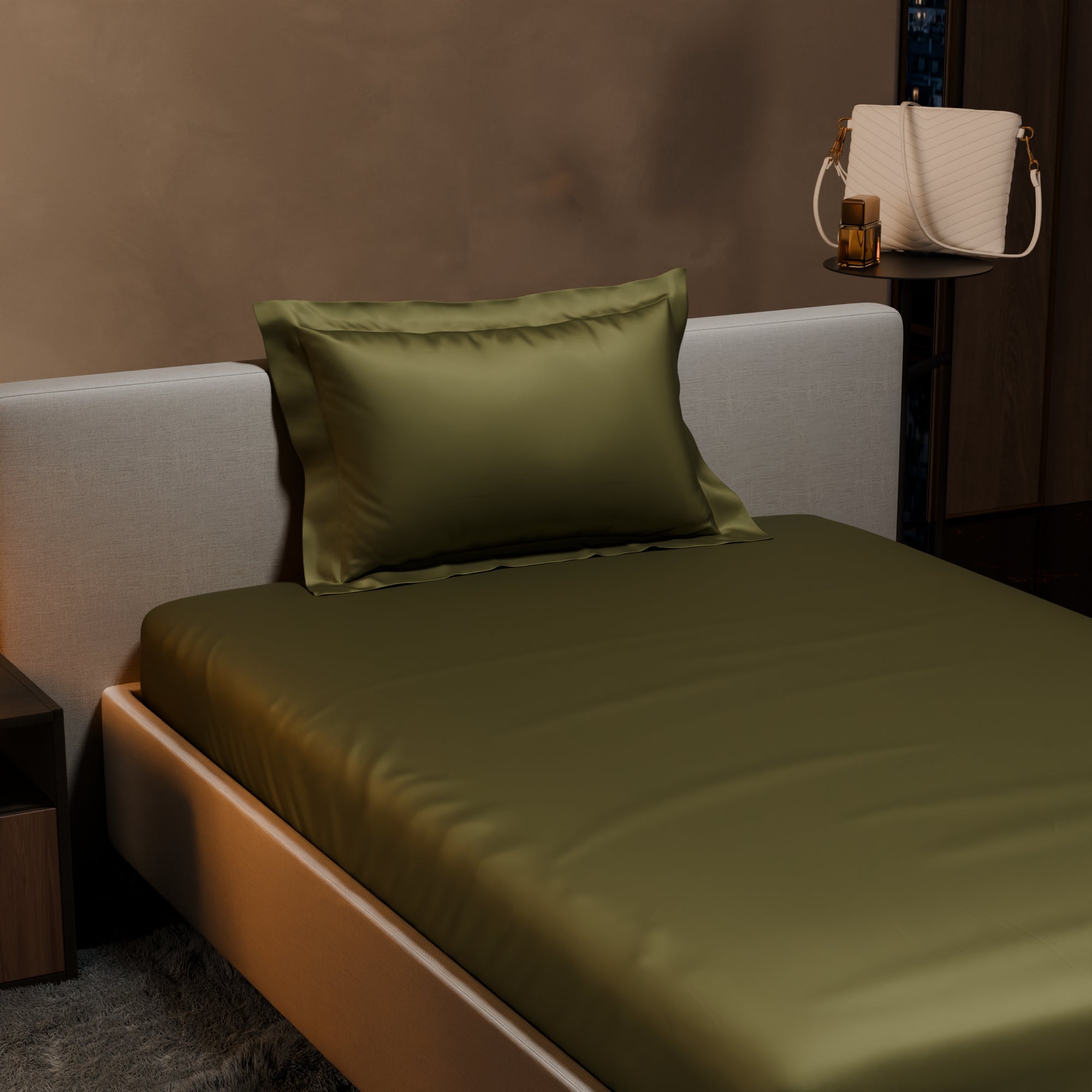 Transform your room into a peaceful sanctuary with the soothing green of Olive Oasis. These silky smooth satin linen bed sets are designed to add a touch of opulence and romance to your intimate moments.