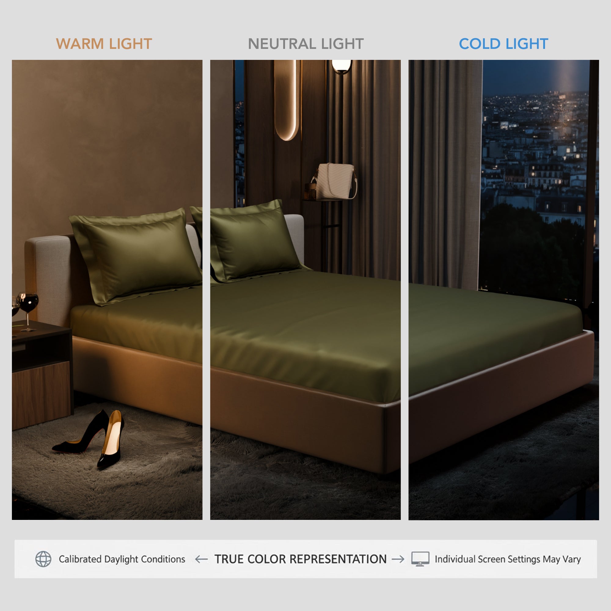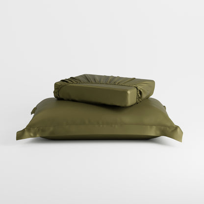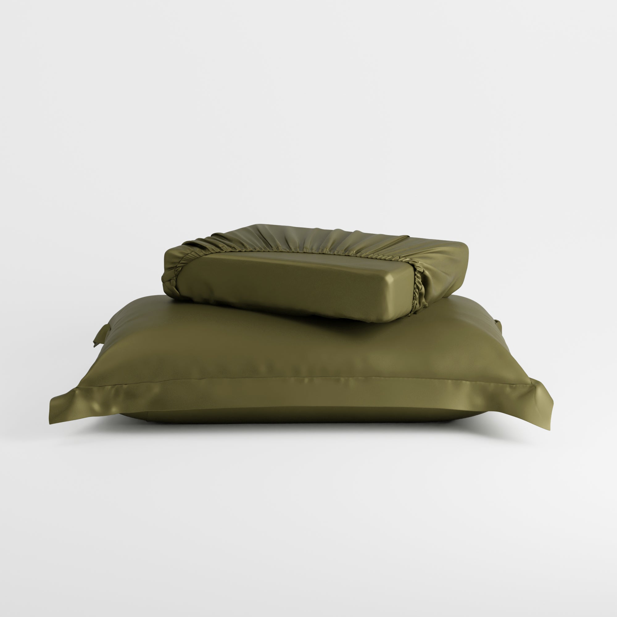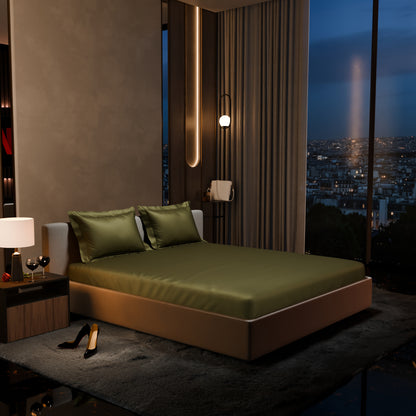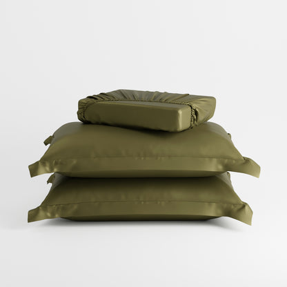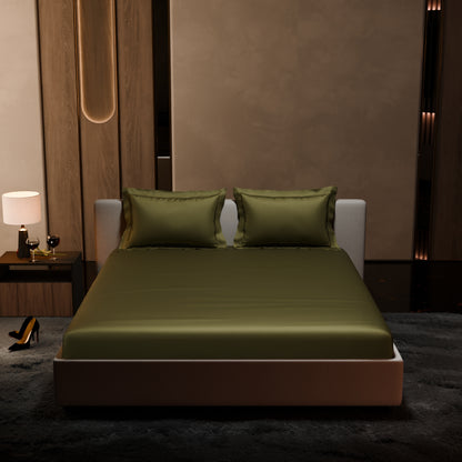 Transform your room into a peaceful sanctuary with the soothing green of Olive Oasis. These silky smooth satin linen bed sets are designed to add a touch of opulence and romance to your intimate moments.