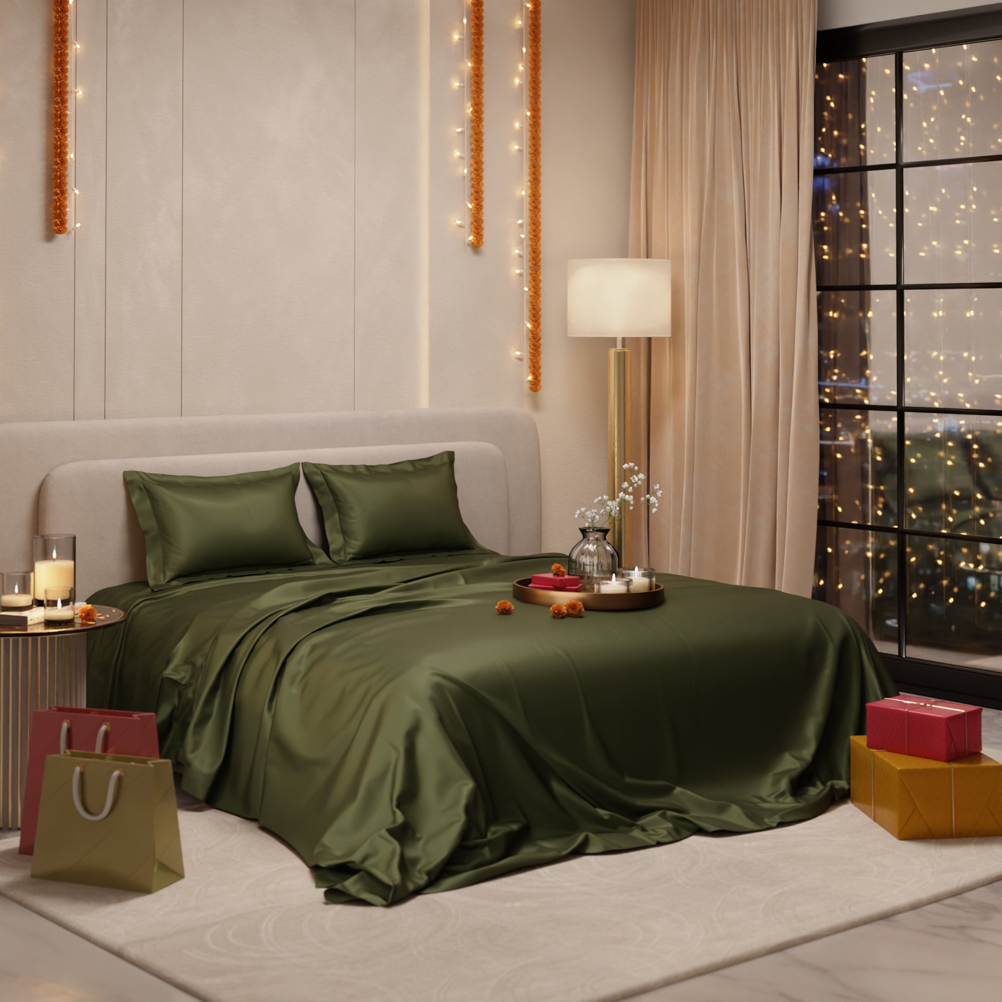 Transform your room into a peaceful sanctuary with the soothing green of Olive Oasis. These silky smooth satin linen bed sets are designed to add a touch of opulence and romance to your intimate moments.