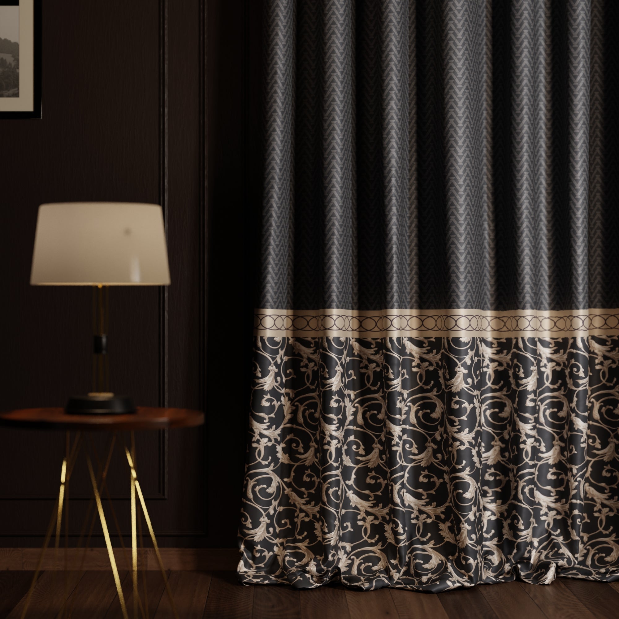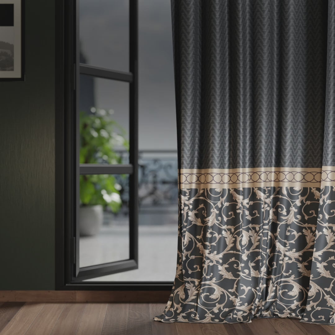 Modern chic meets baroque opulence in the Regal Slate dim-out satin curtain, a quintessential choice for spaces that demand the spotlight, blending nocturnal elegance with a touch of historical grandeur.