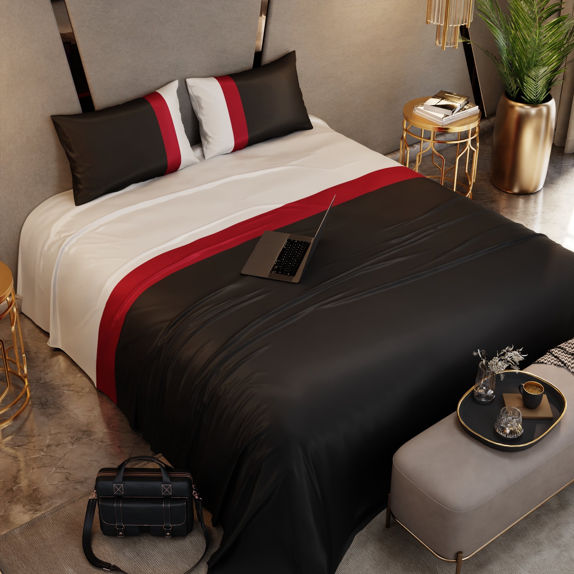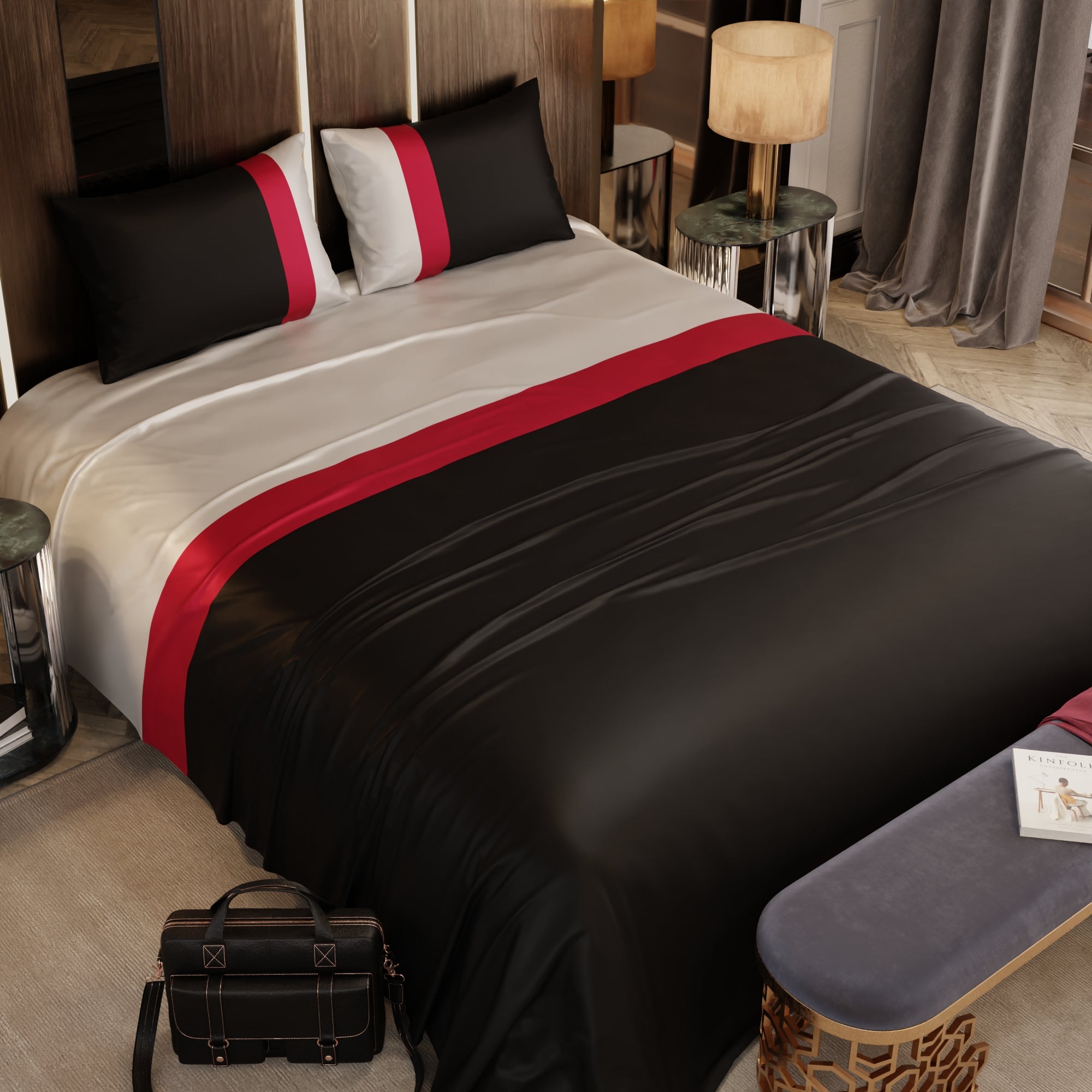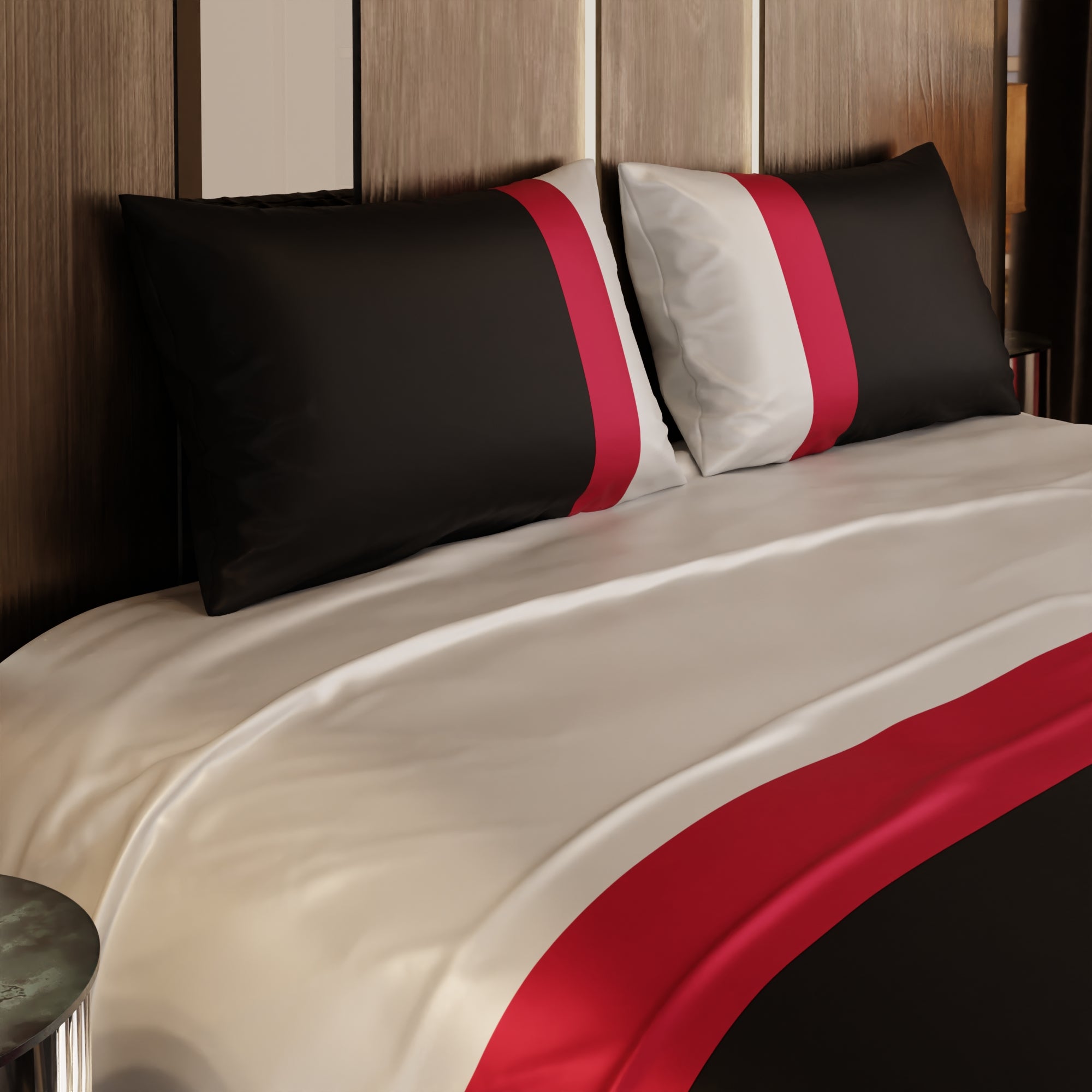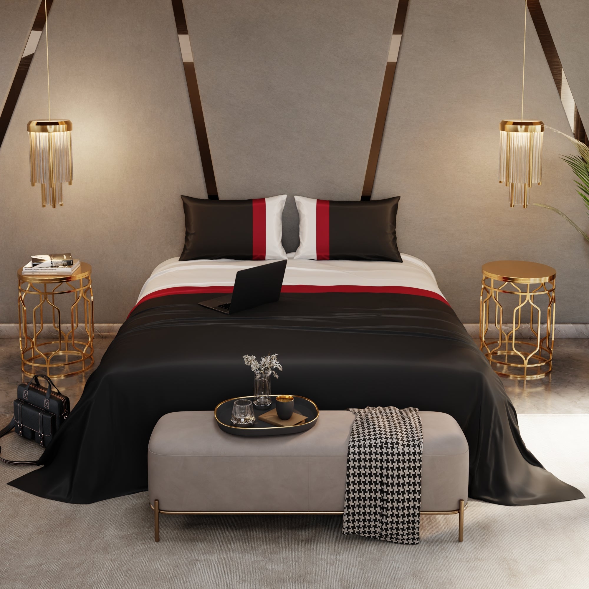 With the Stoa Paris Vogue Bedding Collection - Rooftop Views Trio, you're not just decorating your bedroom; you're creating a retreat where comfort and style come together. This exquisite satin bedsheet, graced by a combination of champagne, red, and emerald green tones, envelops your sleeping space in an ambience that radiates warmth and sophistication. Elevate your bedroom decor with this refined bedding collection, where luxury and relaxation converge in perfect harmony.